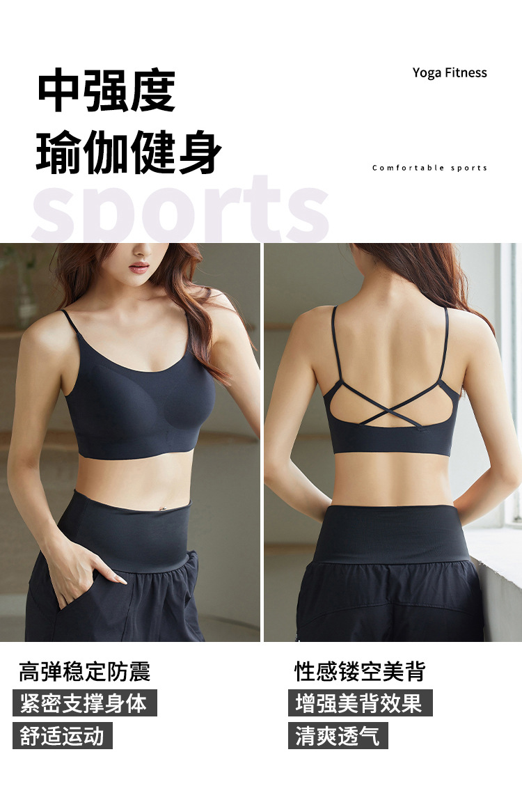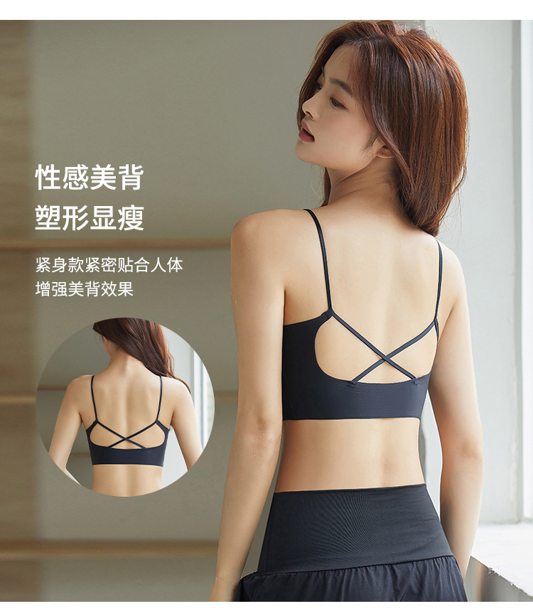 광택 있는 고정형 가슴 패드가 있는 스포츠 브라, 누드 느낌의 여성용 등 노출형 피트니스 러닝 중간 강도 요가 브라, 가벼운 백리스 디자인스토어 가기