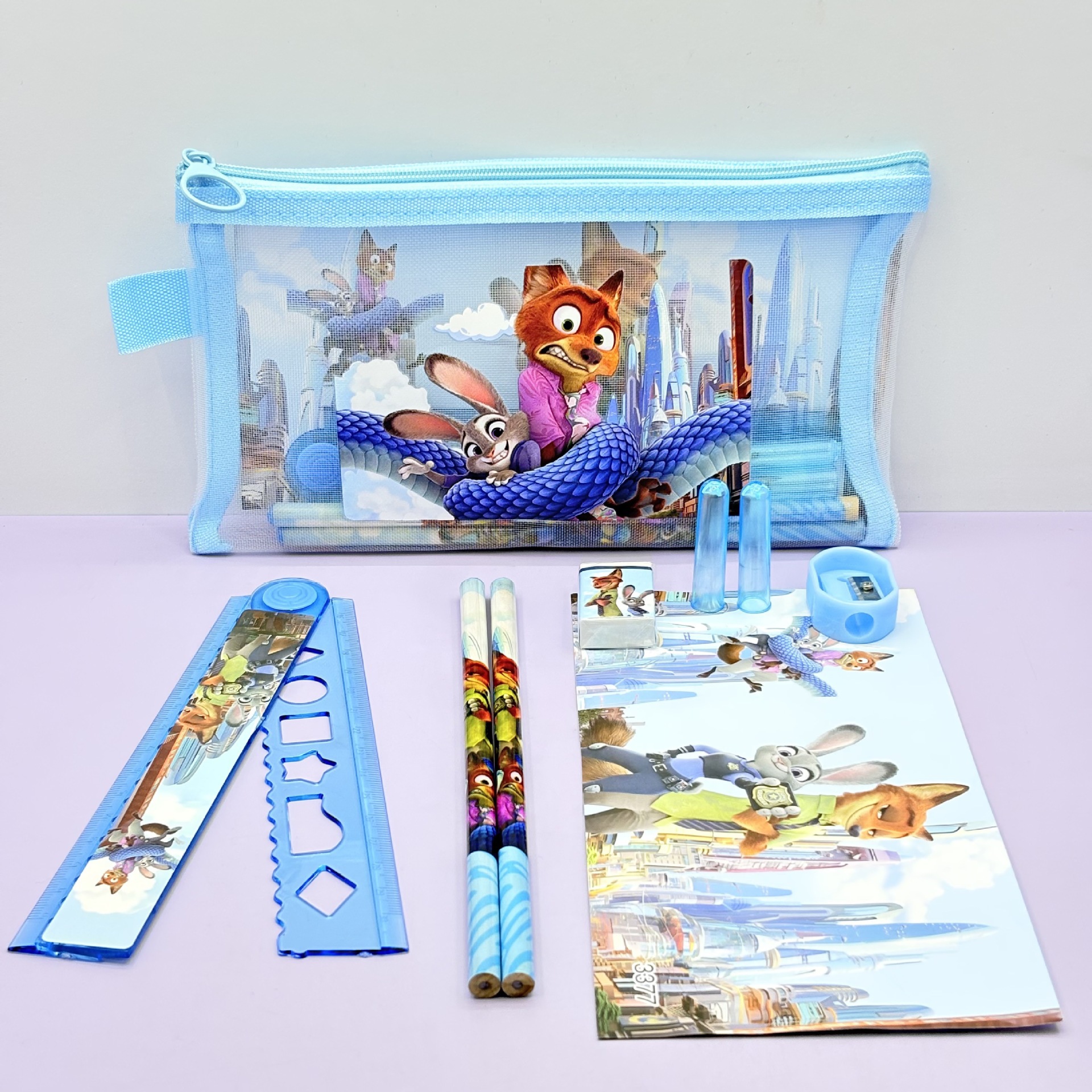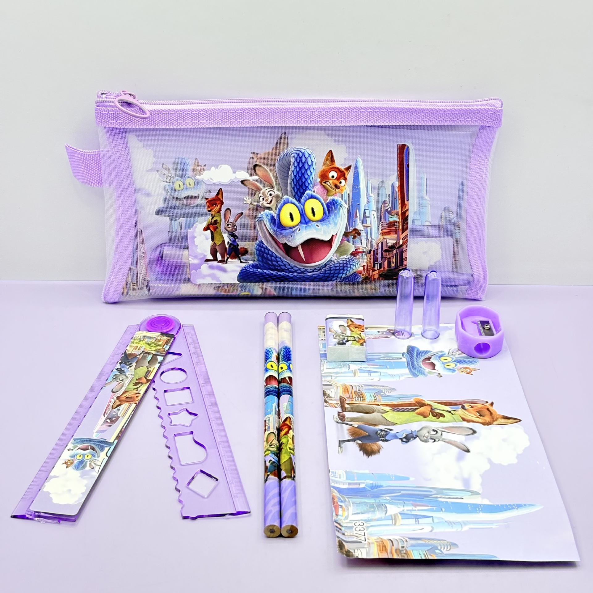 3377 연필 케이스 세트 산리 나일론 메쉬 가방 직사각형 연필 케이스 학생 어린이 학교 8 조각 선물 문구
