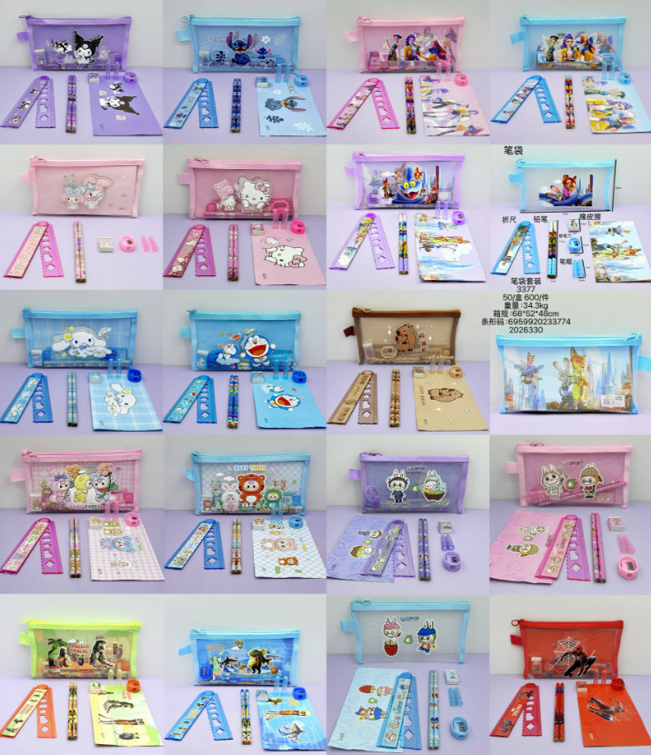 3377 연필 케이스 세트 산리 나일론 메쉬 가방 직사각형 연필 케이스 학생 어린이 학교 8 조각 선물 문구스토어 가기