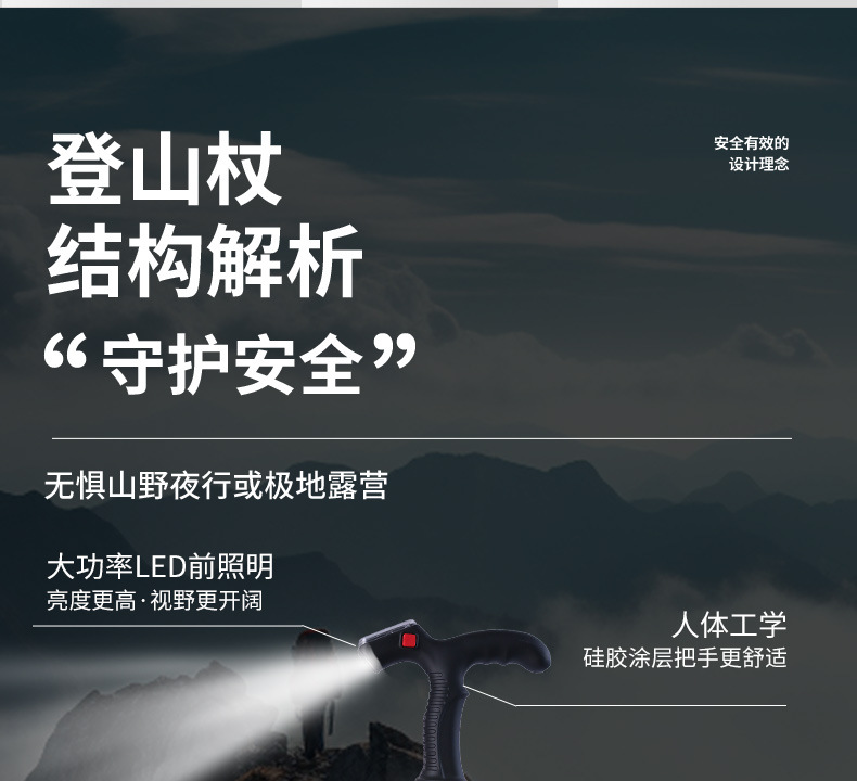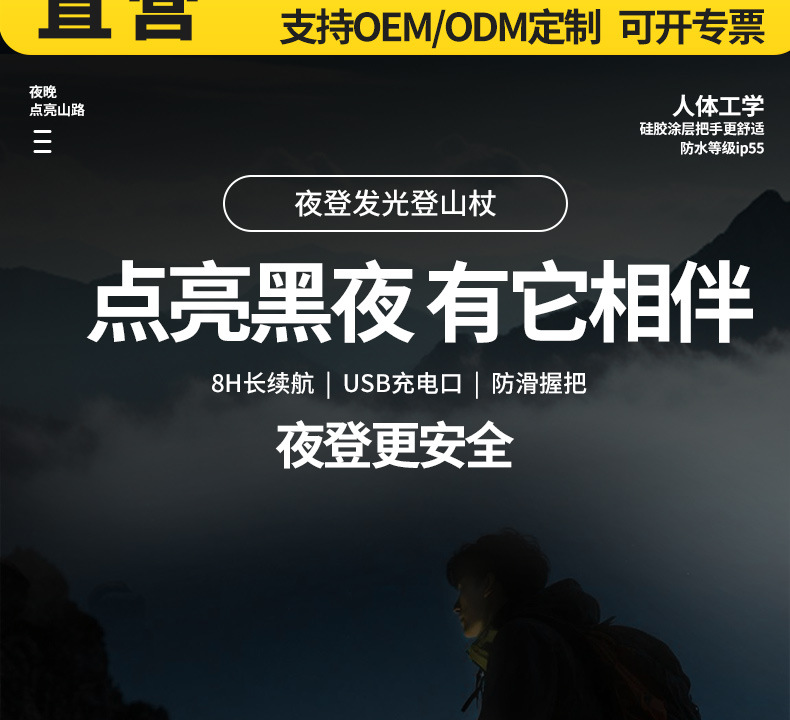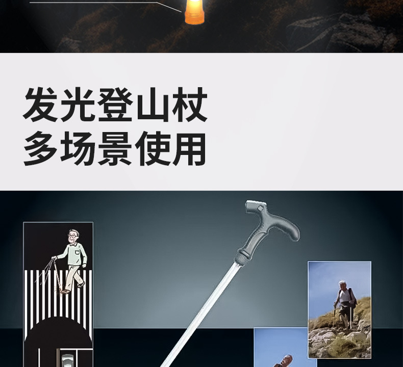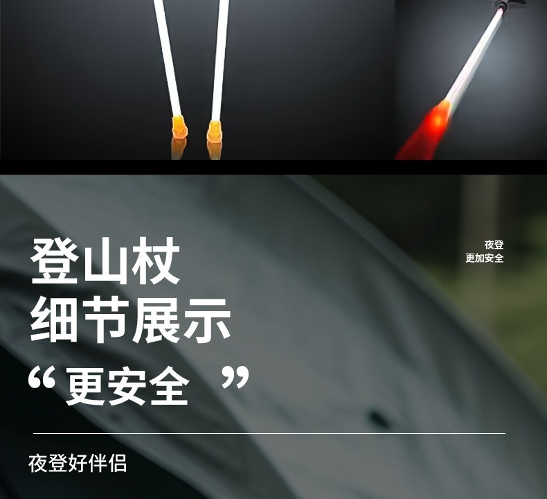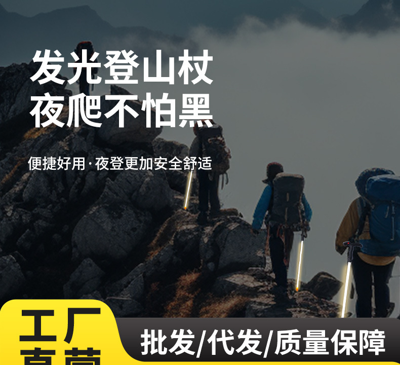 발광 등산 지팡이, 조명 지팡이, 휴대용 조명 캠핑 지팡이, 야외 하이킹 야간 등산 지팡이, 최고의 공장 직판 상품스토어 가기
