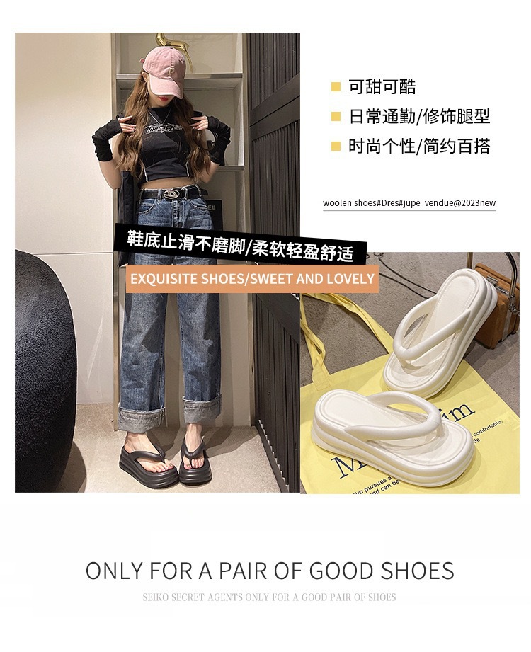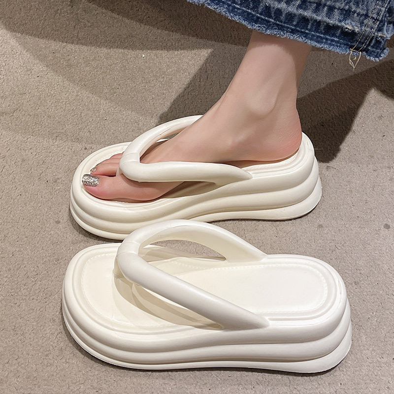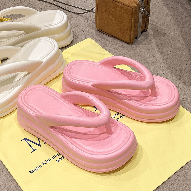 여름 새로운 Ins Flip Flops 두꺼운 바닥 EVA 한국 스타일 간단한 패션 미끄럼 방지 비치 캔디 컬러 샌들