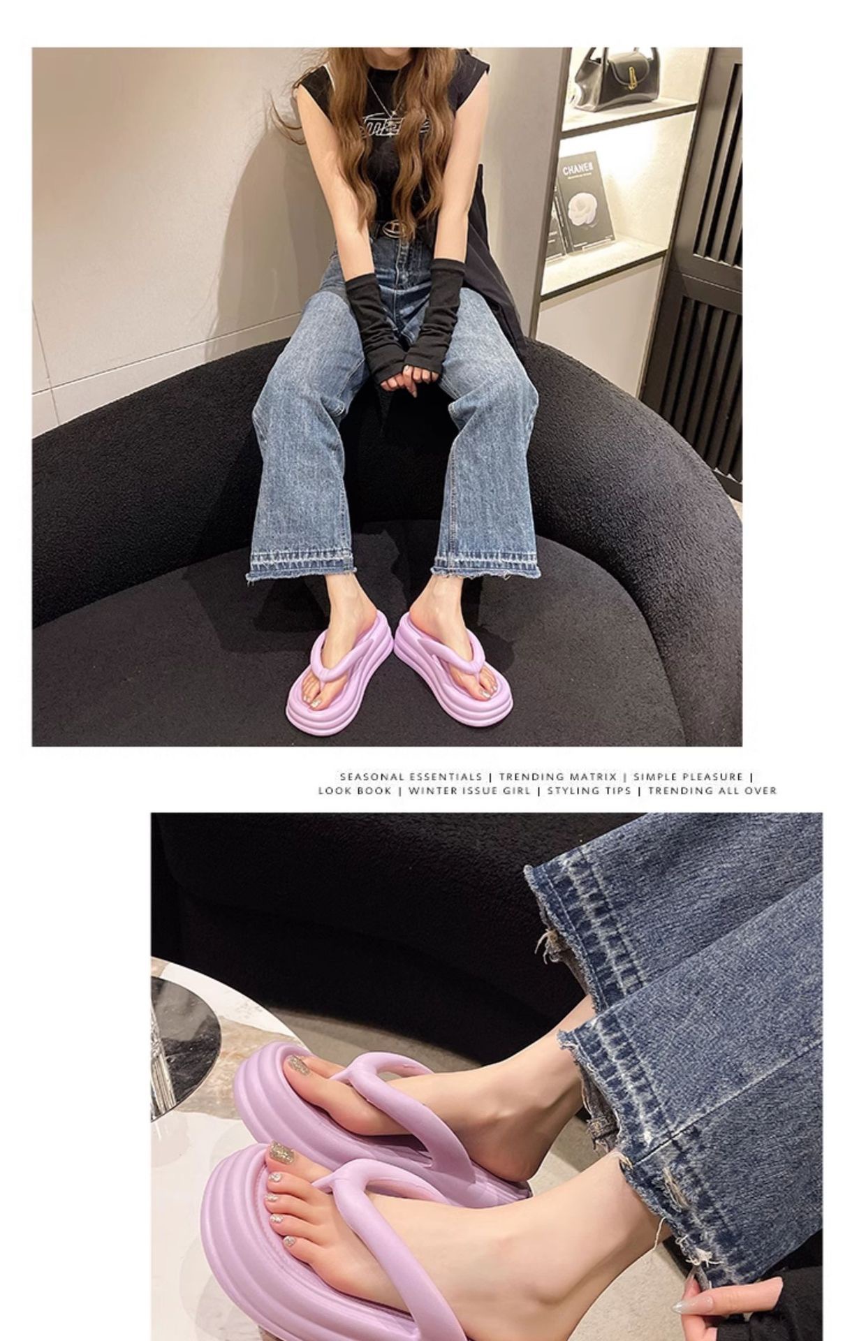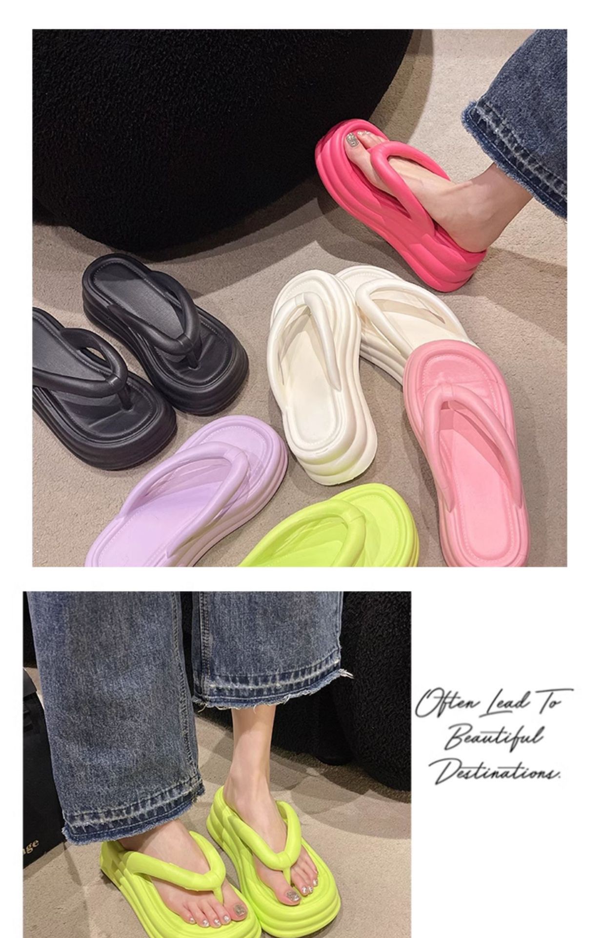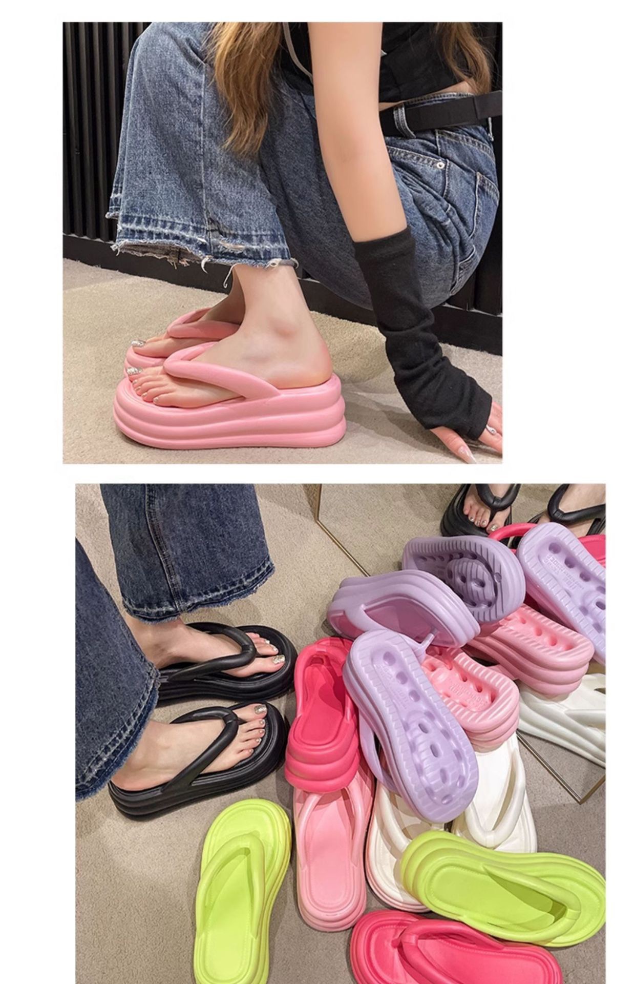 여름 새로운 Ins Flip Flops 두꺼운 바닥 EVA 한국 스타일 간단한 패션 미끄럼 방지 비치 캔디 컬러 샌들스토어 가기