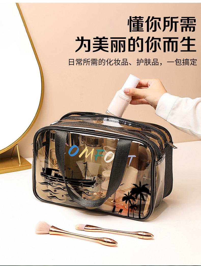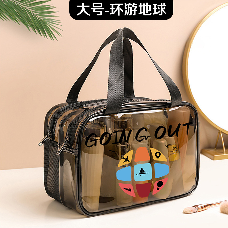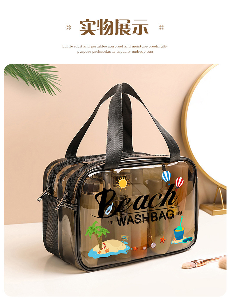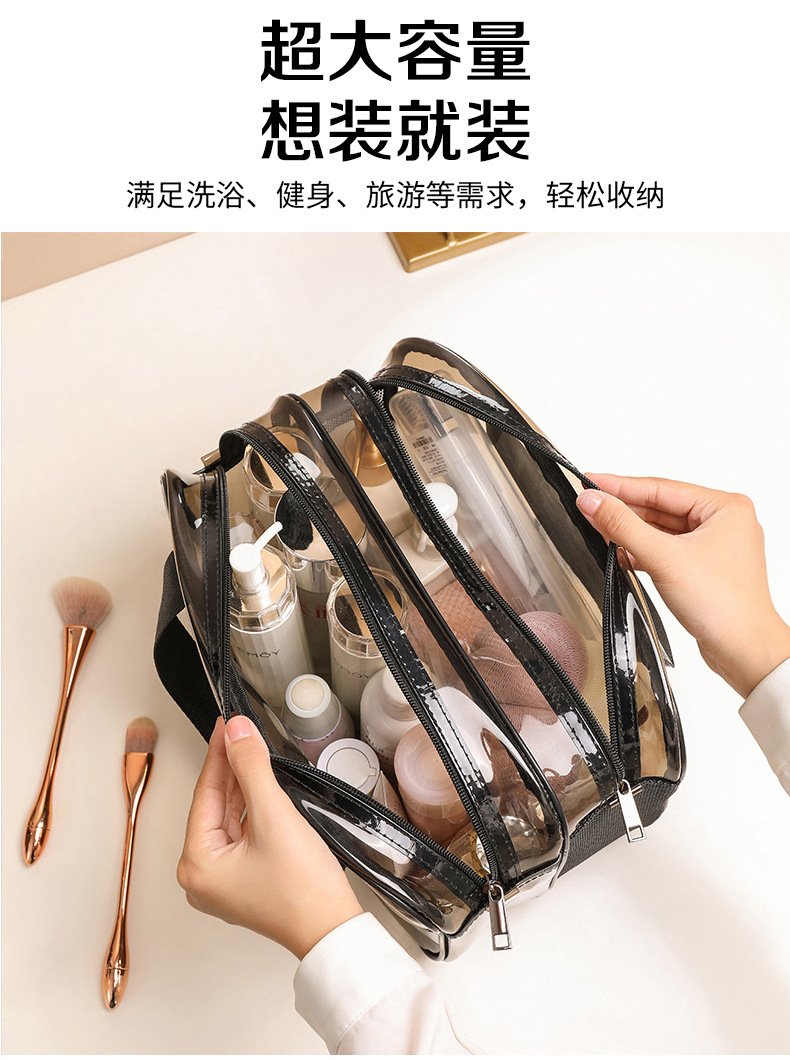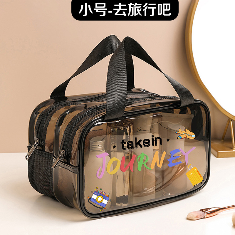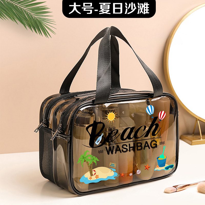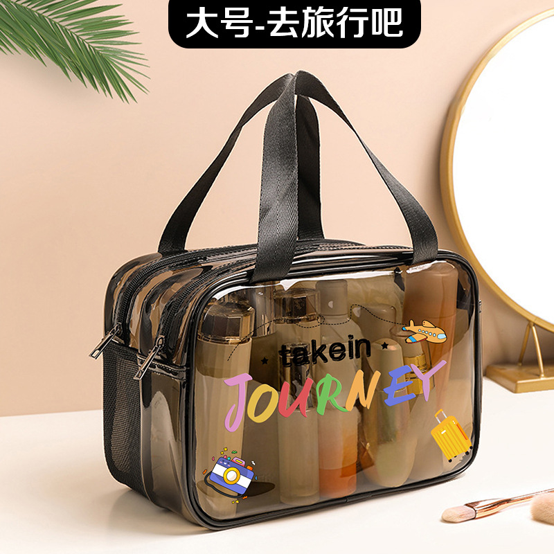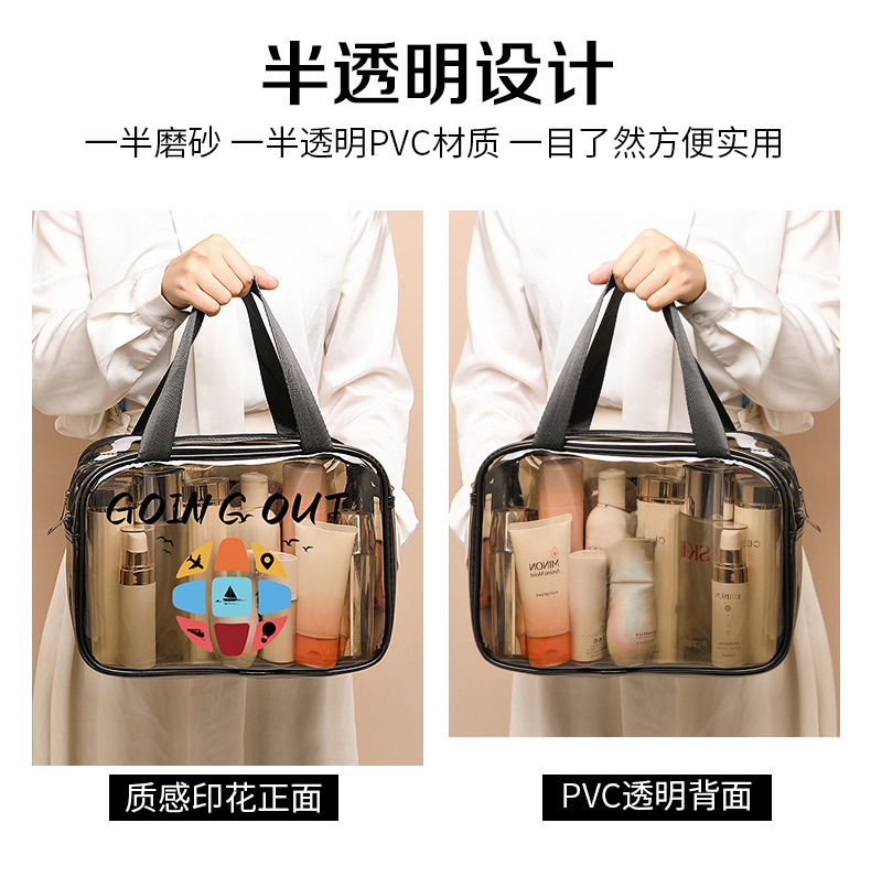 大容量洗漱包高级感防水化妆包PU洗浴袋半运明磨砂手提便携收纳包
