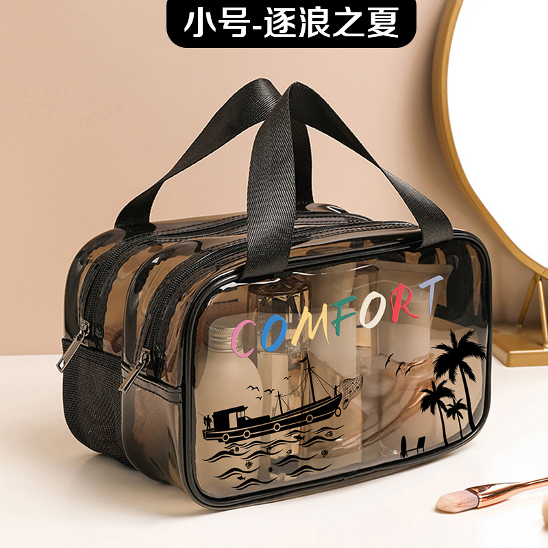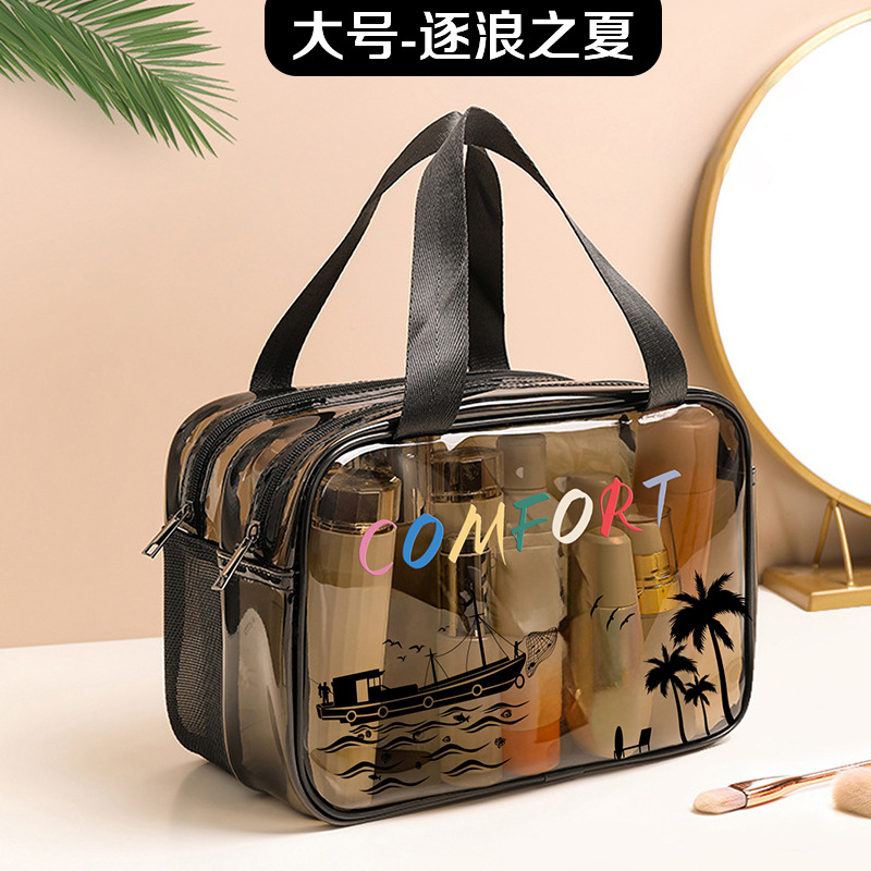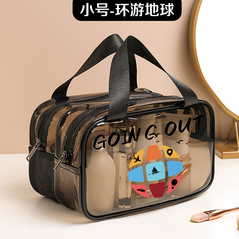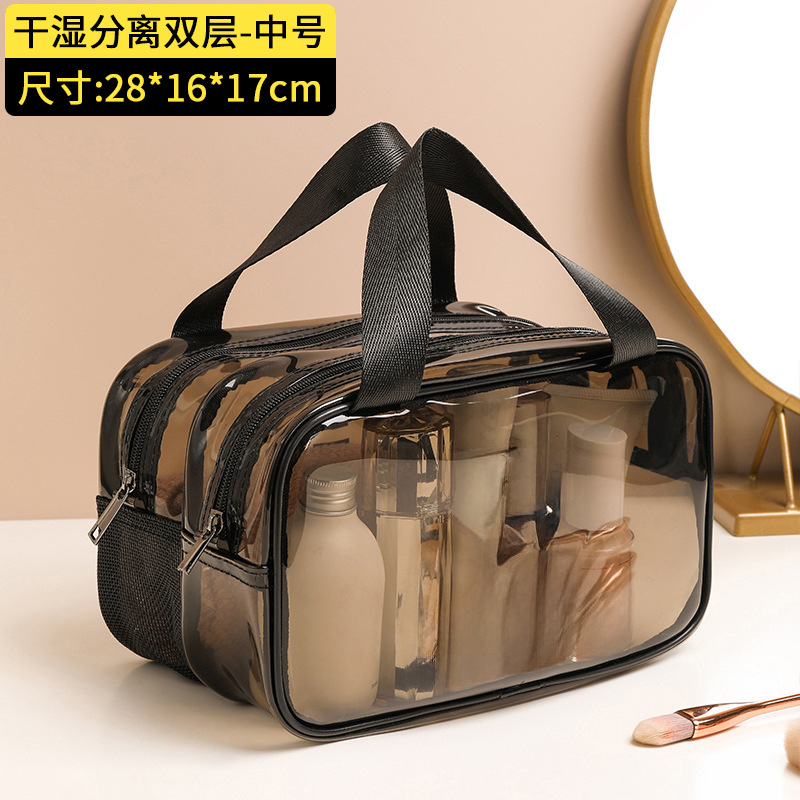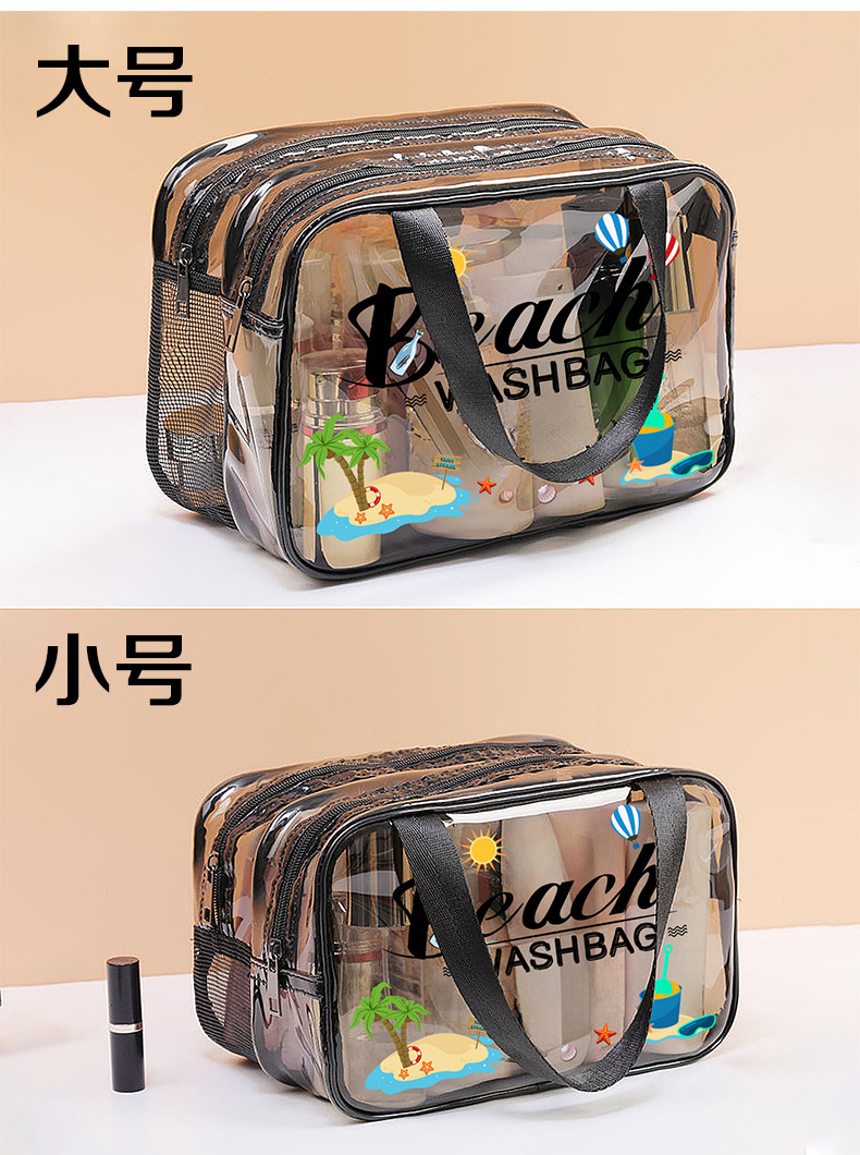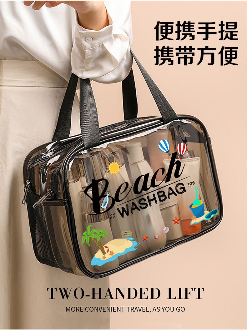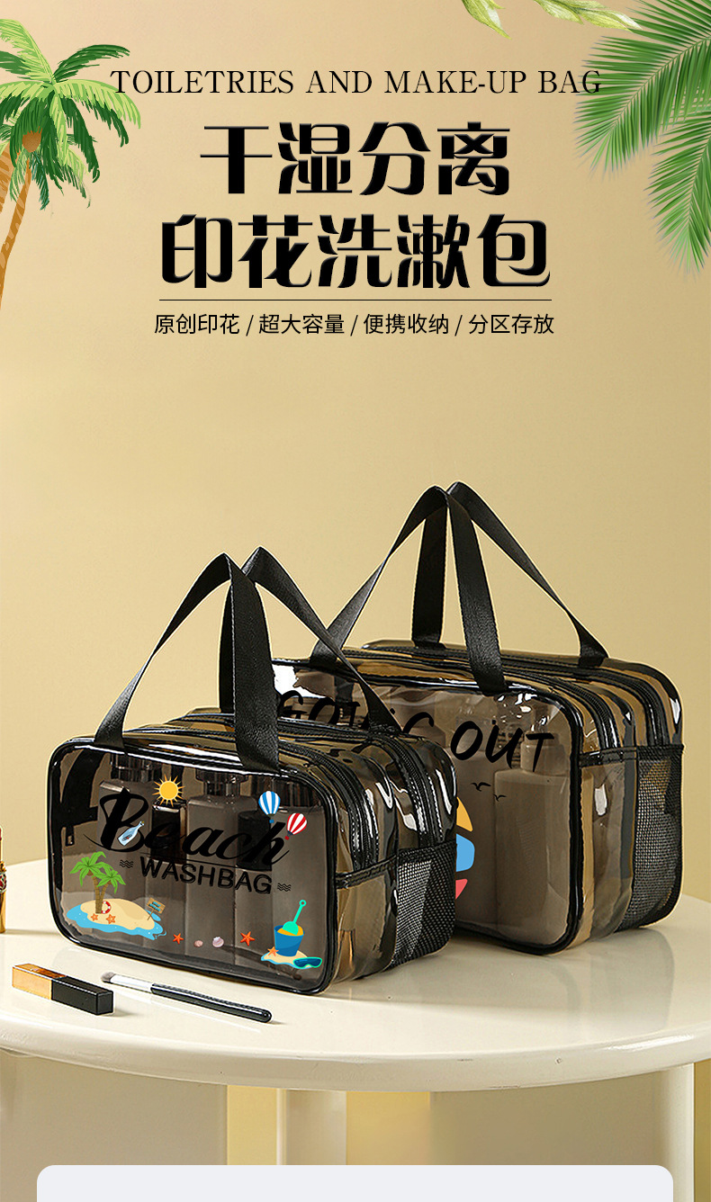大容量洗漱包高级感防水化妆包PU洗浴袋半运明磨砂手提便携收纳包