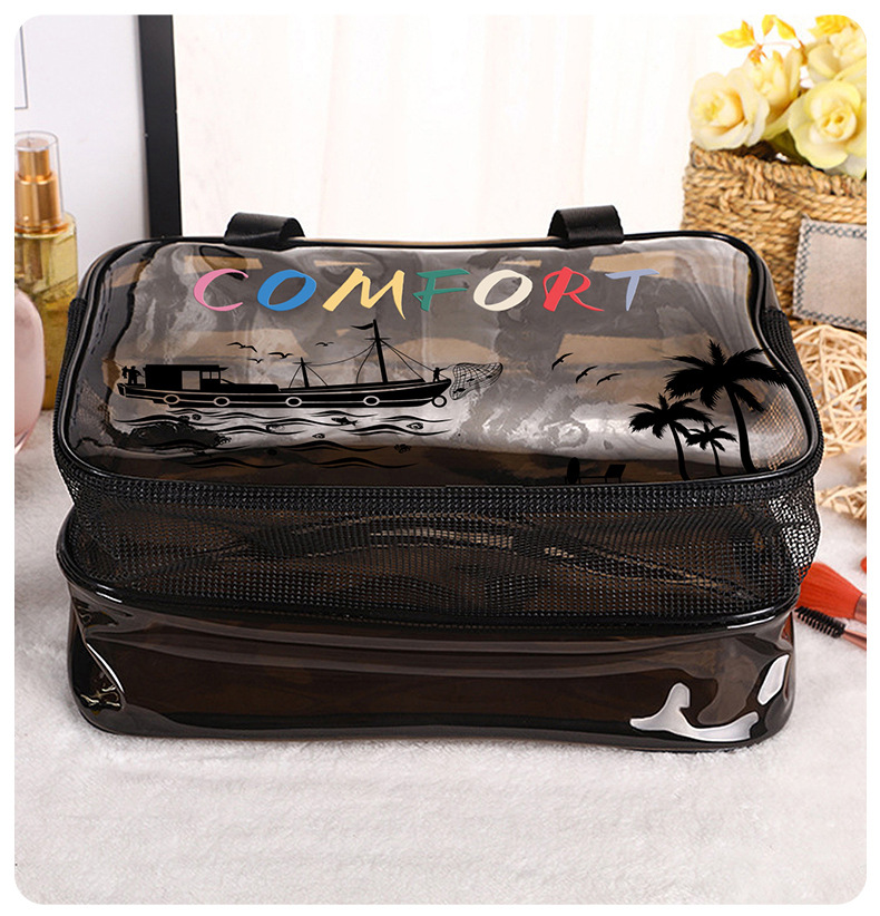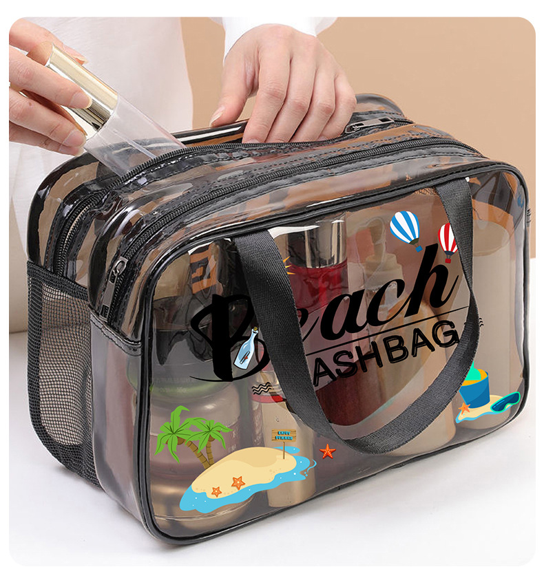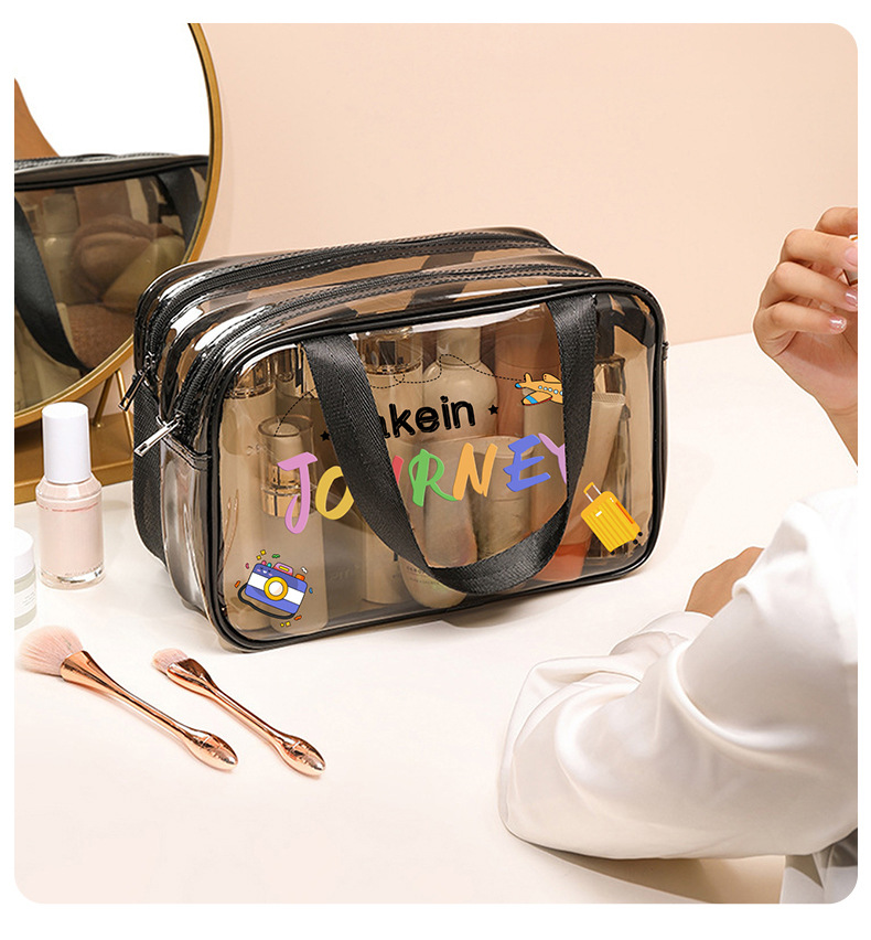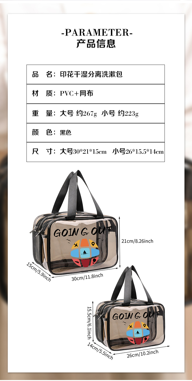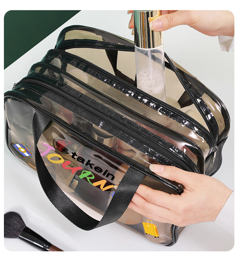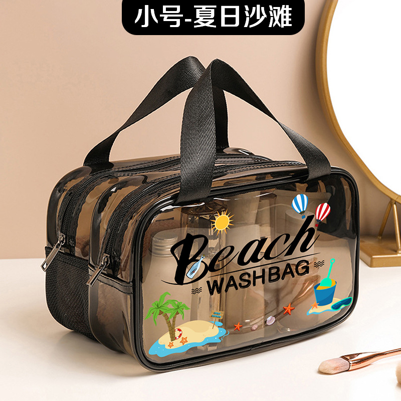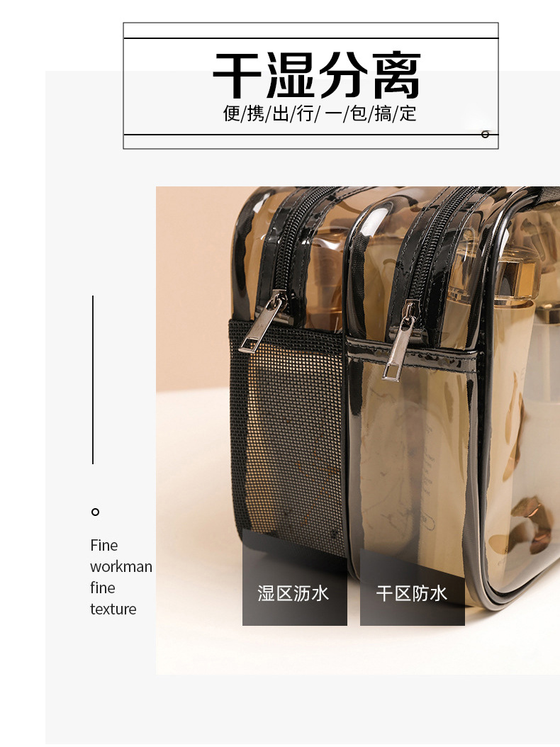 大容量洗漱包高级感防水化妆包PU洗浴袋半运明磨砂手提便携收纳包