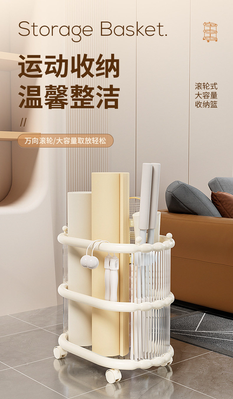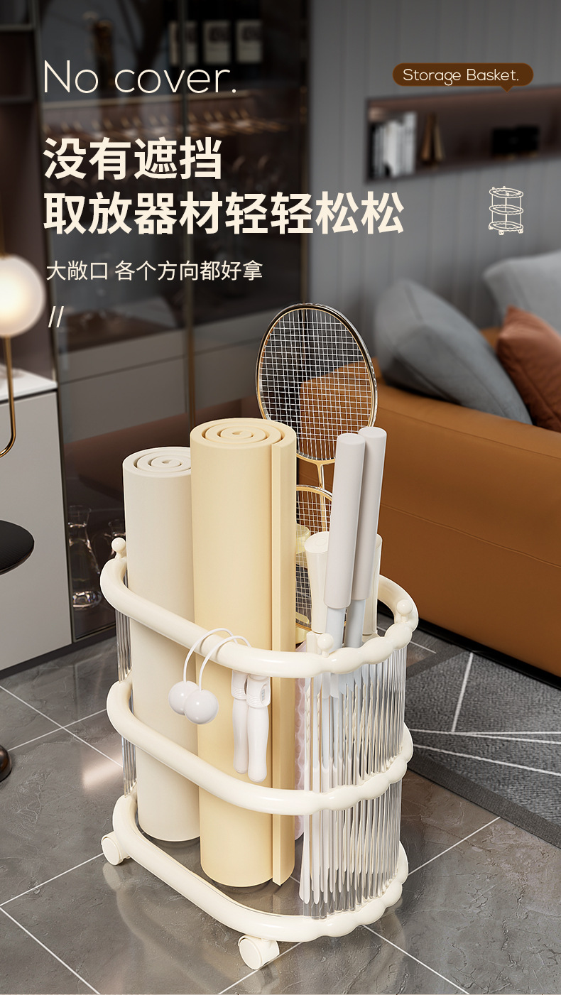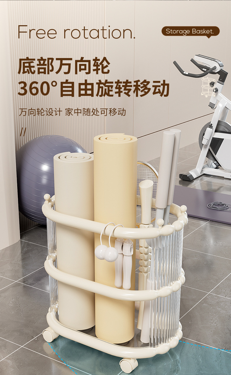 바퀴가 달린 요가 매트 보관 바구니 가정용 스포츠 도구 폼 롤러 마감 보관 상자 피트니스 장비 보관 랙스토어 가기