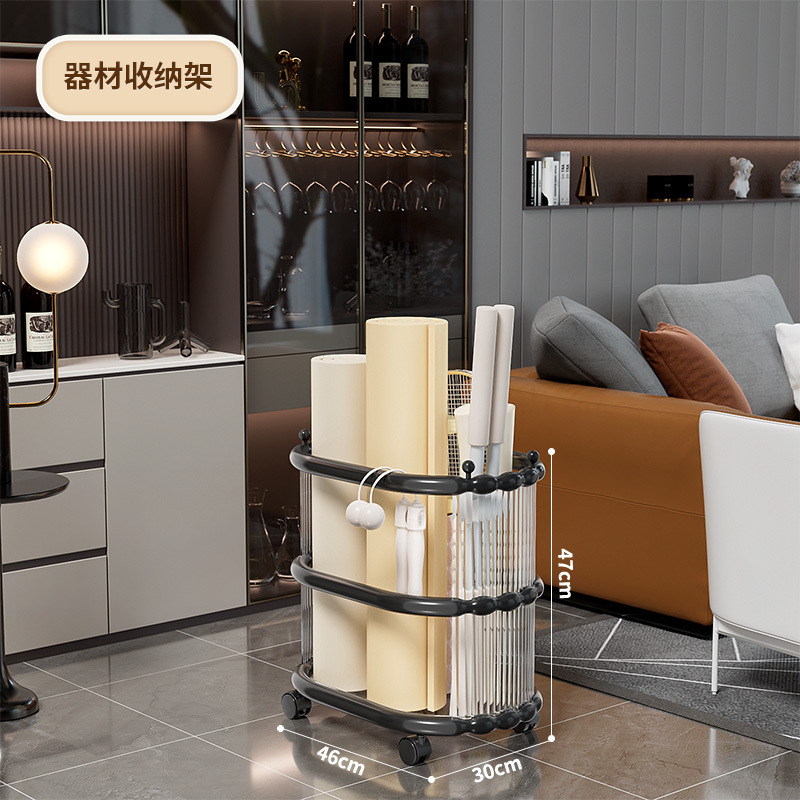 바퀴가 달린 요가 매트 보관 바구니 가정용 스포츠 도구 폼 롤러 마감 보관 상자 피트니스 장비 보관 랙