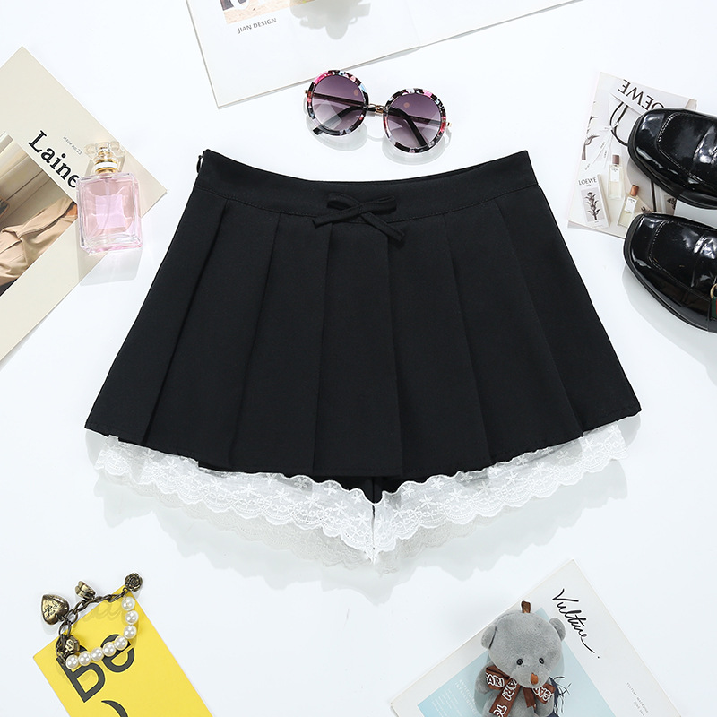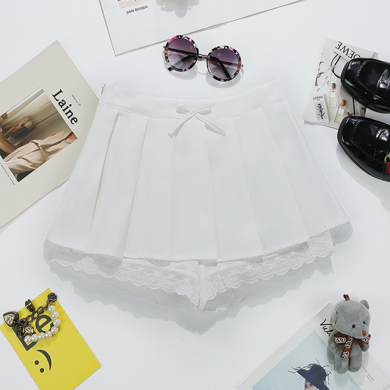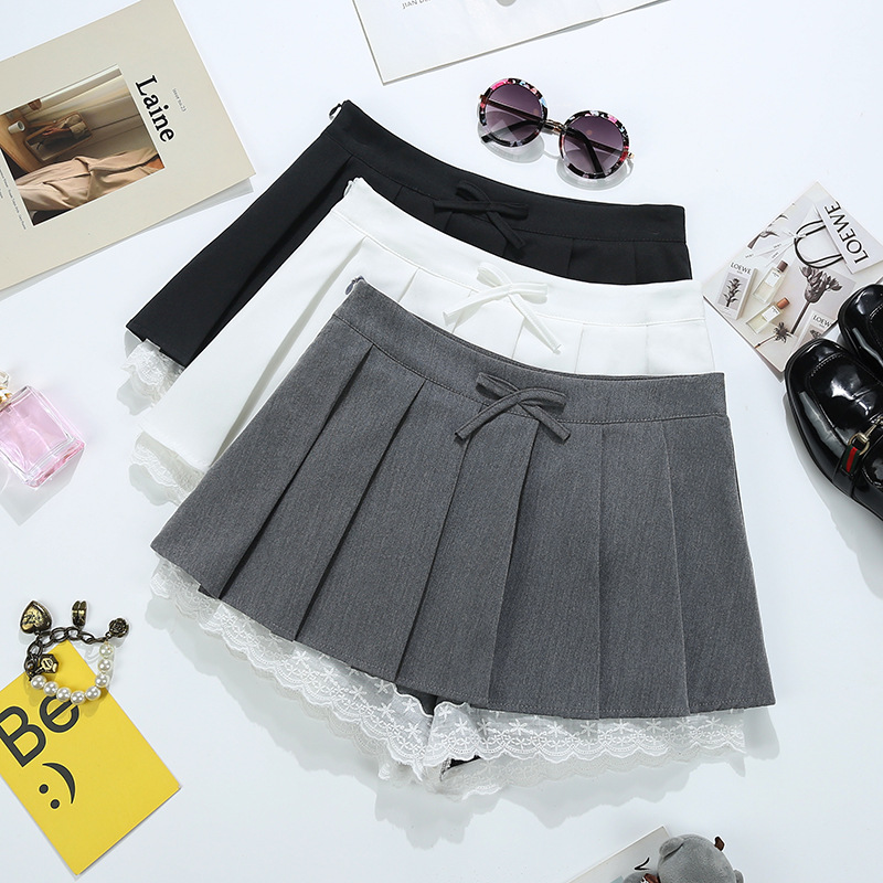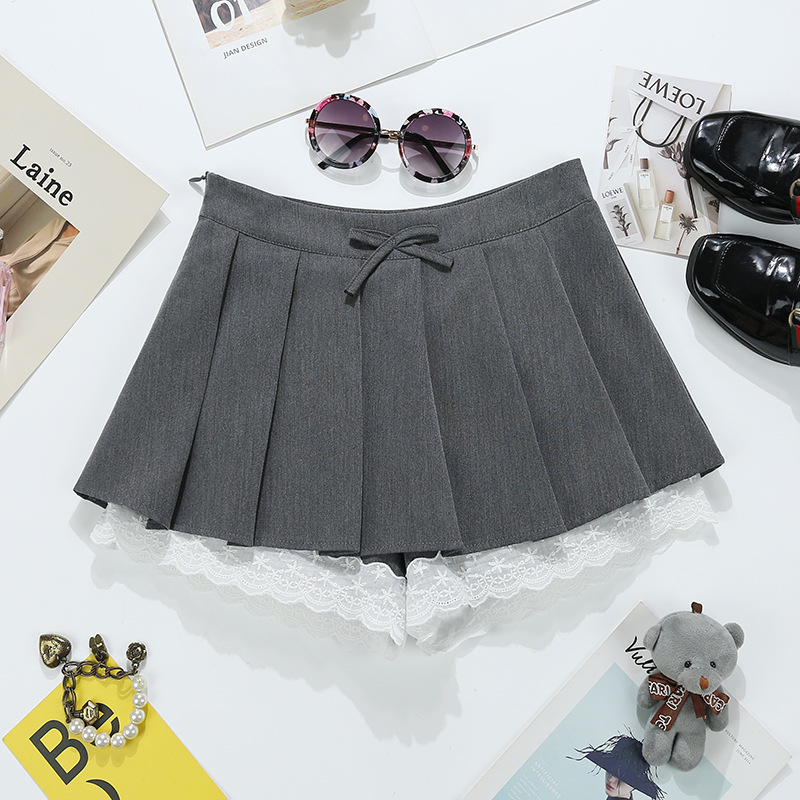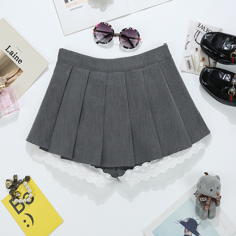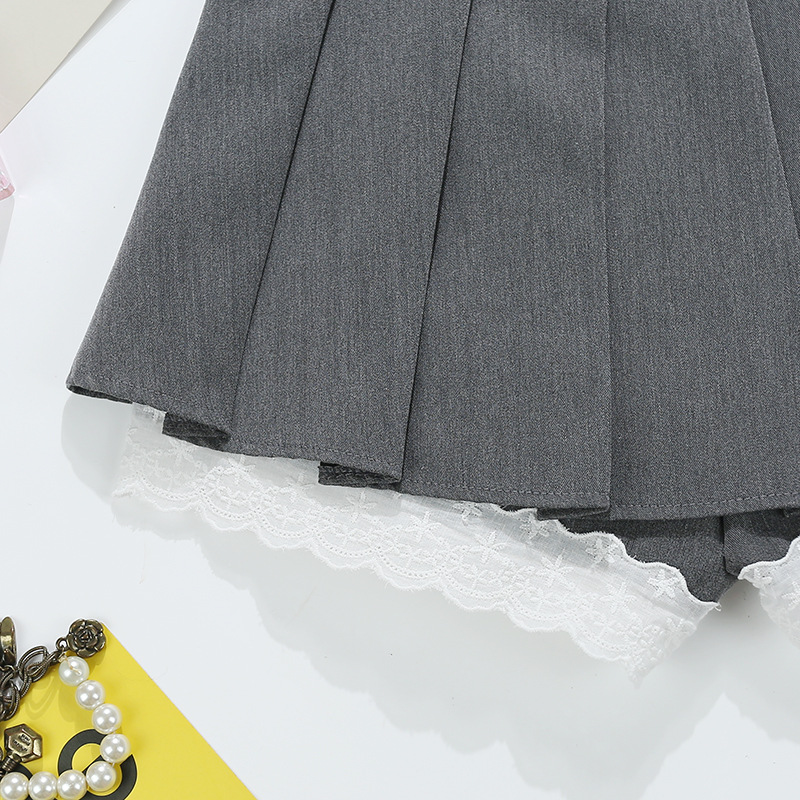 레이스 레이스 그레이 세트 미니 스커트 대학 스타일 하이 허리 jk 오버 스커트 눈부심 방지 활 주름 스커트 9133