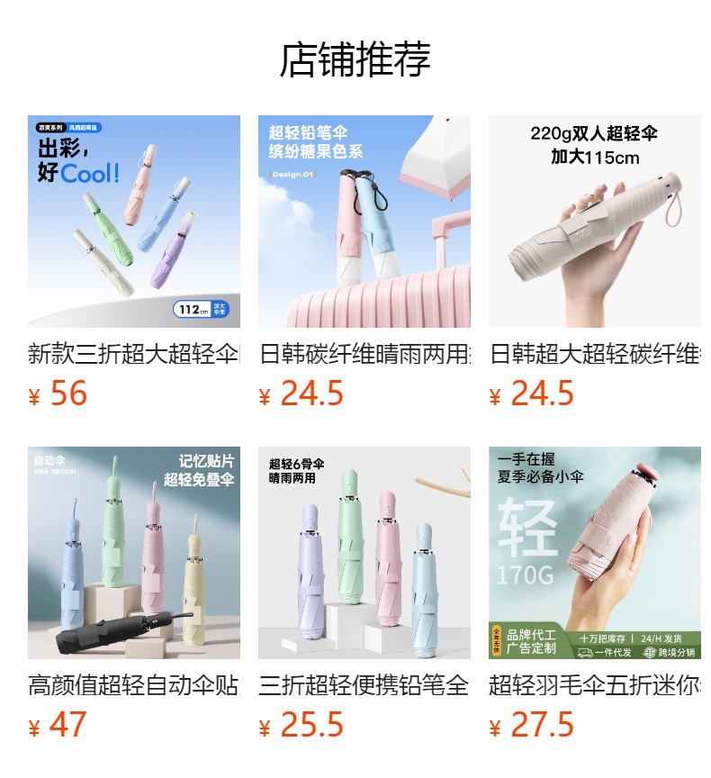 • 6본 초경량 우산 50% 할인 - 사쿠라 핑크