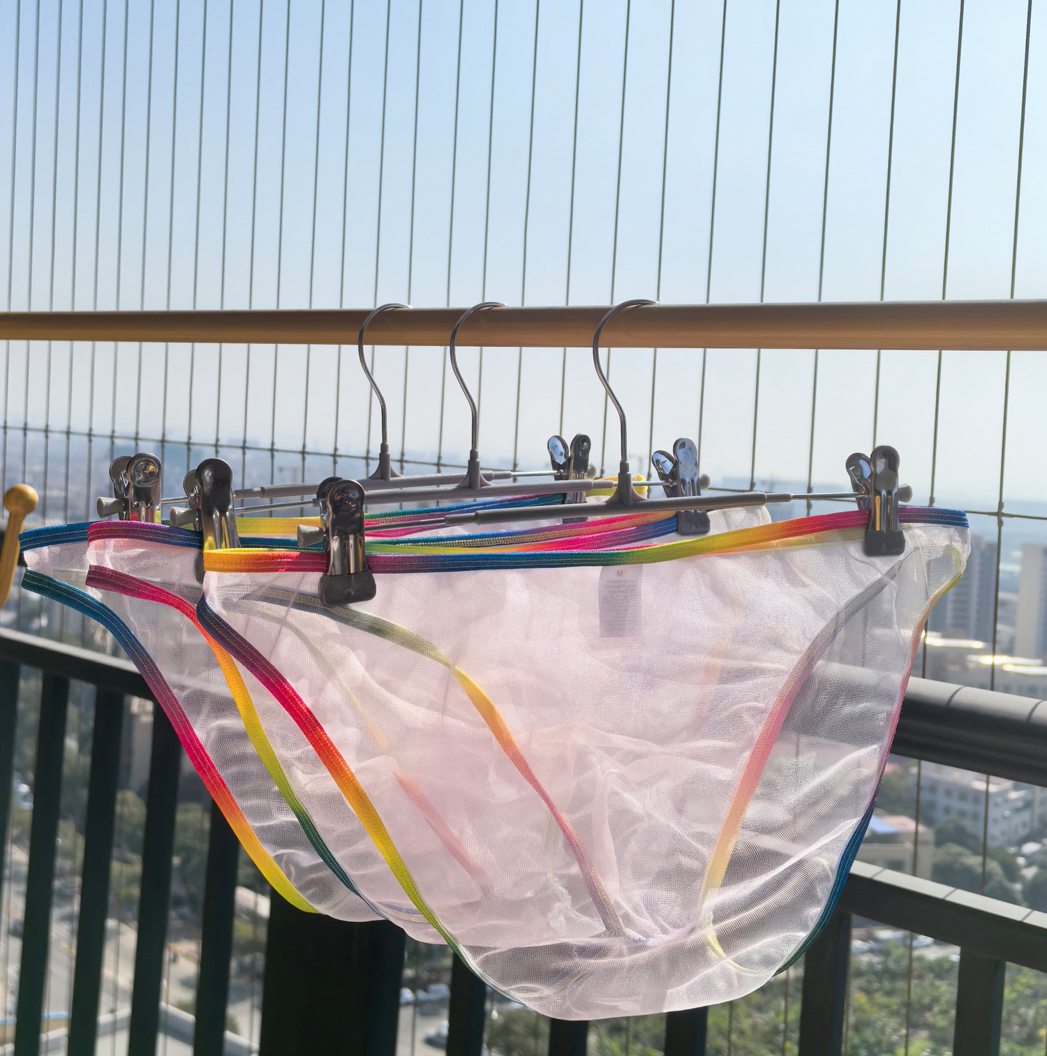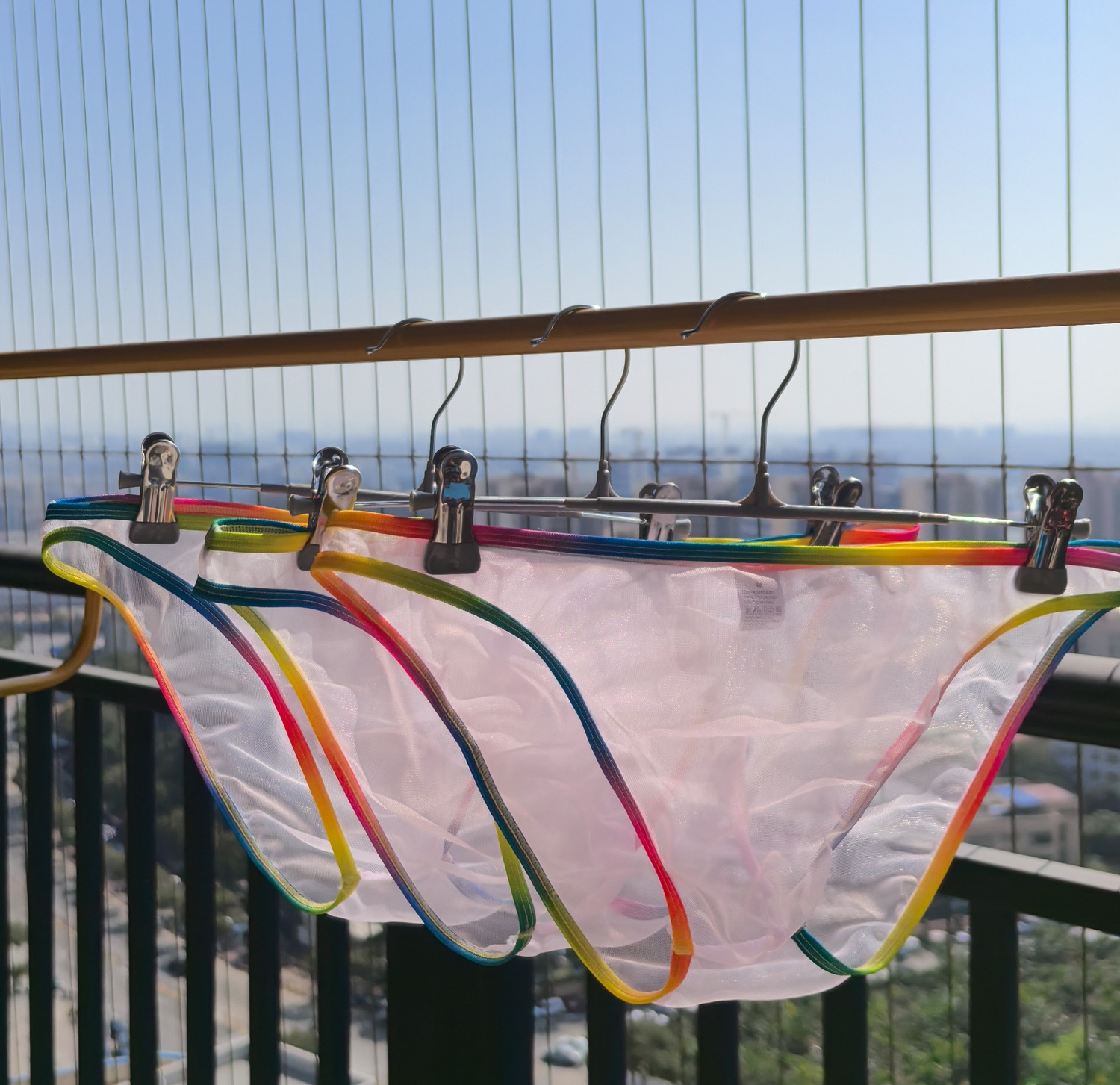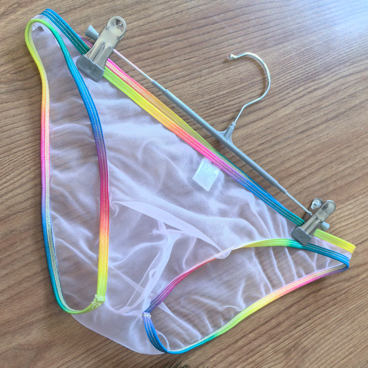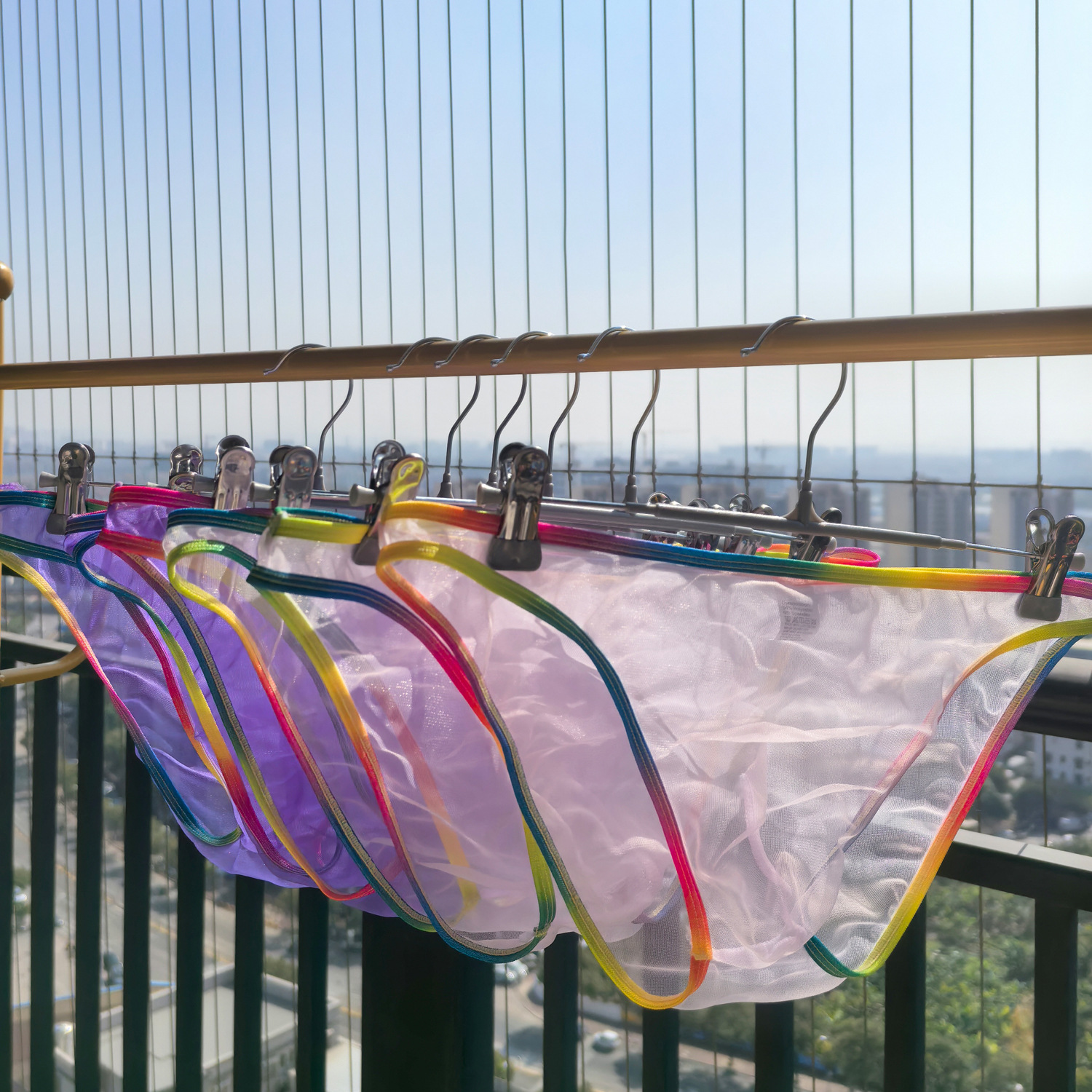 【说明】超透的网纱,面料弹力不大,彩虹色的腰带,阳光明亮又动感,穿上心情大好,配上超透明的网纱透明的诱惑,性感又心动,抵档不住诱惑的心情