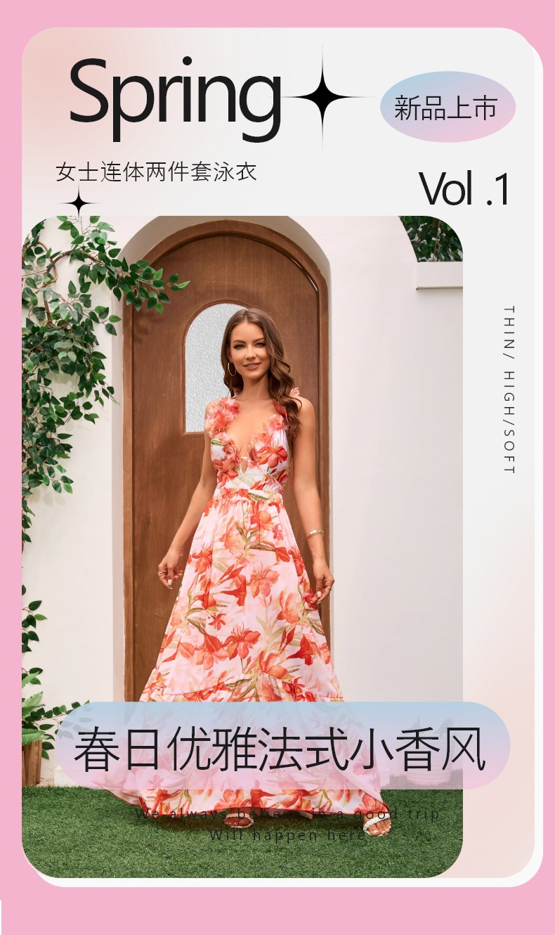 2024 유럽과 미국의 섹시한 수영복 인쇄 백리스 세트 여성용 배꼽 커버 슬림핏 슬리밍 비치 태양 보호스토어 가기