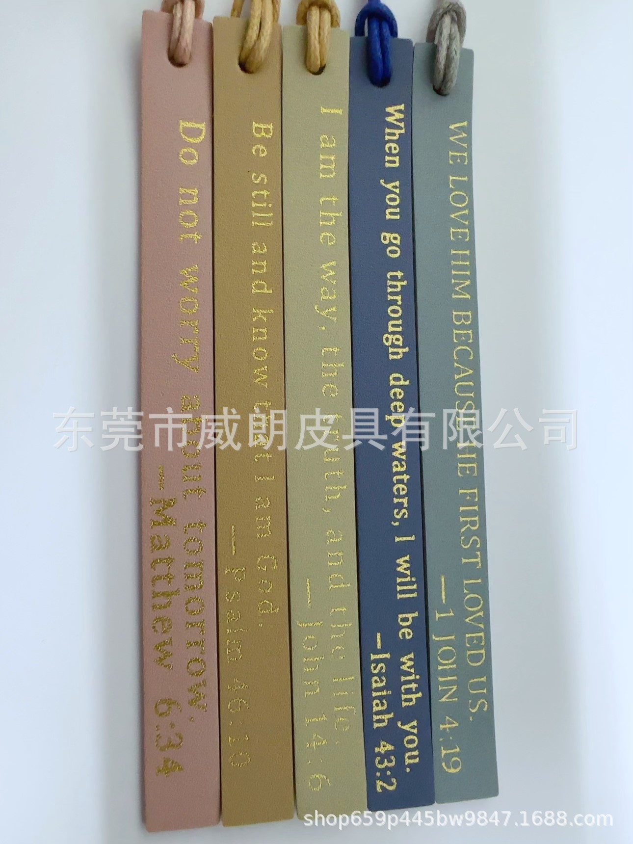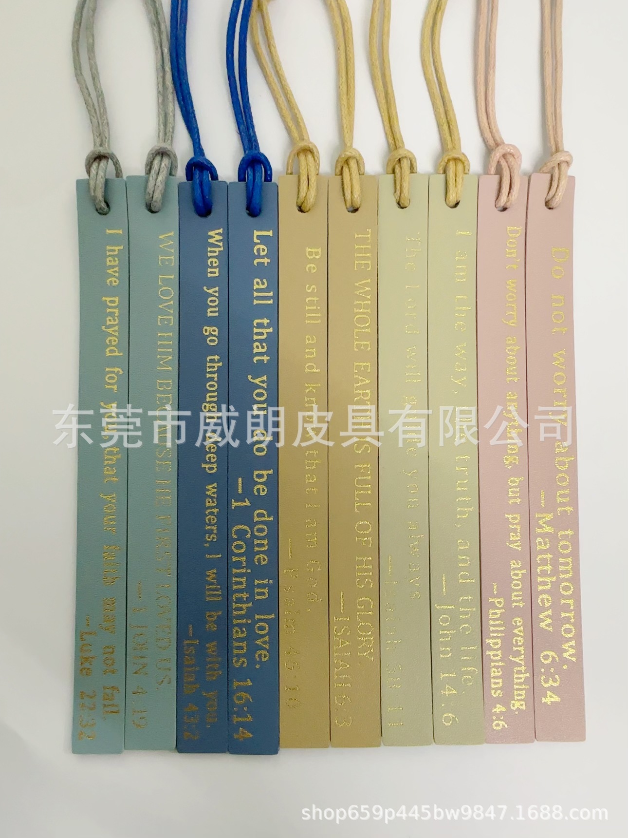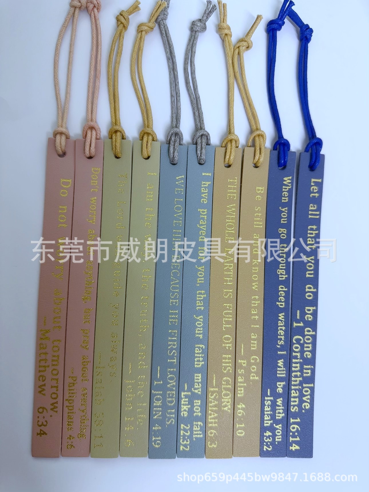 국경 간 뜨거운 판매 컬러 PU 성경 가죽 북마크 영감 가죽 북마크 독서 팬 선물 로고 브론징