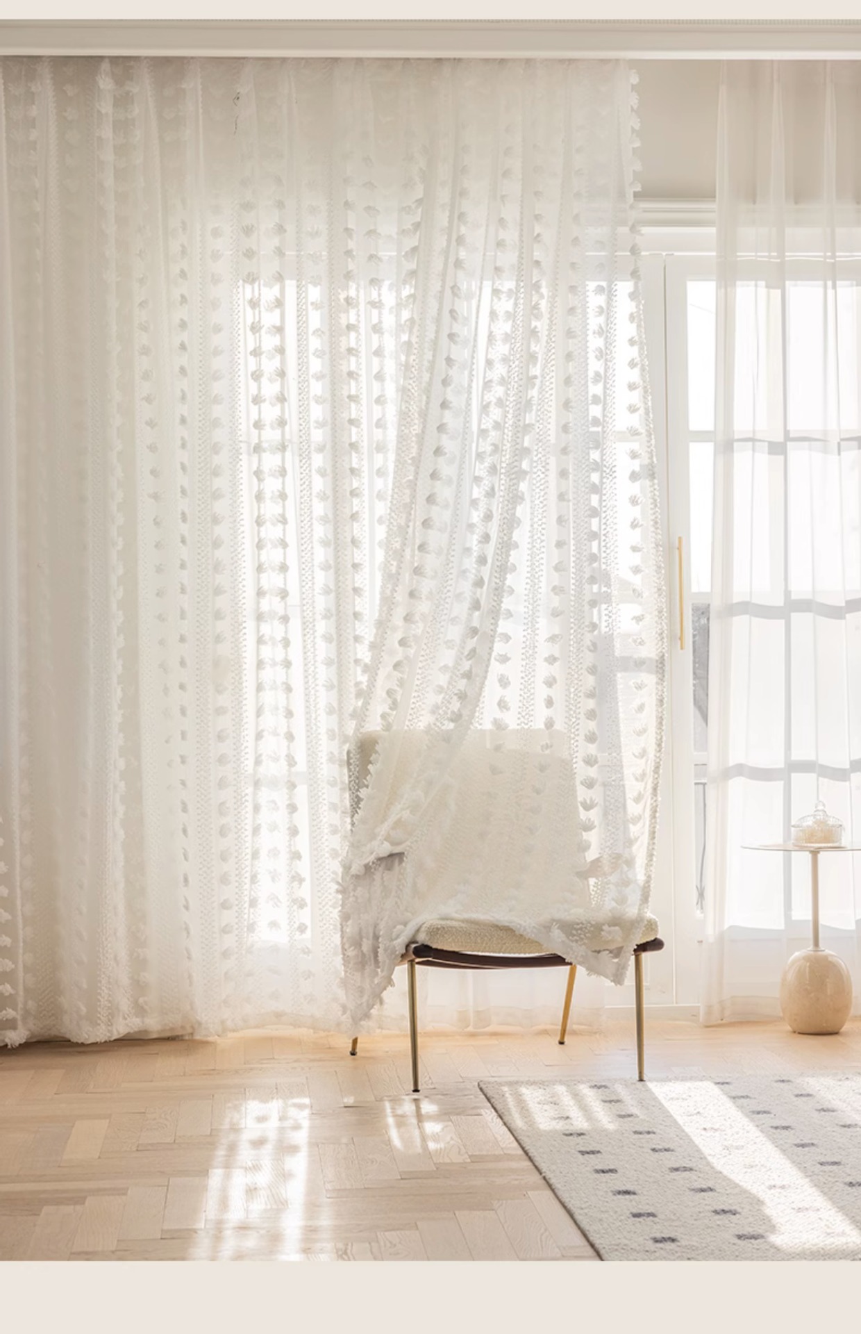 프랑스 스노우 포인트 거즈 커튼 2024 새로운 화이트 커튼 로코코 빛 고급 고급 빛 투명 화이트 거즈 툴레스토어 가기