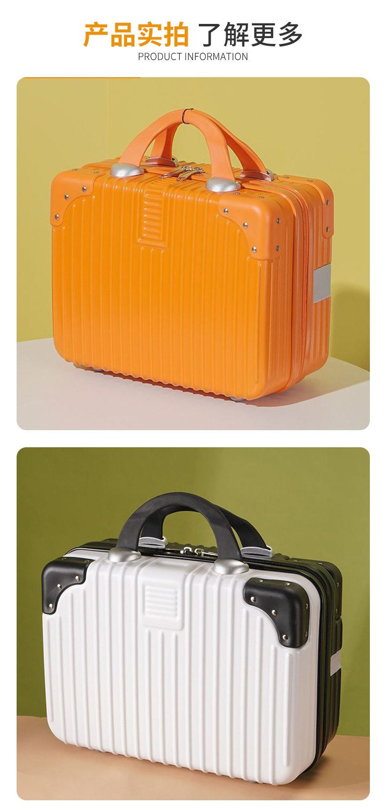 레트로 가방 14 인치 수하물 화장품 가방 작은 휴대용 탑승 상자 귀여운 학생 보관 가방