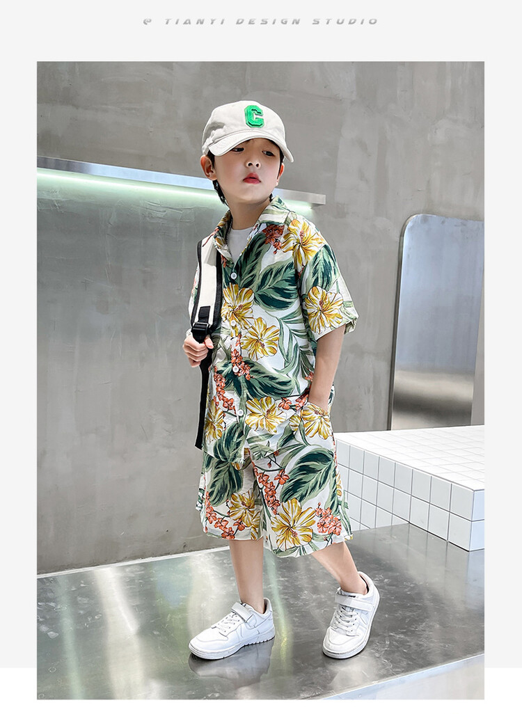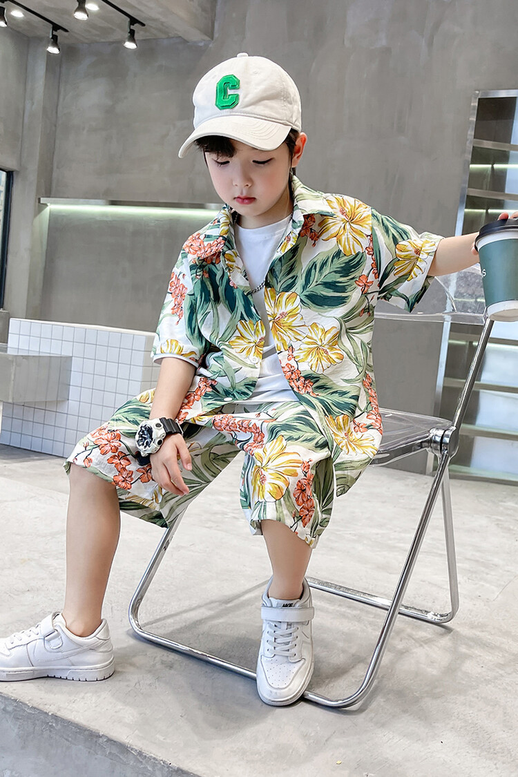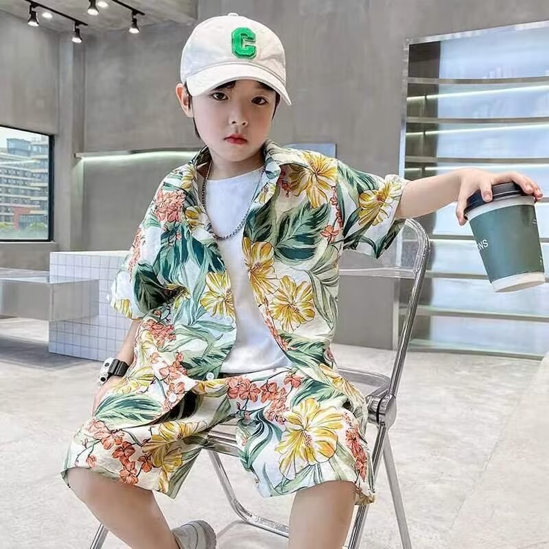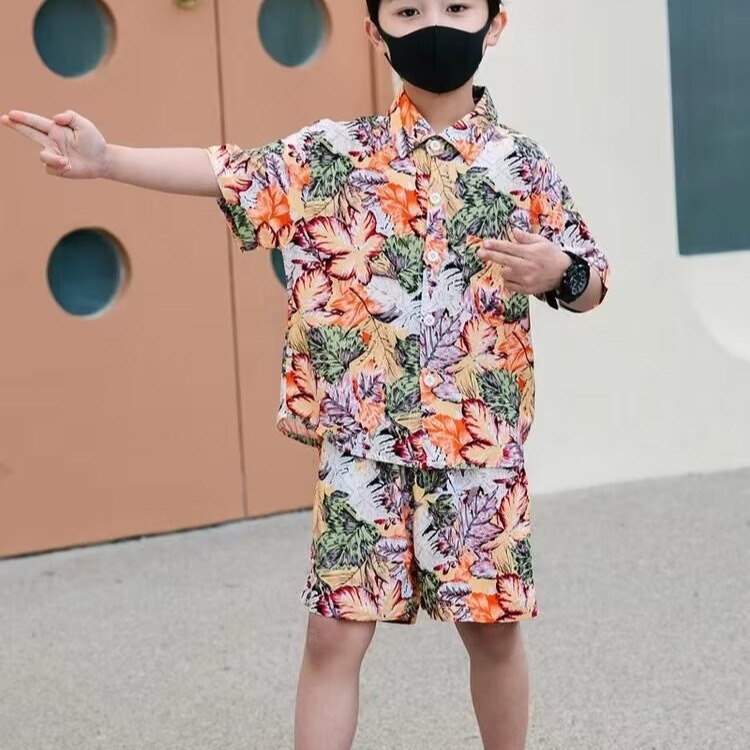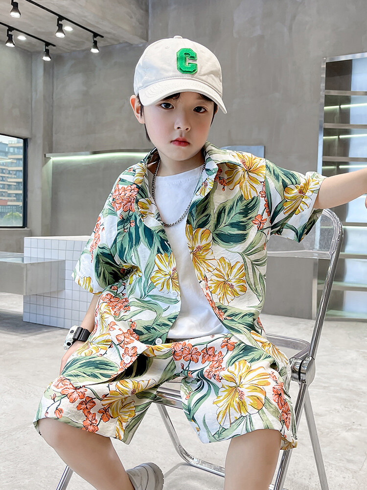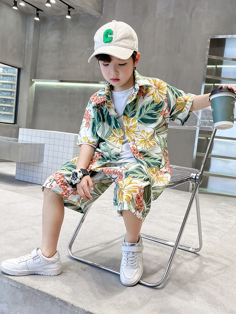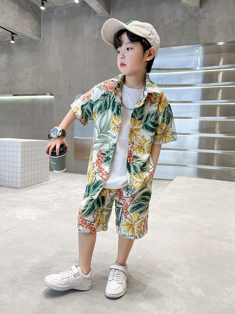 남학생 세트 하와이안 플라워 셔츠 비치 휴가 외국식 아기 세트 러피안 잘 생긴 셔츠 어린이 싼야 섬 옷스토어 가기