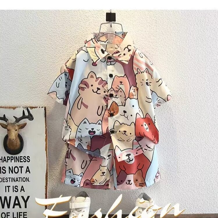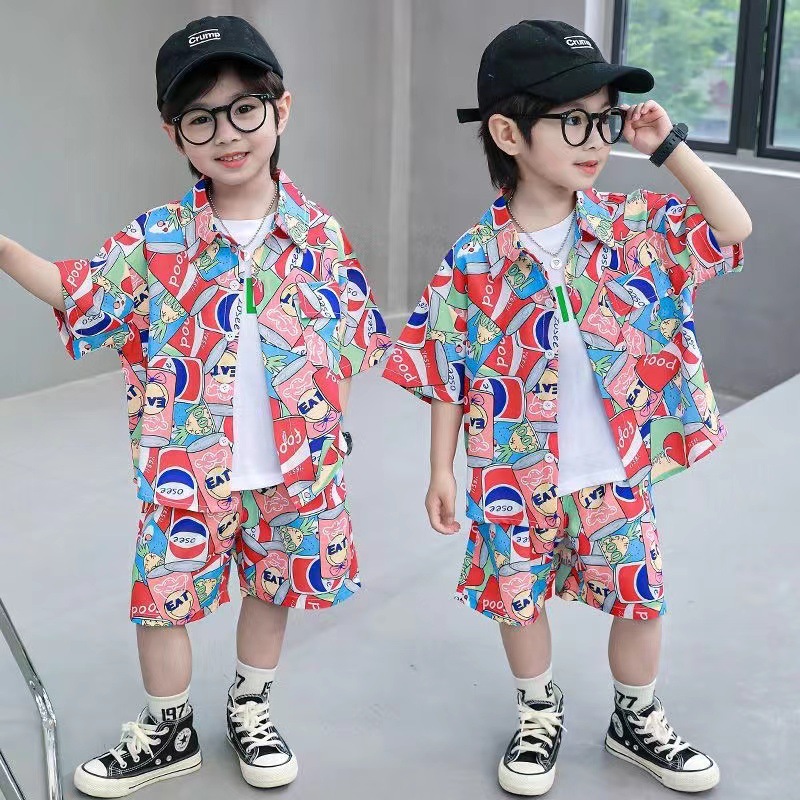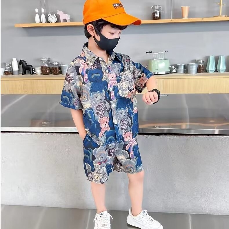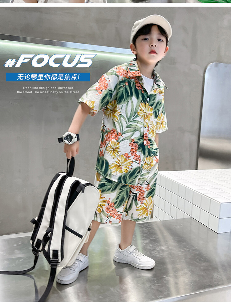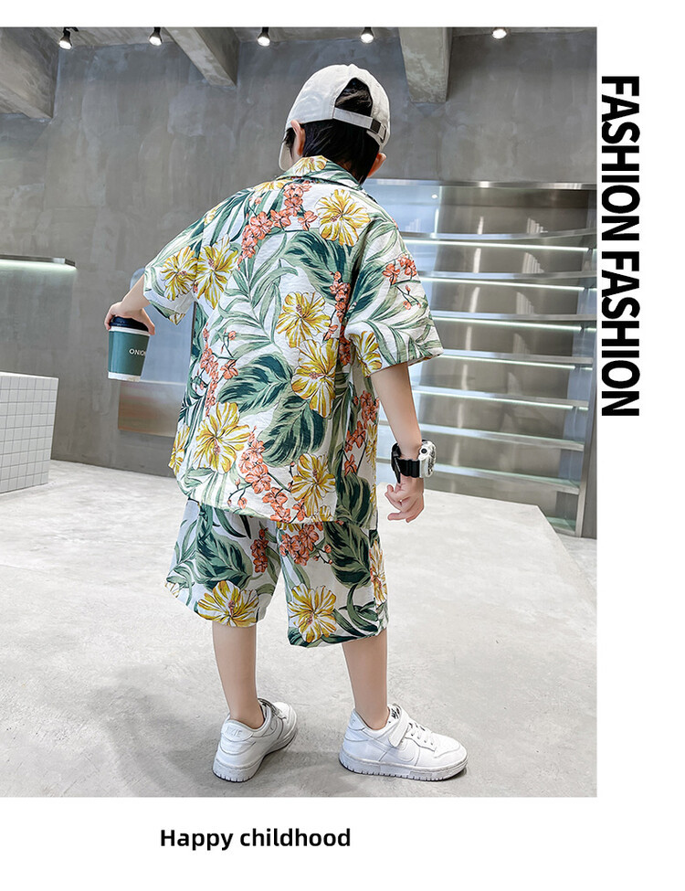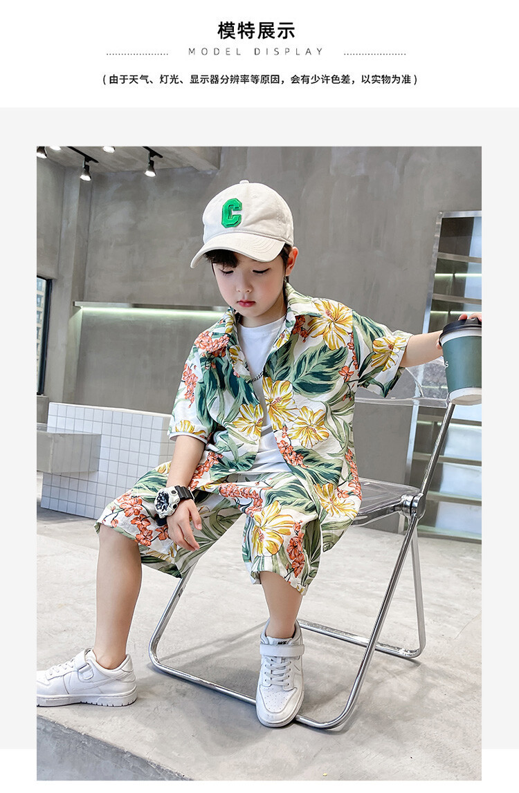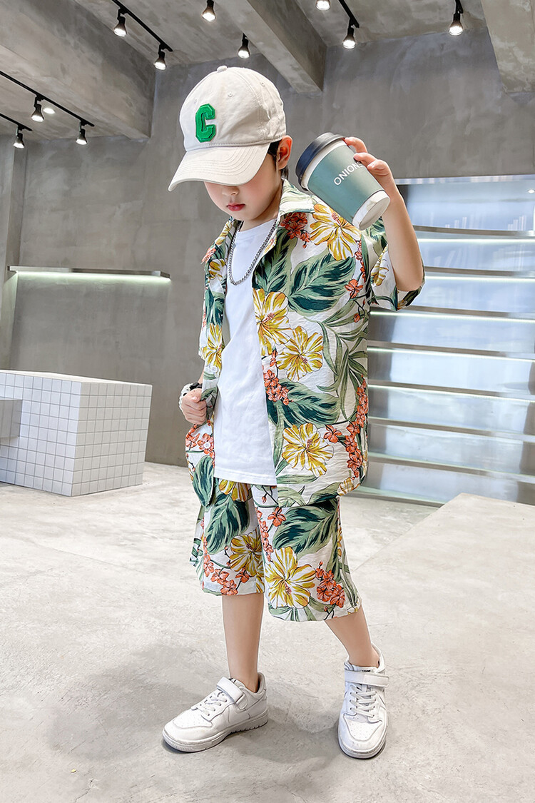 남학생 세트 하와이안 플라워 셔츠 비치 휴가 외국식 아기 세트 러피안 잘 생긴 셔츠 어린이 싼야 섬 옷스토어 가기