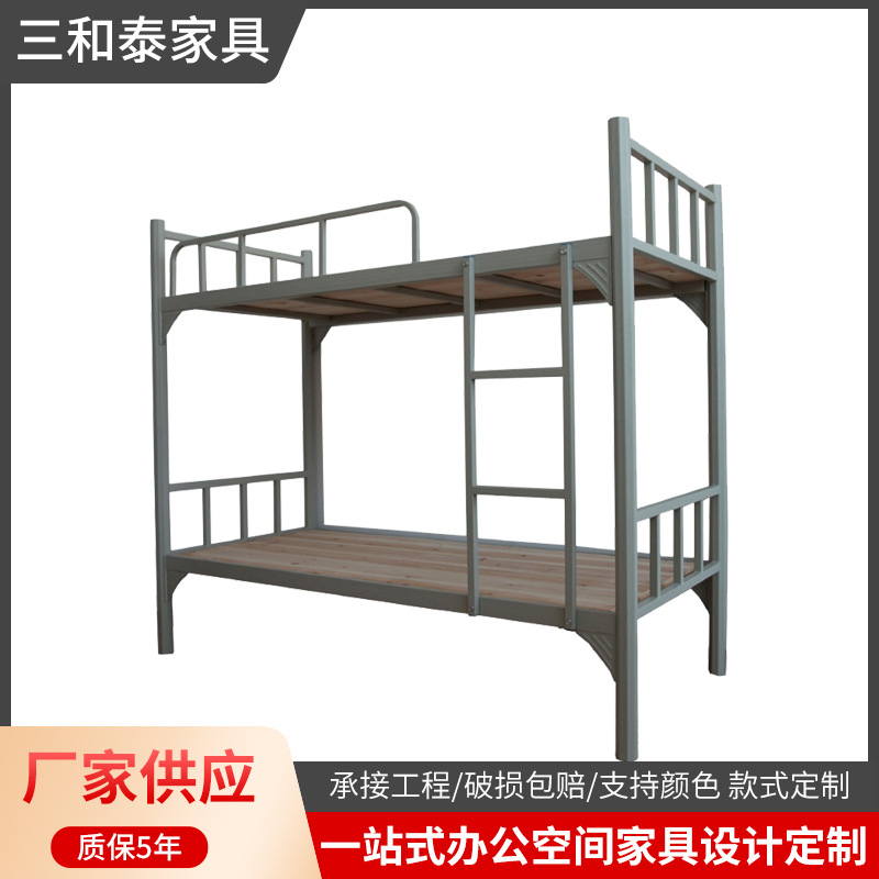 캐비닛이있는 두꺼운 이중층 철 프레임 침대 학생 기숙사 상하 벙크 직원 아파트 강철 높고 낮은 철 철 침대스토어 가기