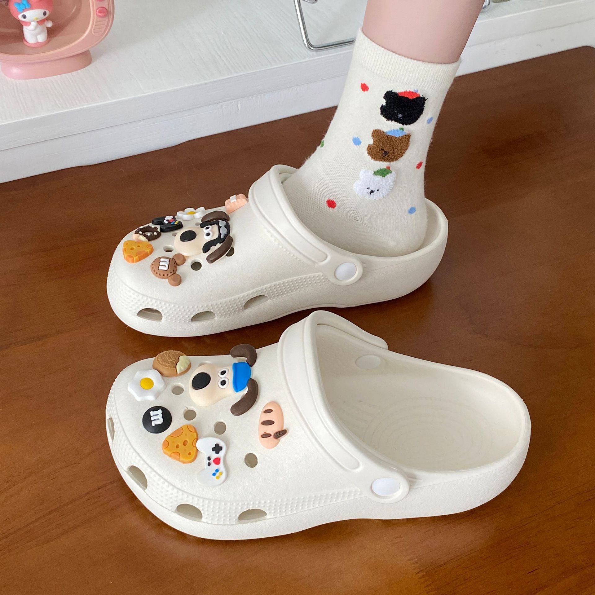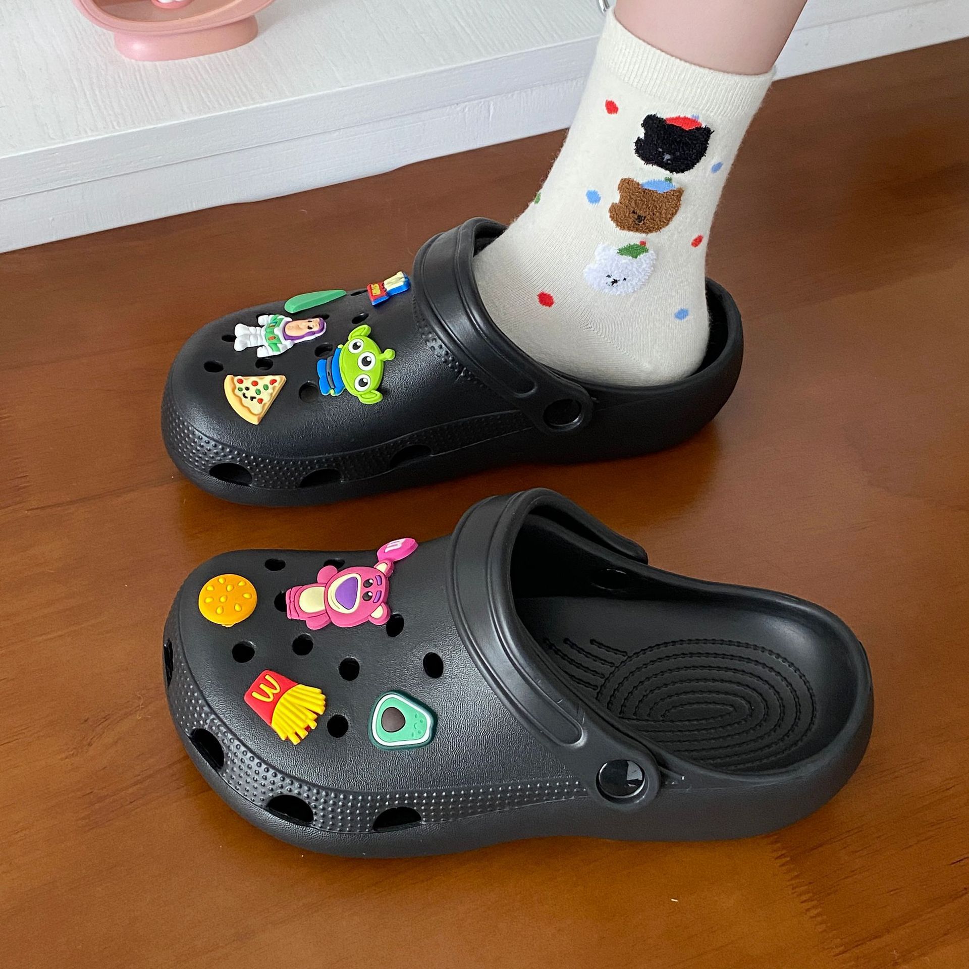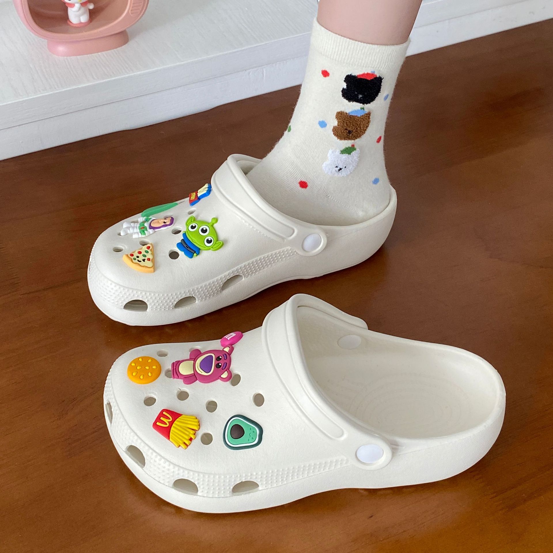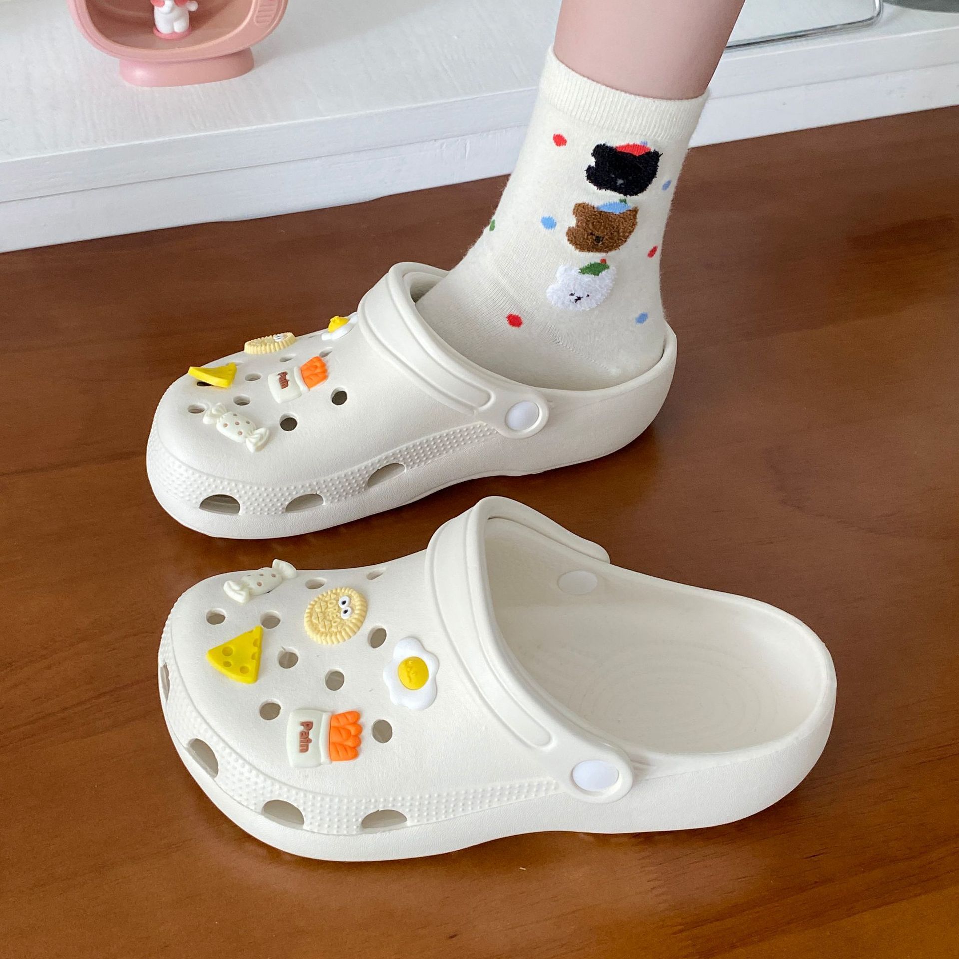 남성과 여성을위한 도파민 재미 귀여운 DIY 작은 석탄 공 동굴 신발 커플 아웃웨어 학생 Ins 올 매치 탈취제 샌들스토어 가기