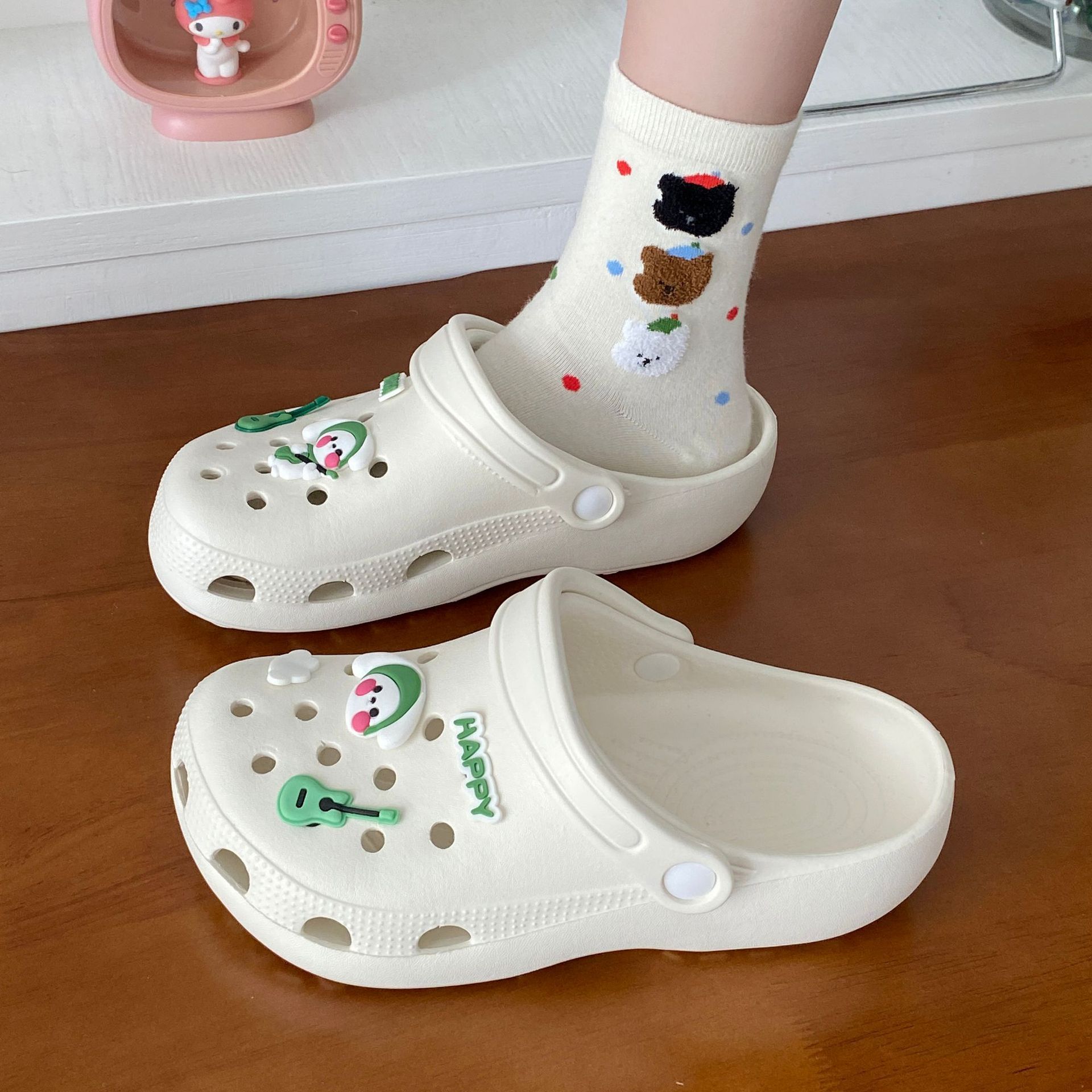 남성과 여성을위한 도파민 재미 귀여운 DIY 작은 석탄 공 동굴 신발 커플 아웃웨어 학생 Ins 올 매치 탈취제 샌들