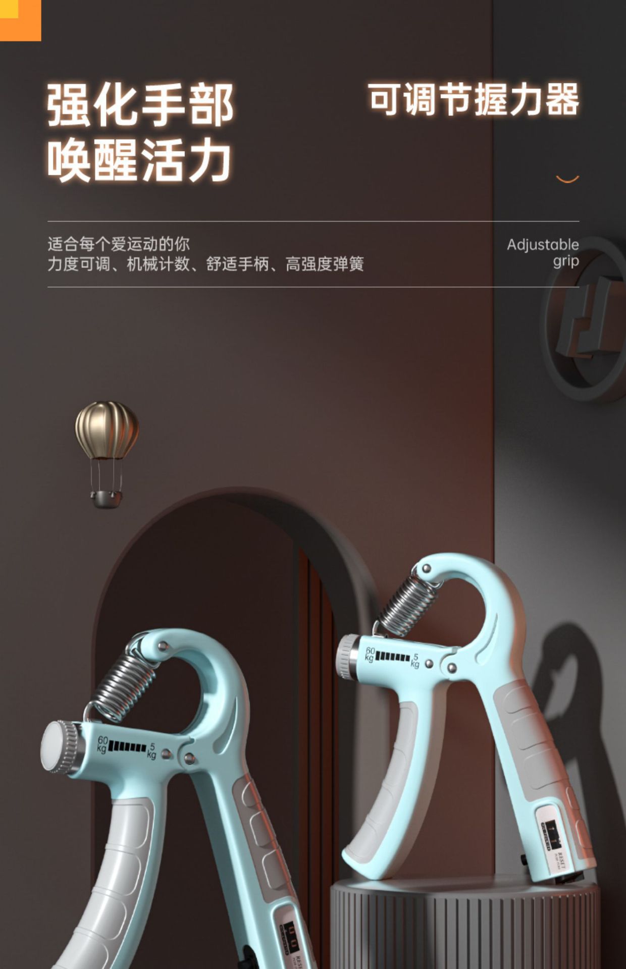 진능 직판 카운터형 그립 강화기 팔 운동기구 손 근력 강화 남성용 운동기구 조절 가능한 손가락 그립