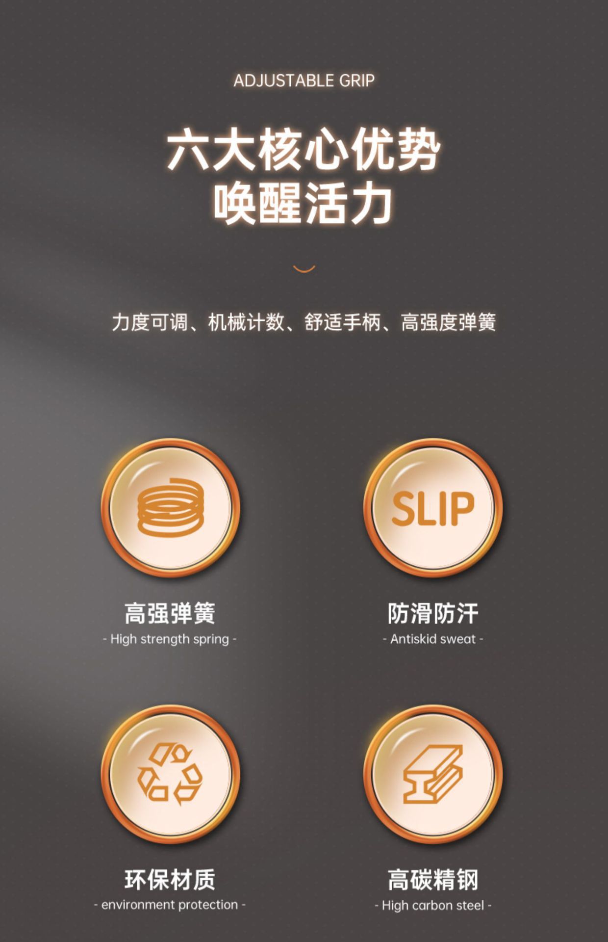 名称:新款R型可调可计数包胶握力器