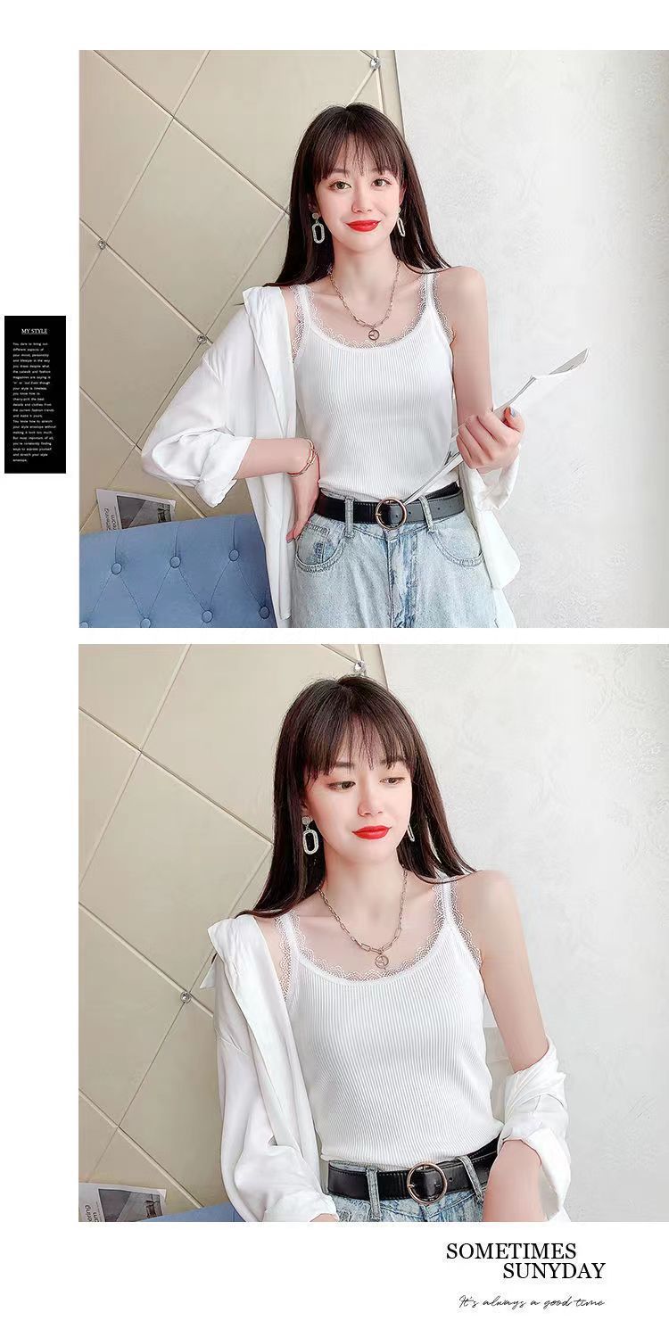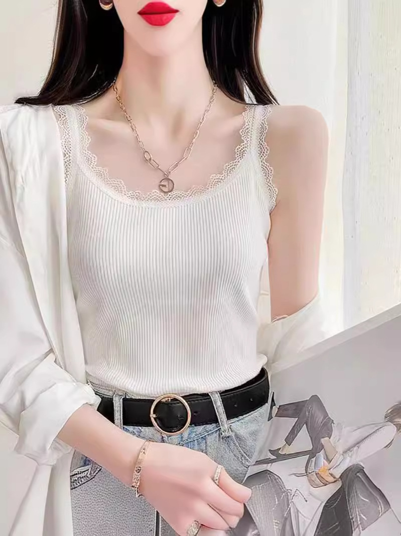 2024 여름 새로운 스타일 레이스 바느질 스레드 모달 카미솔 여성의 내부 슬림 핏 탑베이스 셔츠