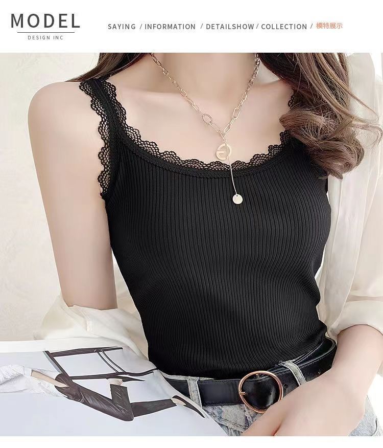 2024 여름 새로운 스타일 레이스 바느질 스레드 모달 카미솔 여성의 내부 슬림 핏 탑베이스 셔츠스토어 가기