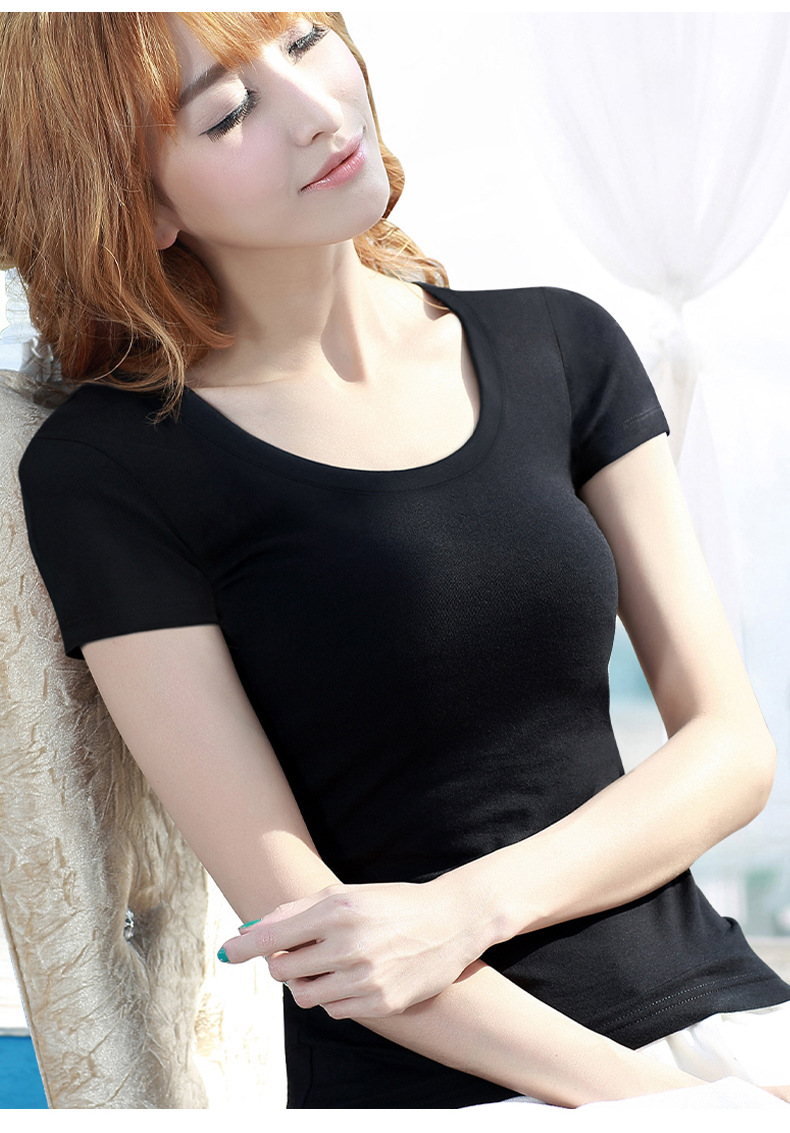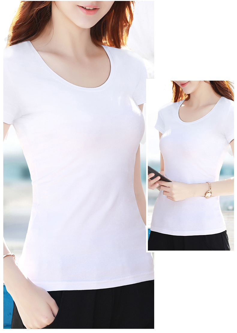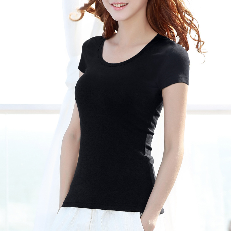 화이트 티셔츠 여성용 반소매 올 매치 하프 슬리브 로우 라운드 넥 슬림 핏 베이스 셔츠 새 스타일 블랙 티셔츠 여름