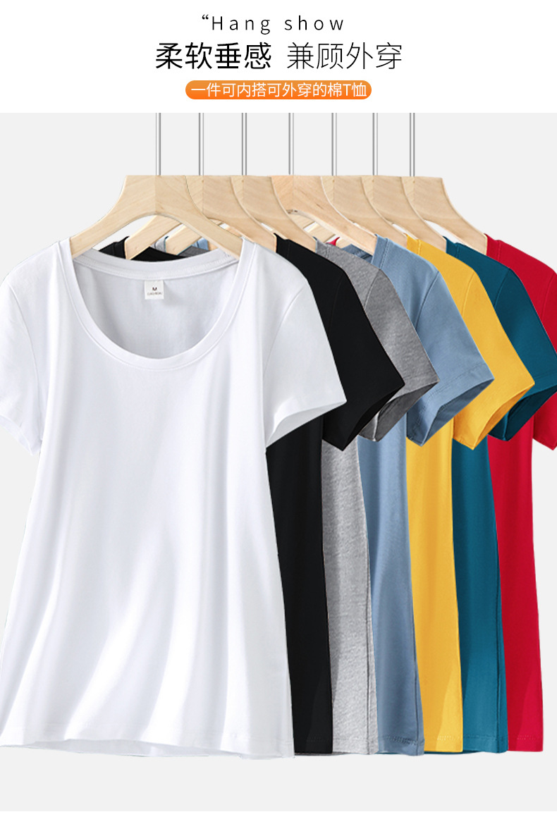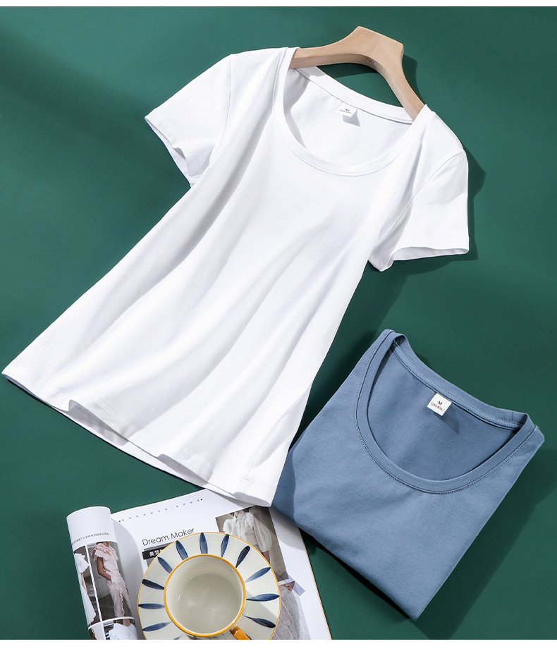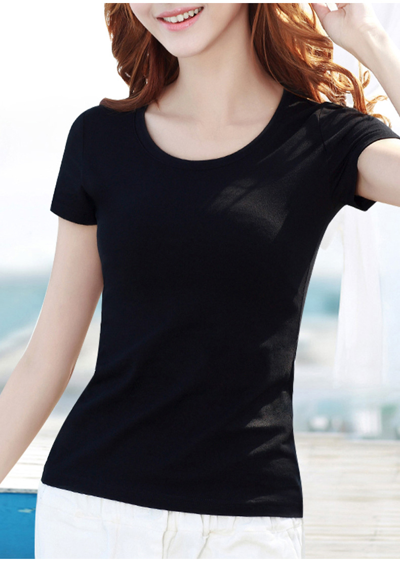 화이트 티셔츠 여성용 반소매 올 매치 하프 슬리브 로우 라운드 넥 슬림 핏 베이스 셔츠 새 스타일 블랙 티셔츠 여름스토어 가기