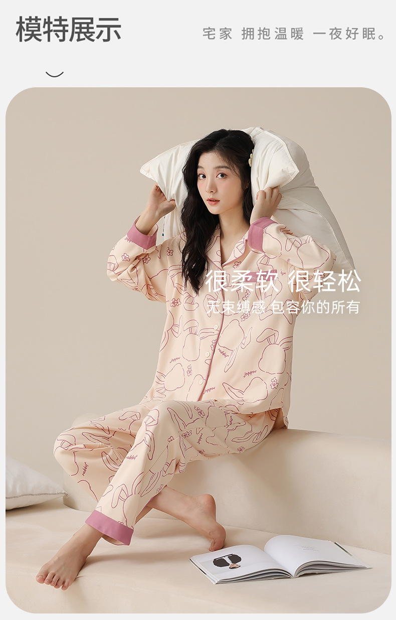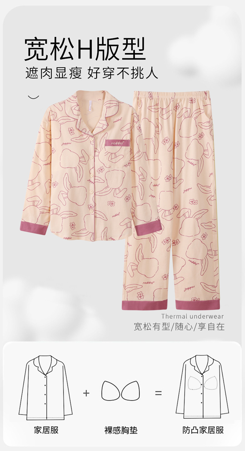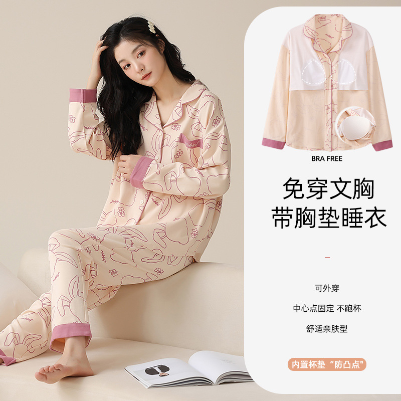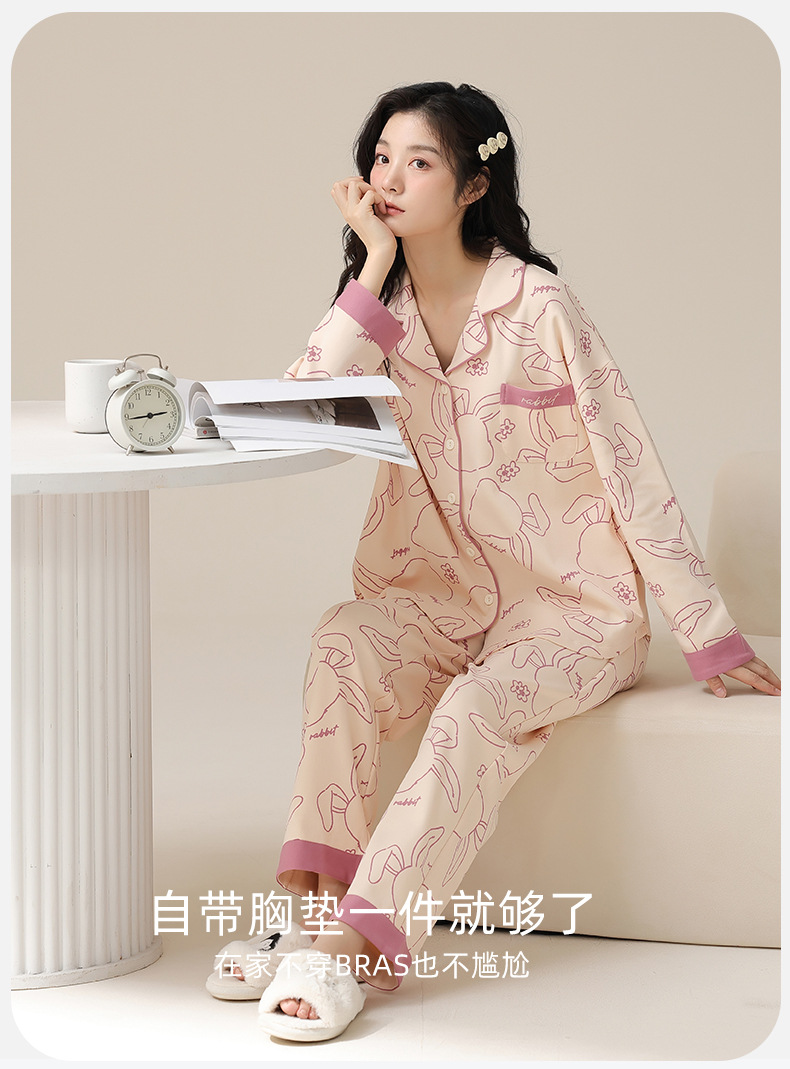 여성용 가을/봄 카디건, 라펠 디자인, 내장형 가슴 패드, 긴팔, 긴바지, 순면 투피스 홈웨어 세트스토어 가기