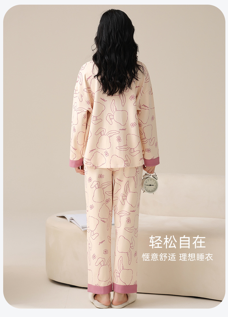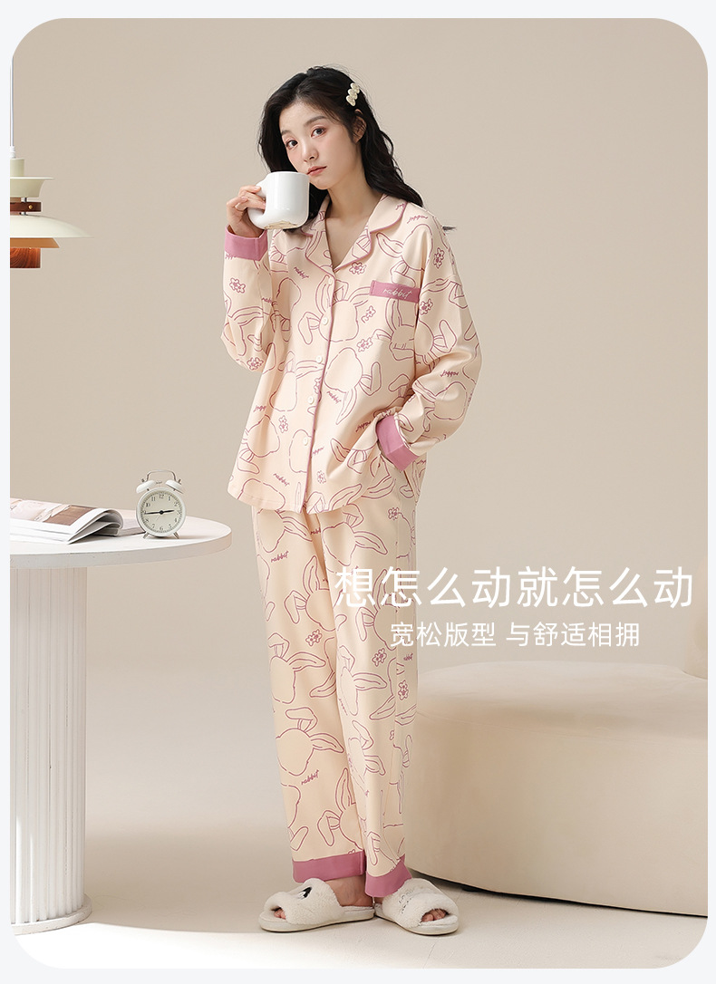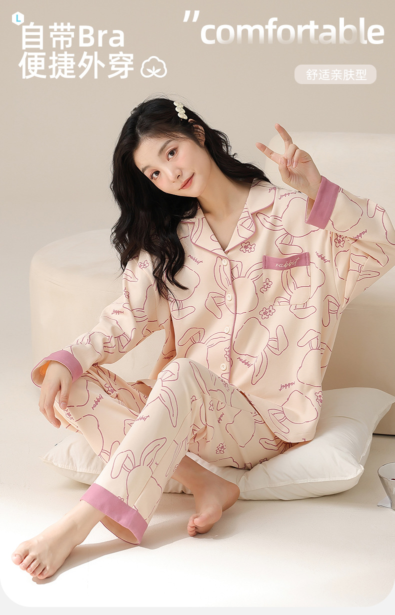 여성용 가을/봄 카디건, 라펠 디자인, 내장형 가슴 패드, 긴팔, 긴바지, 순면 투피스 홈웨어 세트스토어 가기