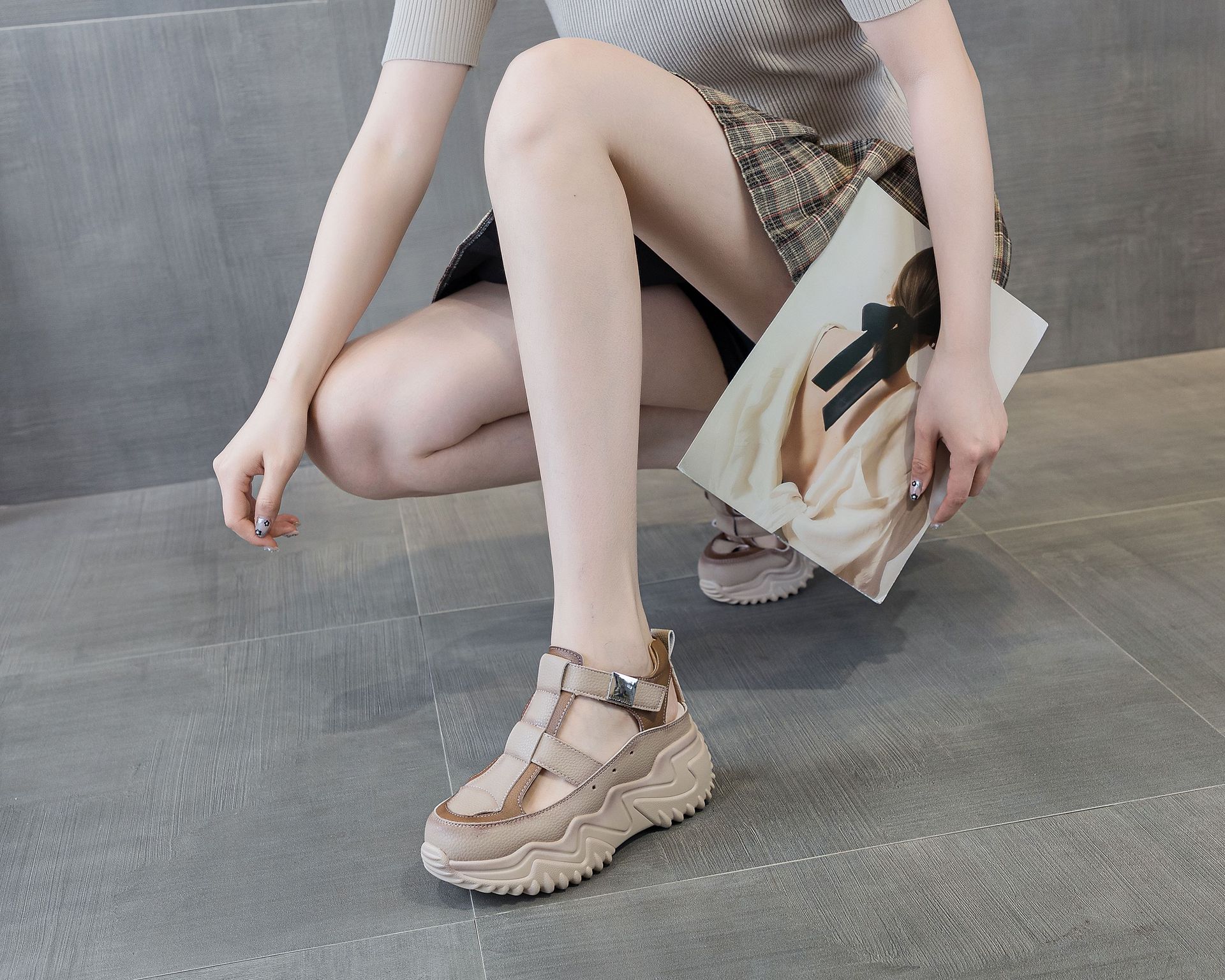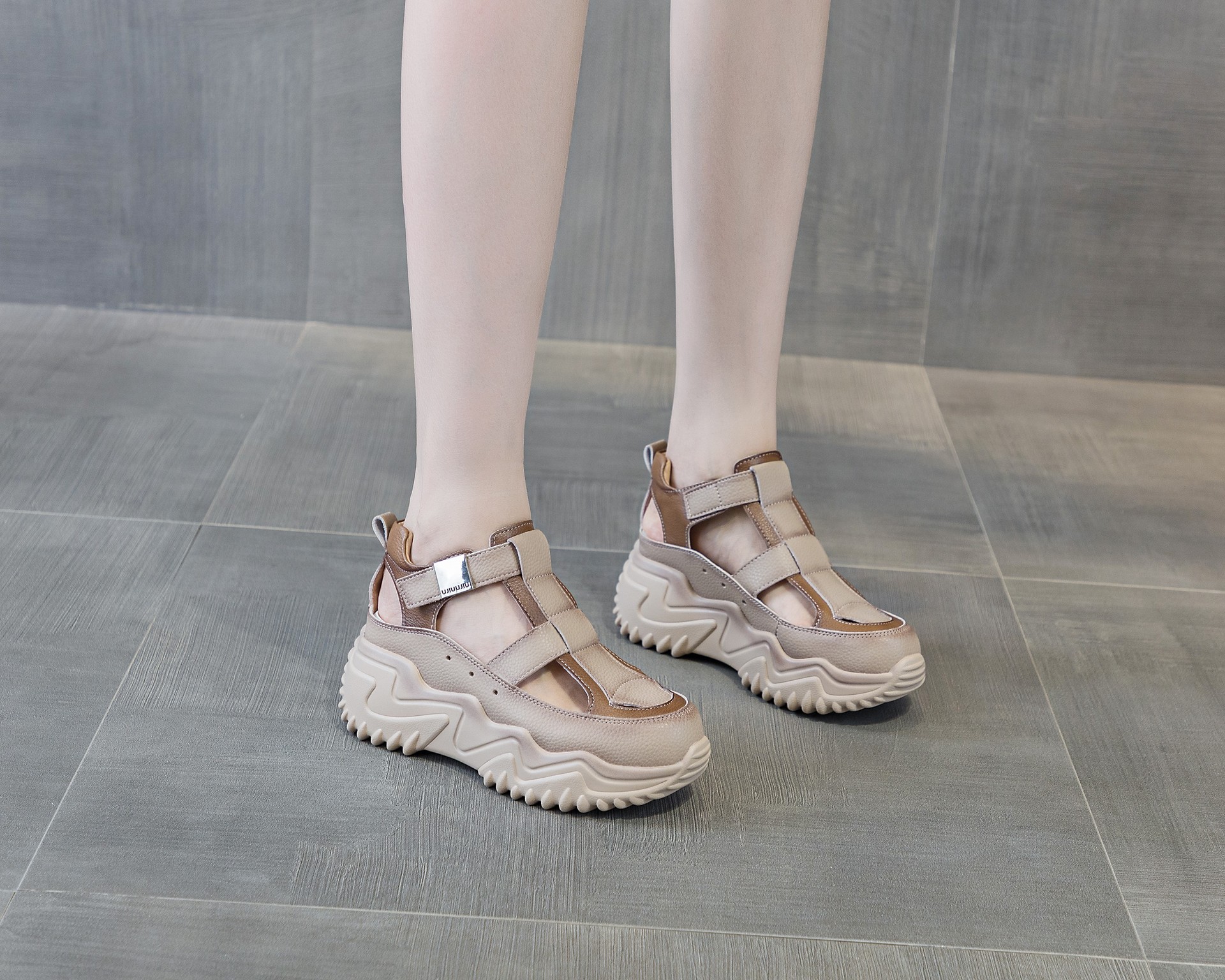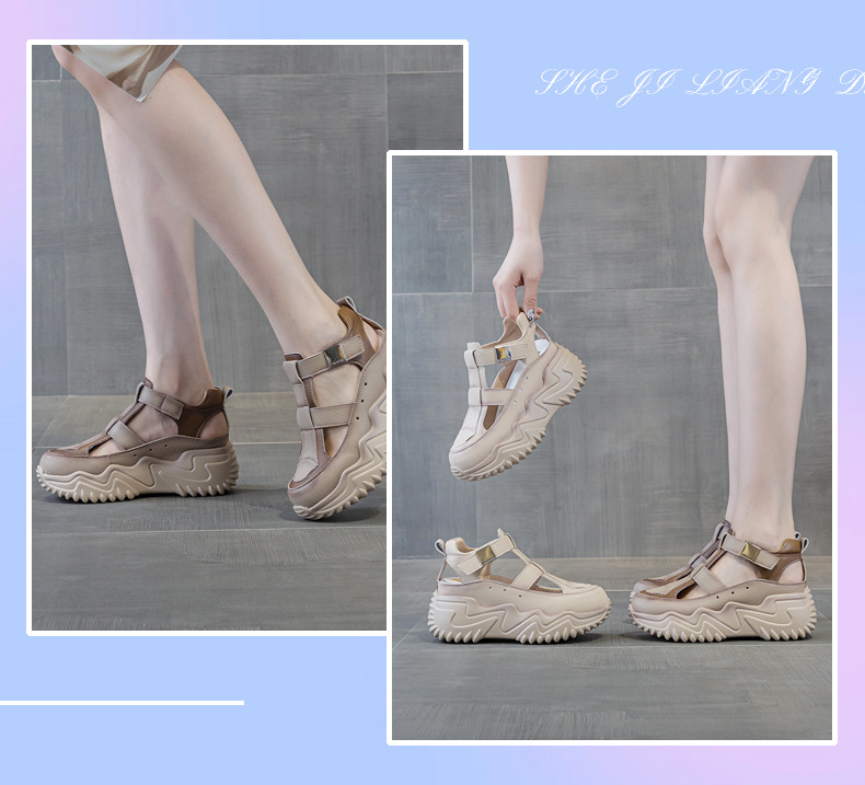 16881 생방송 인기 원피스 스포츠 샌들 여성 여름 캐주얼 통기성 중공 아빠 신발스토어 가기