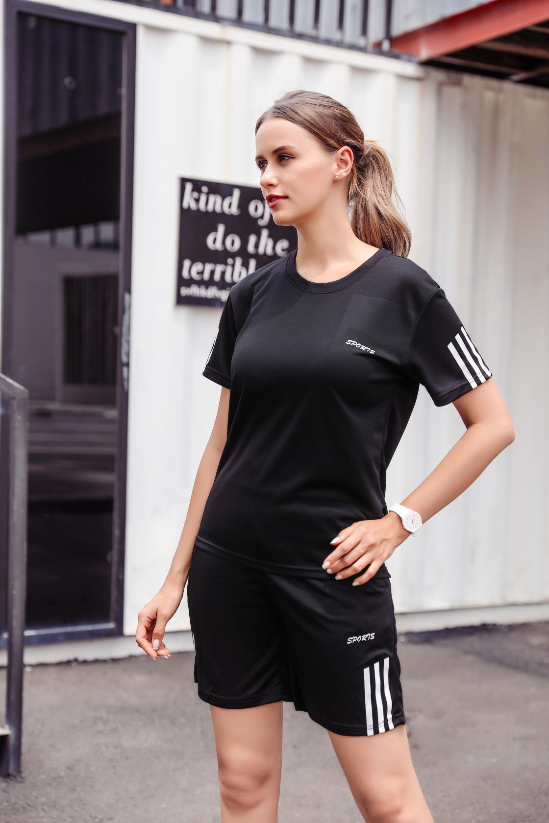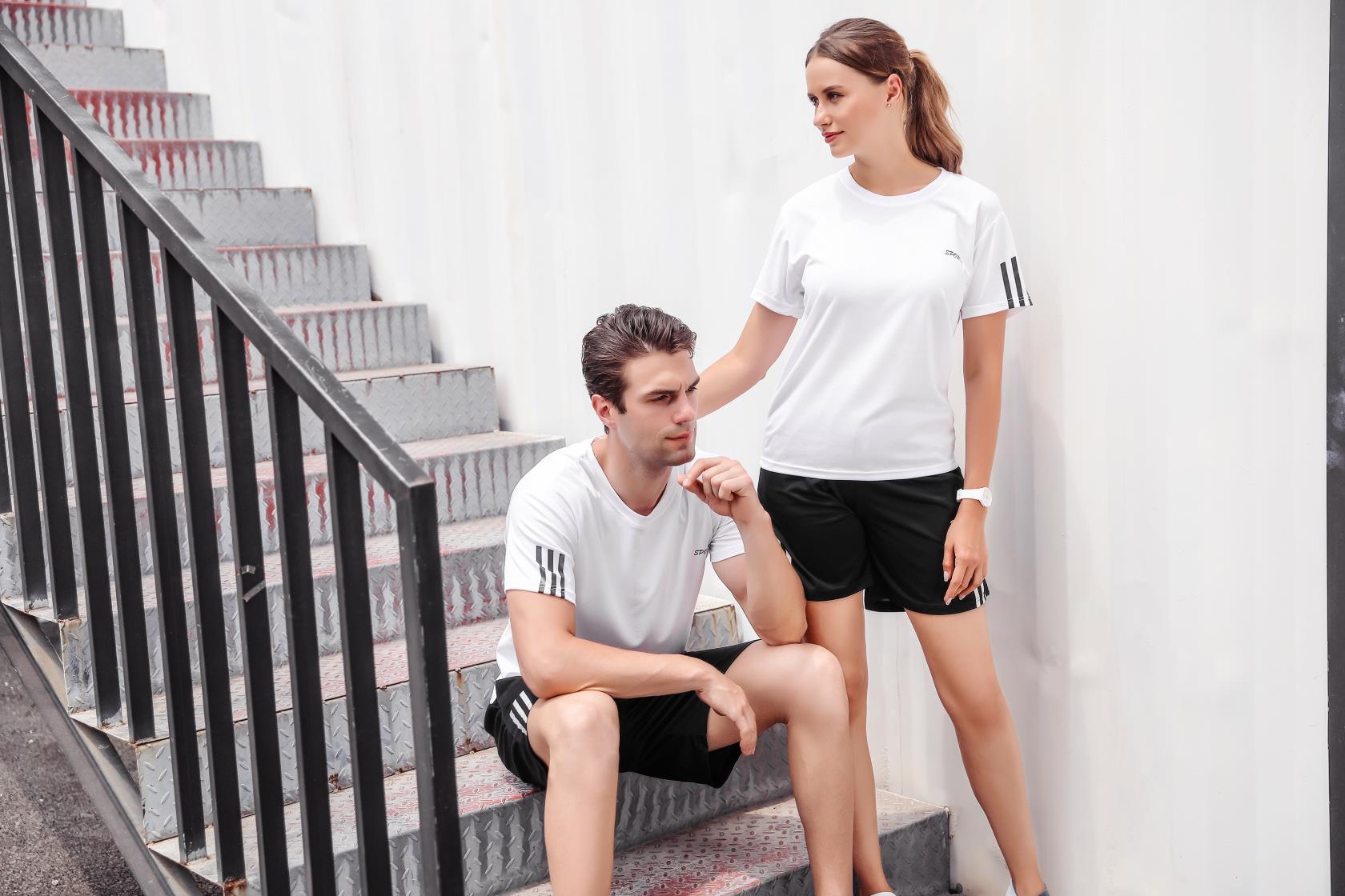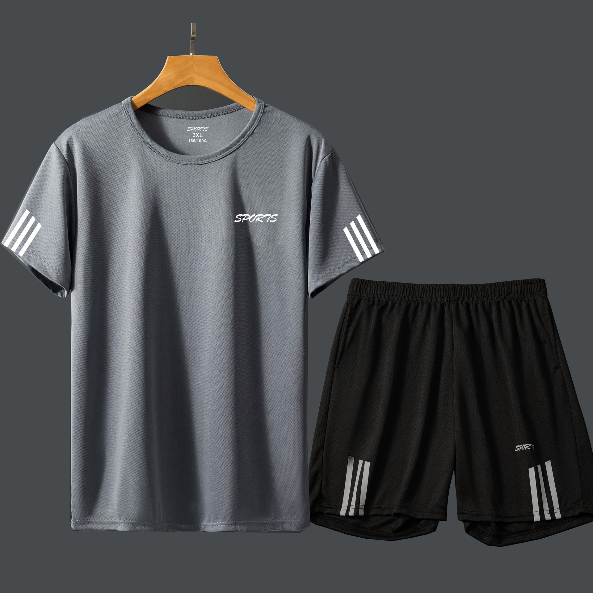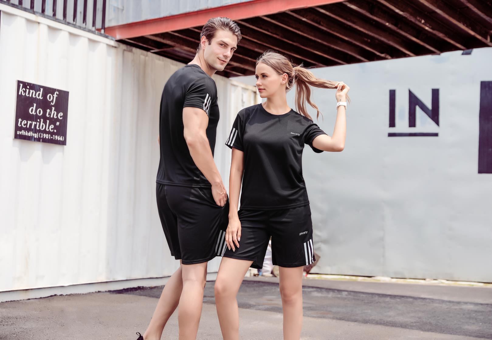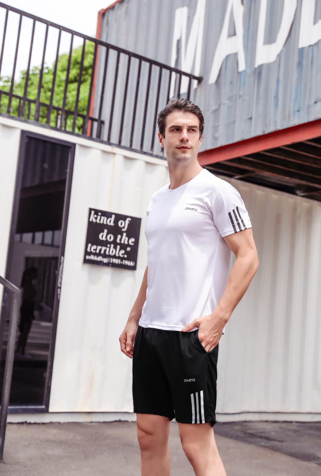 스포츠 세트 남성 여름 캐주얼 세트 체육관 러닝 의류 느슨한 크루 넥 그룹 인쇄 빠른 건조 티셔츠스토어 가기