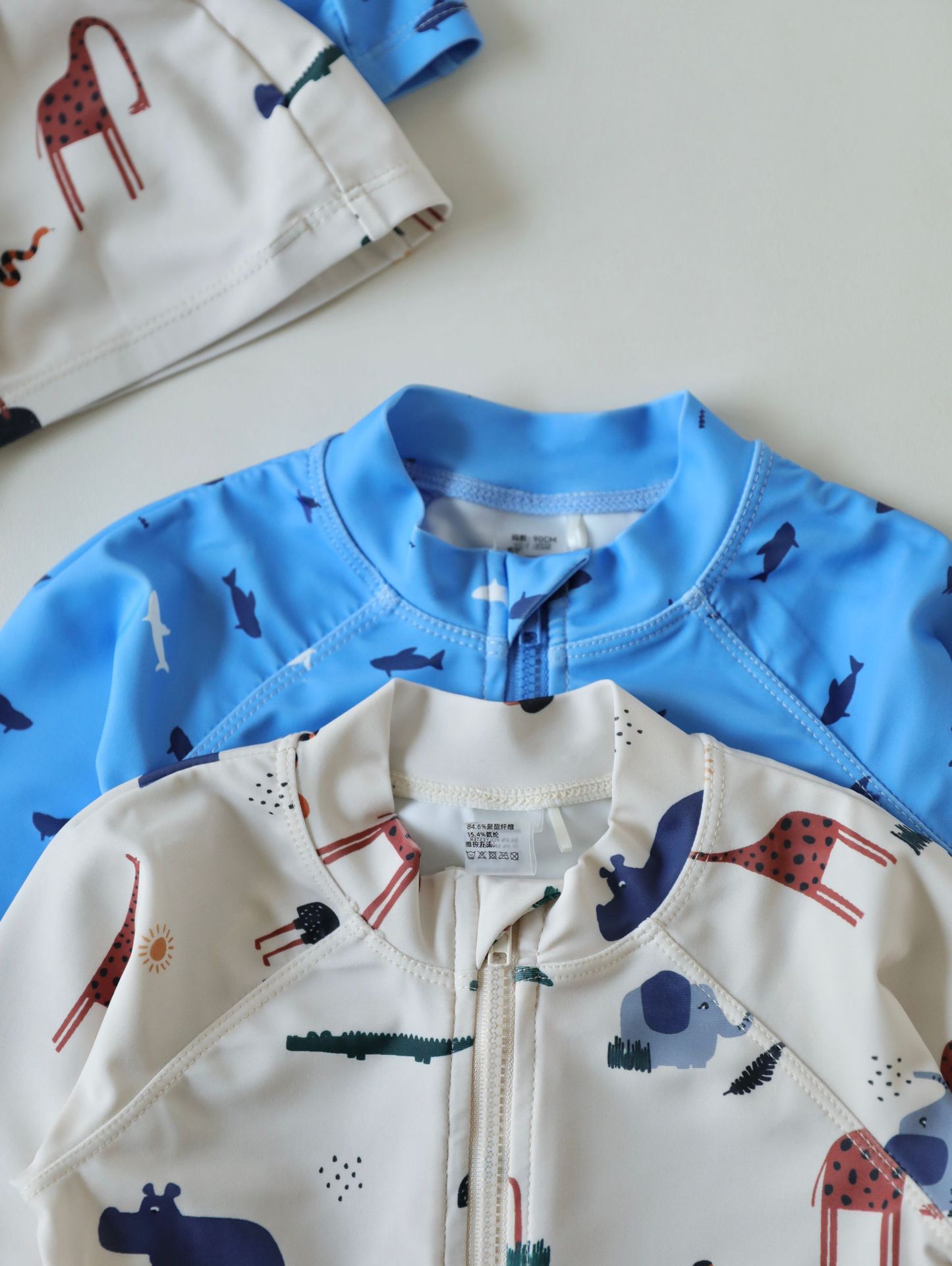 베이비 보이즈 Ins 해변 휴가 원피스 수영복 어린이 퀵 드라이 썬 스크린 수영복 소년의 긴팔 아기 수영복스토어 가기
