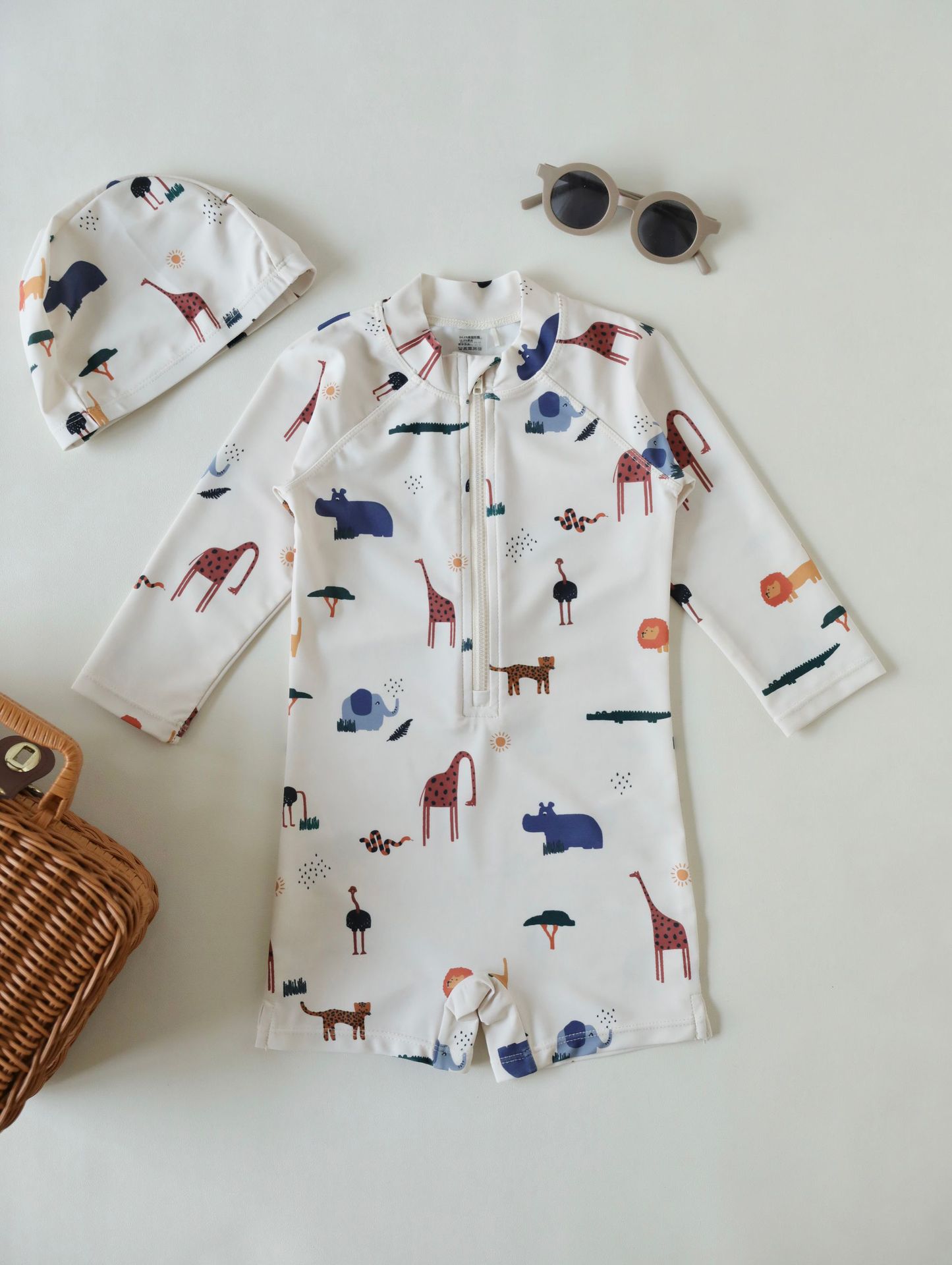 베이비 보이즈 Ins 해변 휴가 원피스 수영복 어린이 퀵 드라이 썬 스크린 수영복 소년의 긴팔 아기 수영복