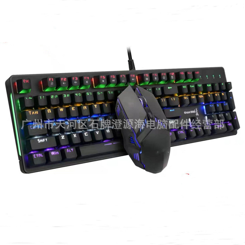 노트북 데스크톱 컴퓨터 기계 키보드 마우스 세트 유선 USB 녹색 샤프트 빛나는 게임 기계 키보드 마우스 커버스토어 가기