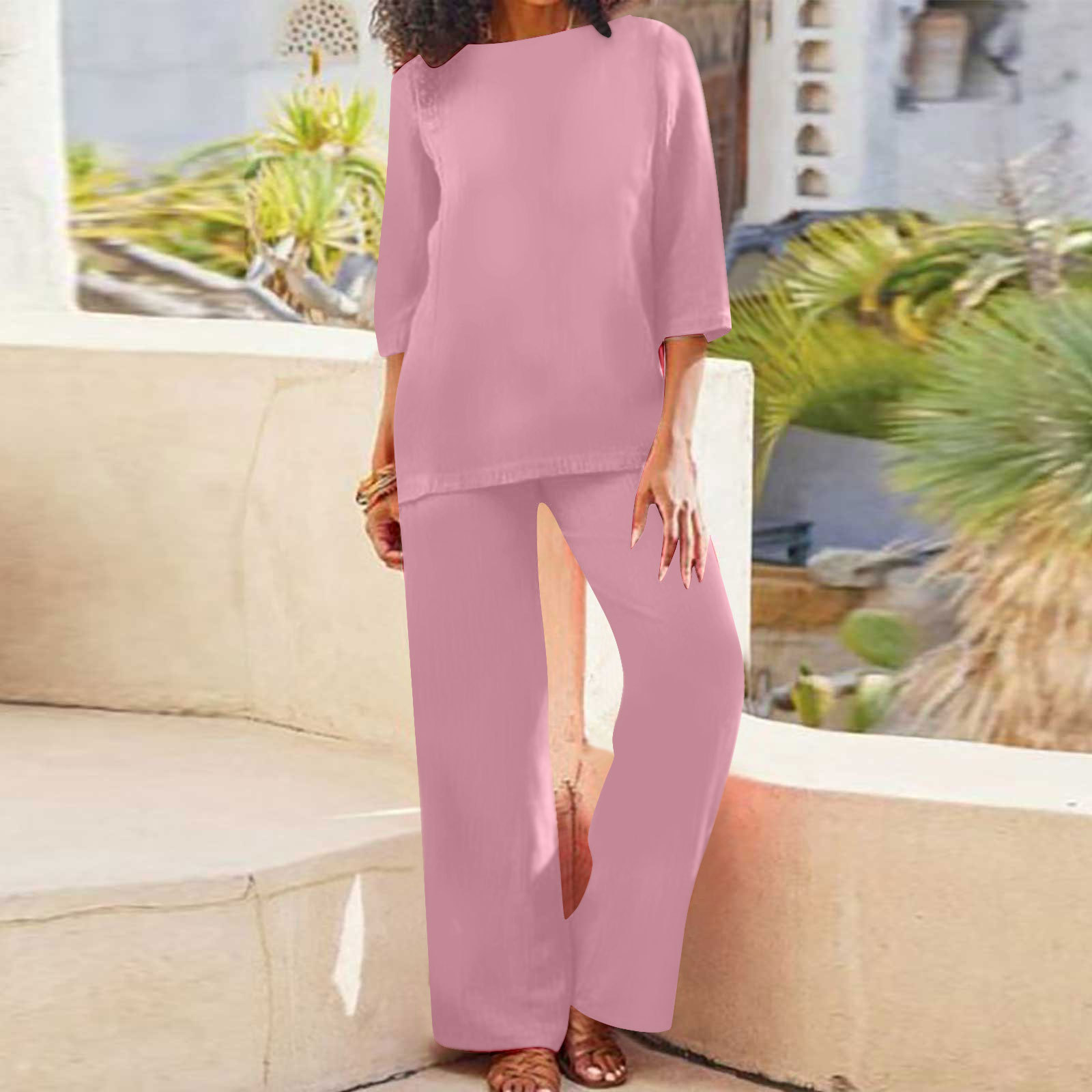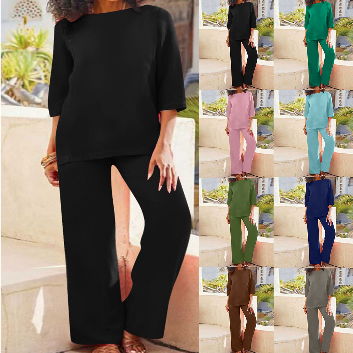 2025 새로운 크로스 보더 플러스 사이즈 여성 솔리드 컬러 중국 스타일 복고풍 바지 정장 코튼 린넨 캐주얼 긴팔 루즈 코튼 슈트
