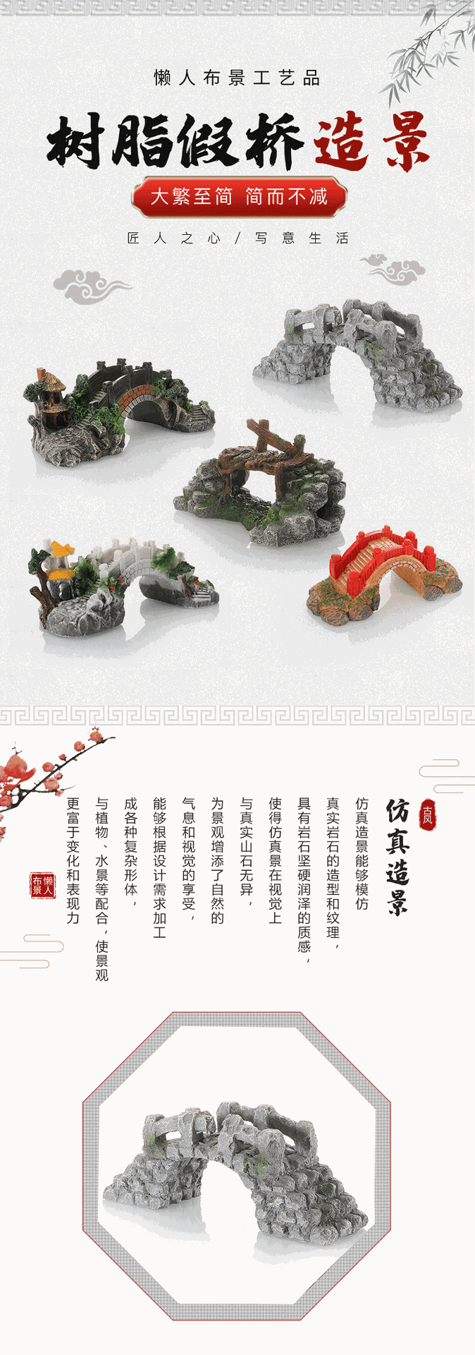 새로운 물고기 탱크 다리 풍경 수지 장식 수족관 공예 창조적 인 장식품 시뮬레이션 다리 작은 다리 풍경스토어 가기