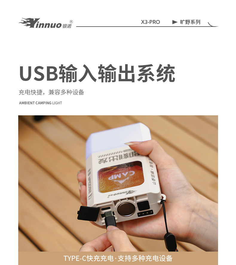Yinnuo X3 캠핑 조명 야외 조명 충전 긴 지구력 분위기 빛 캠핑 텐트 조명 다기능 교수형 조명
