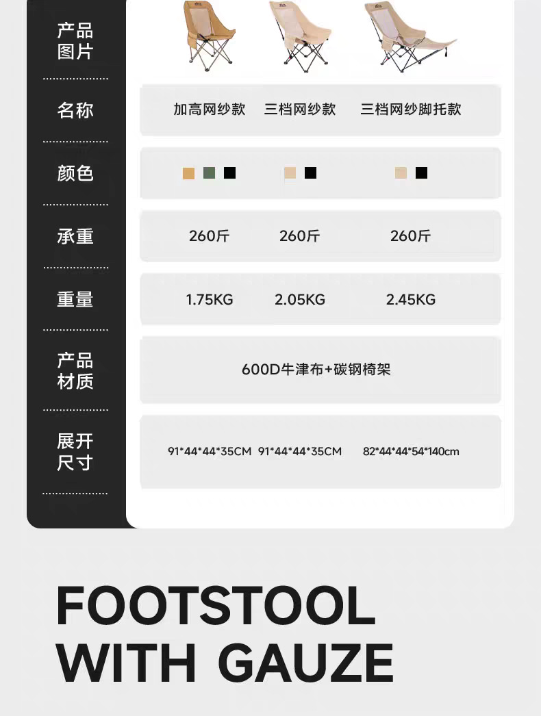 • 카키색 통기성 모델 - 3단계 조절 + 탈착식 발판