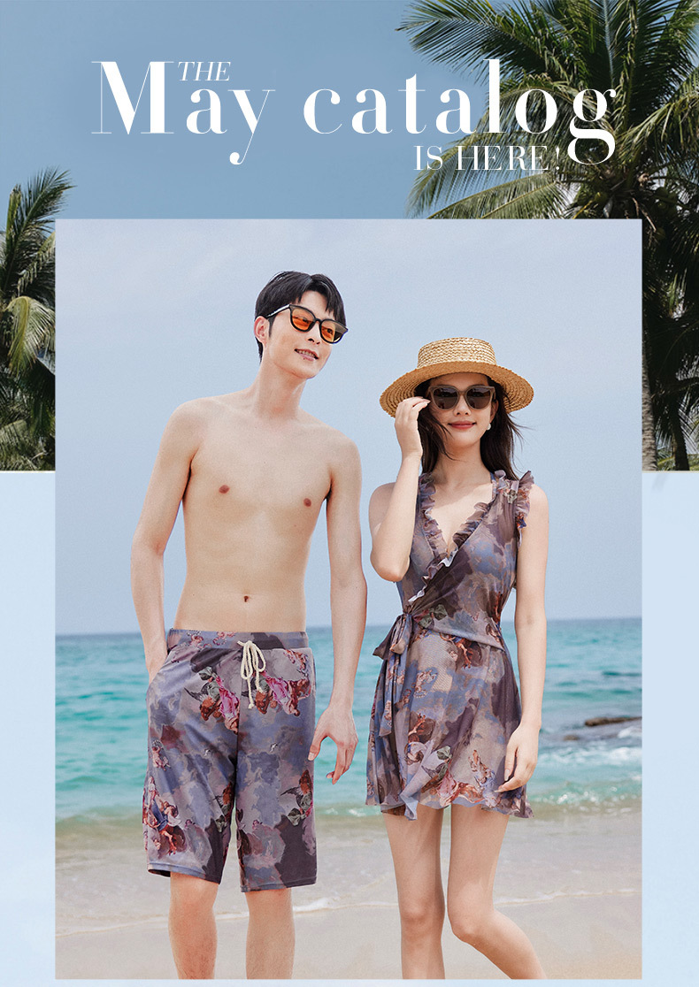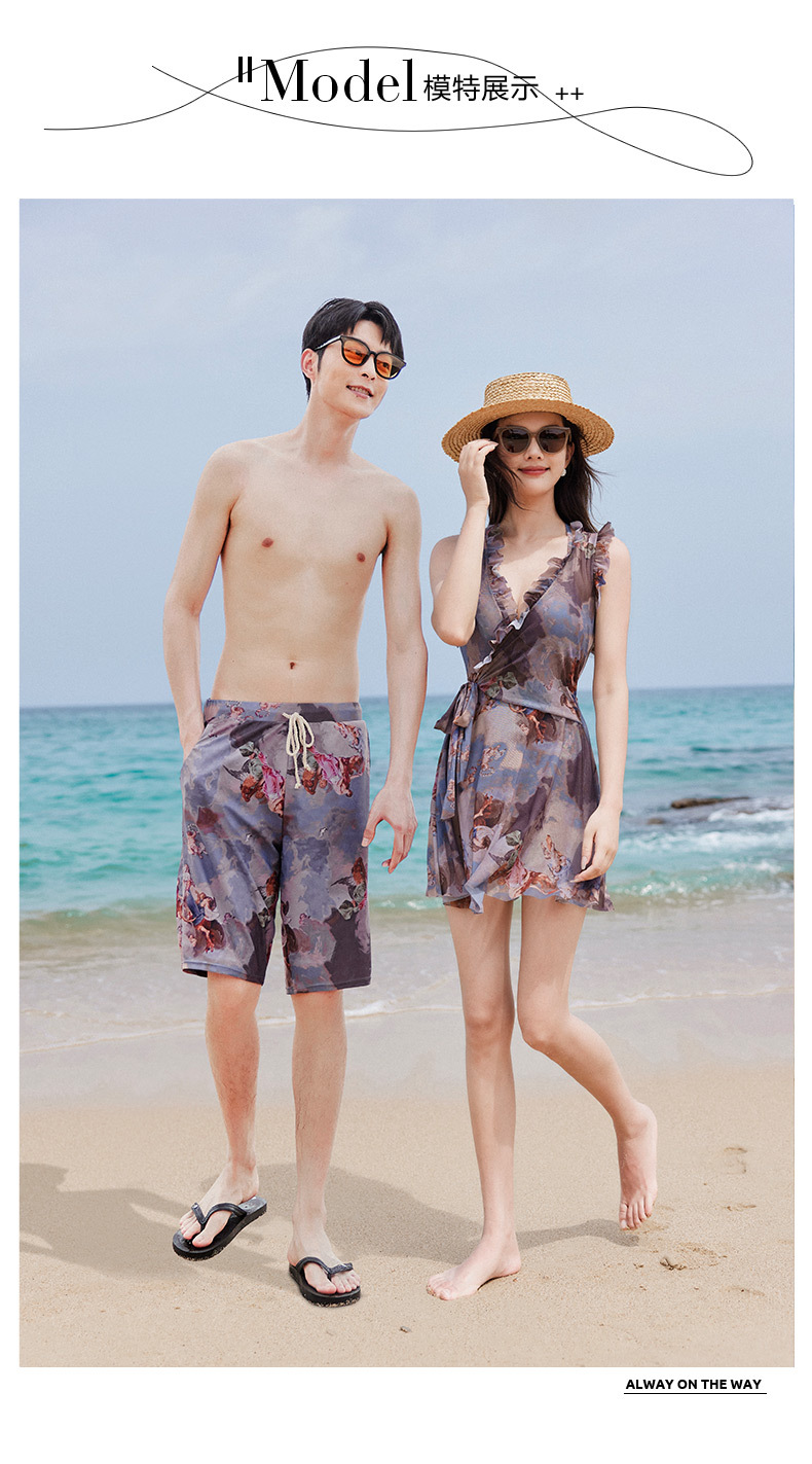 2024 새로운 커플 수영복 여성 보수적 원피스 벨리 커버 슬리밍 온천 해변 휴가 커플 남자