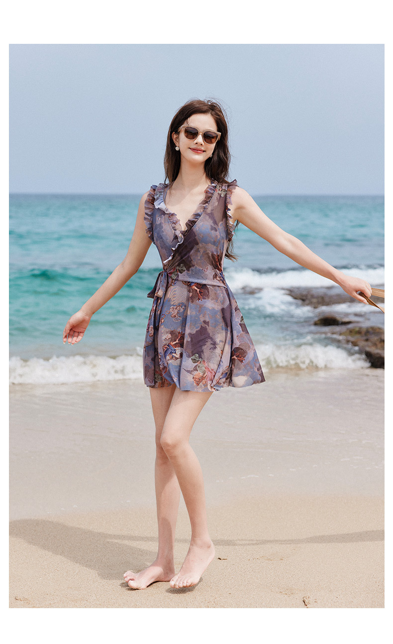 2024 새로운 커플 수영복 여성 보수적 원피스 벨리 커버 슬리밍 온천 해변 휴가 커플 남자스토어 가기