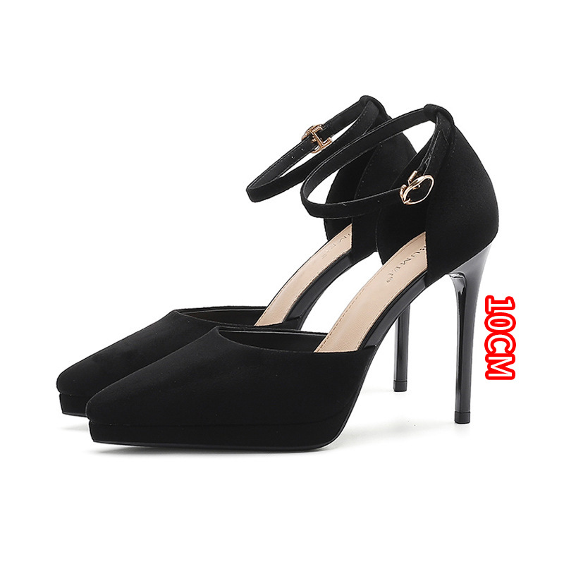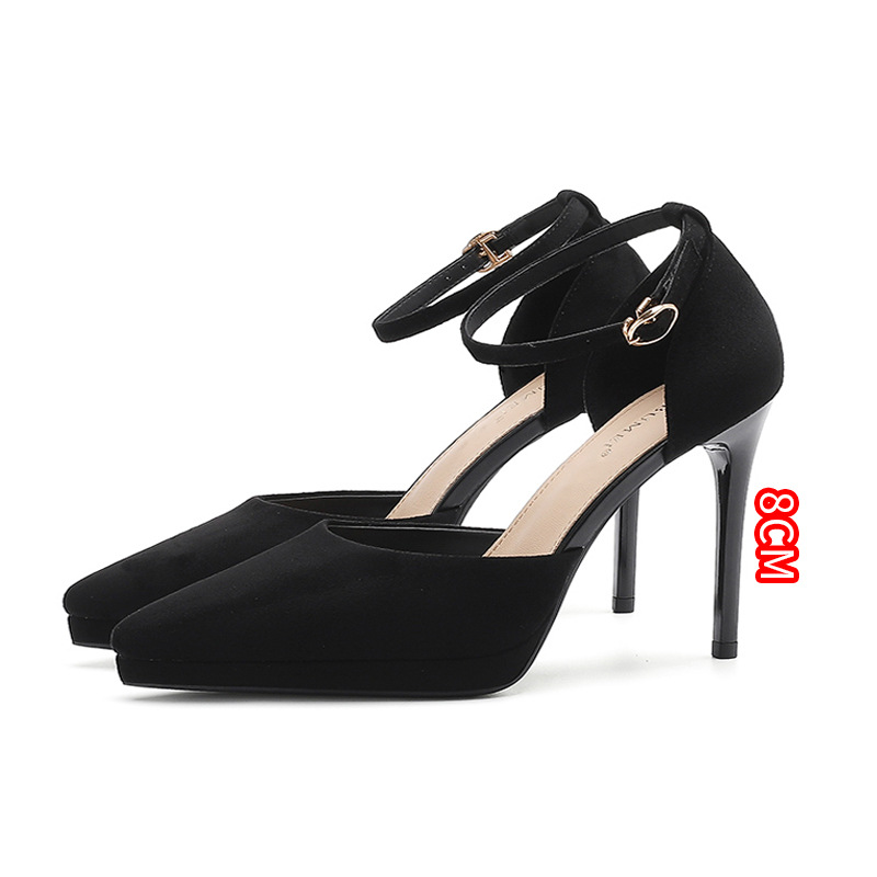 1088-19 페어리 스타일 뾰족한 스틸레토 힐 바오투 할로우 힐 샌들 방수 플랫폼 스웨이드 샌들 여성