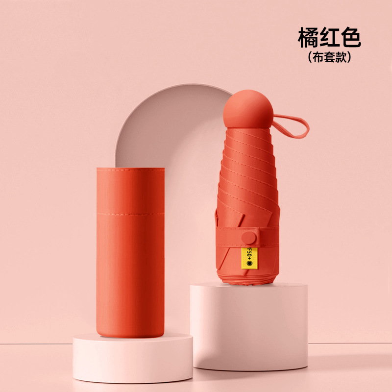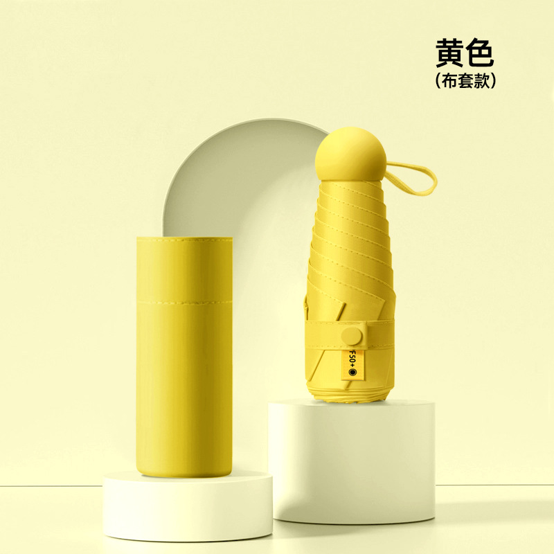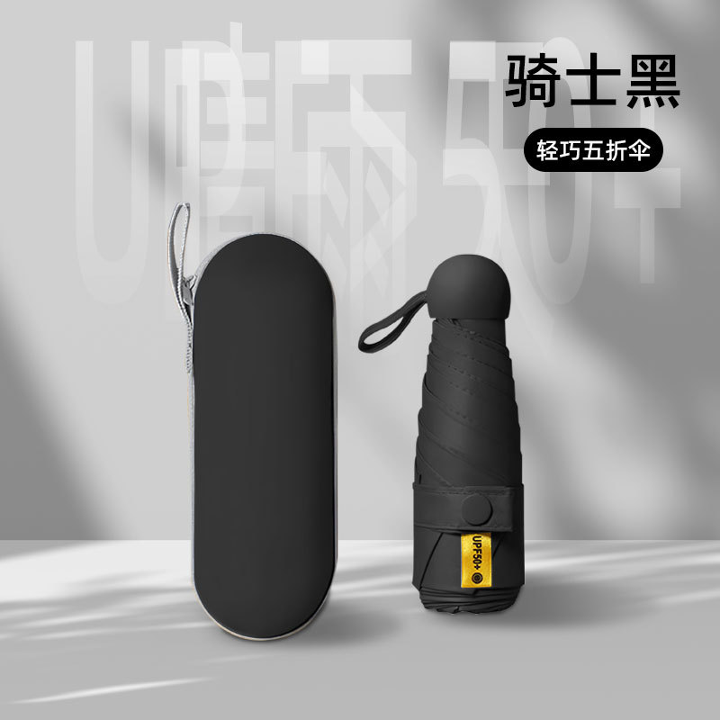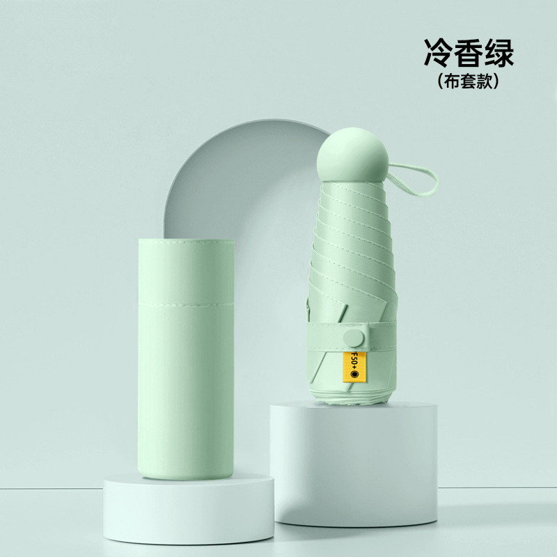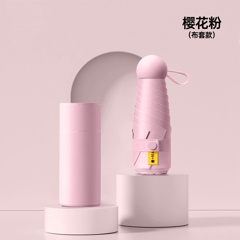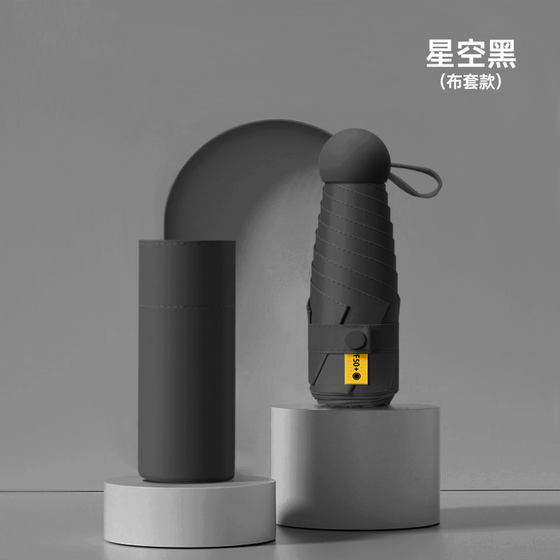 작은 캡슐 우산 검은 접착제 선 스크린 및 비 방지 이중 사용 태양 우산 사랑 손잡이 자외선 차단 여성용 50% 의 햇빛 우산