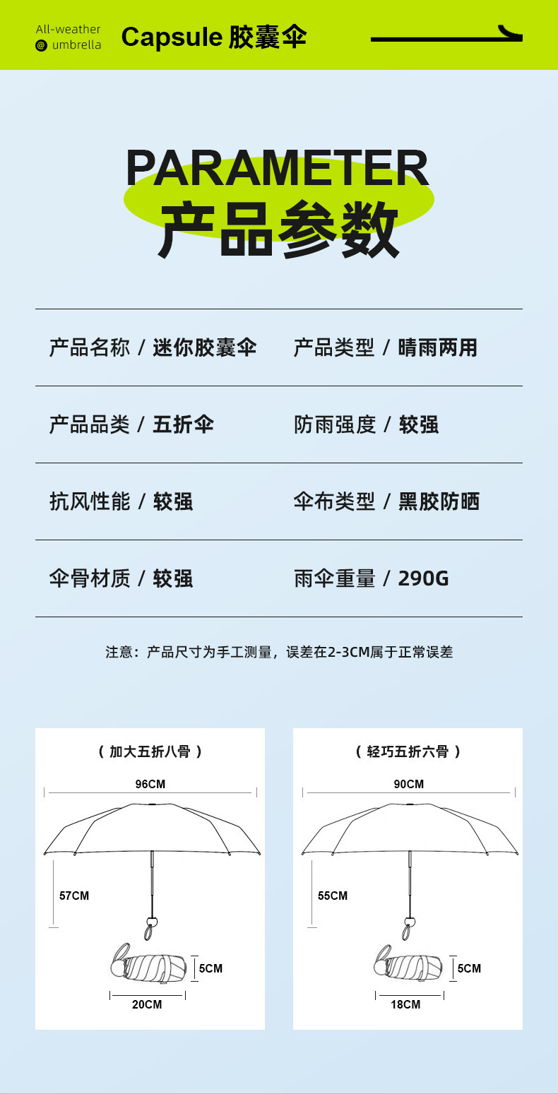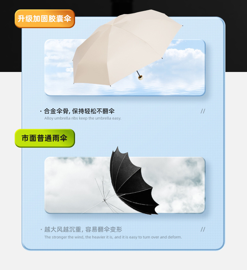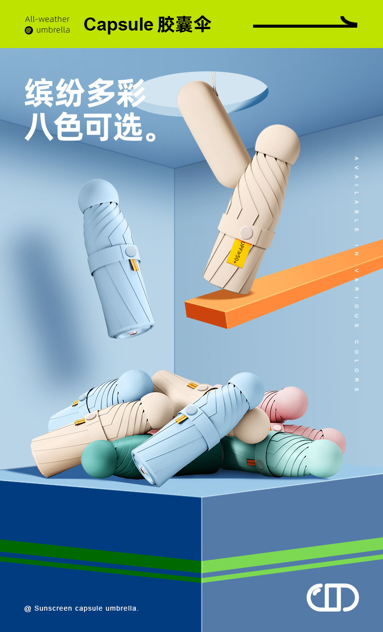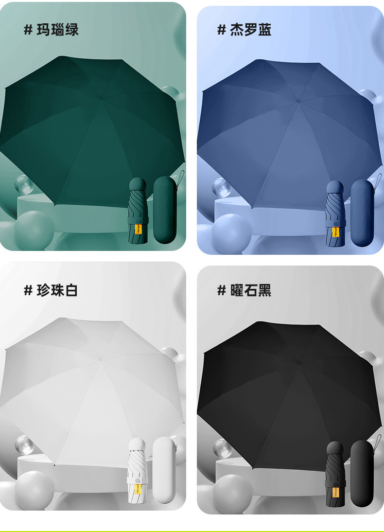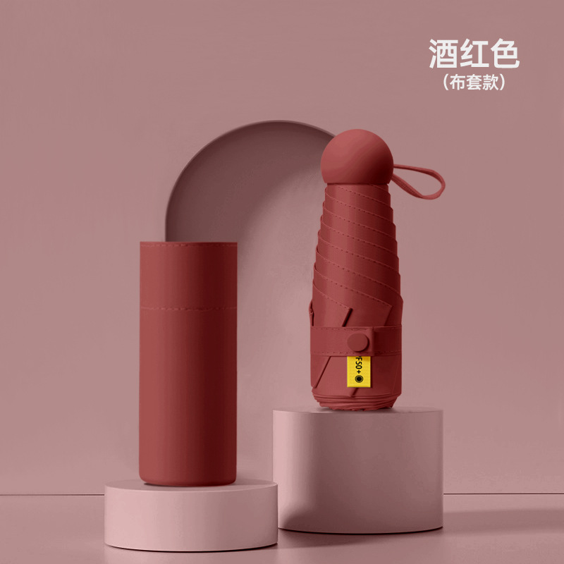 작은 캡슐 우산 검은 접착제 선 스크린 및 비 방지 이중 사용 태양 우산 사랑 손잡이 자외선 차단 여성용 50% 의 햇빛 우산