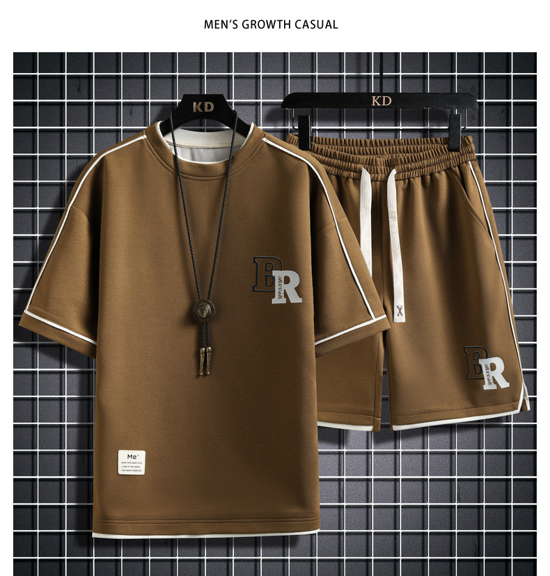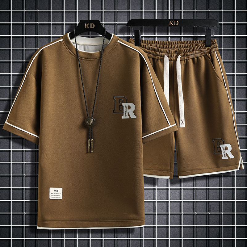여름 반팔 티셔츠 세트 남성 여름 반팔 티셔츠 십대 느슨한 레저 스포츠 옷 세트