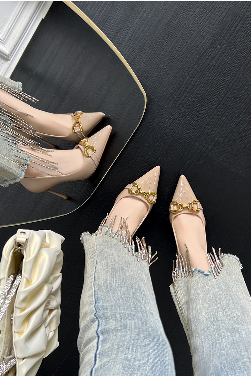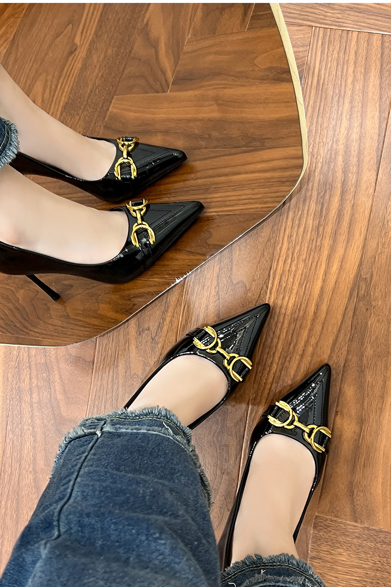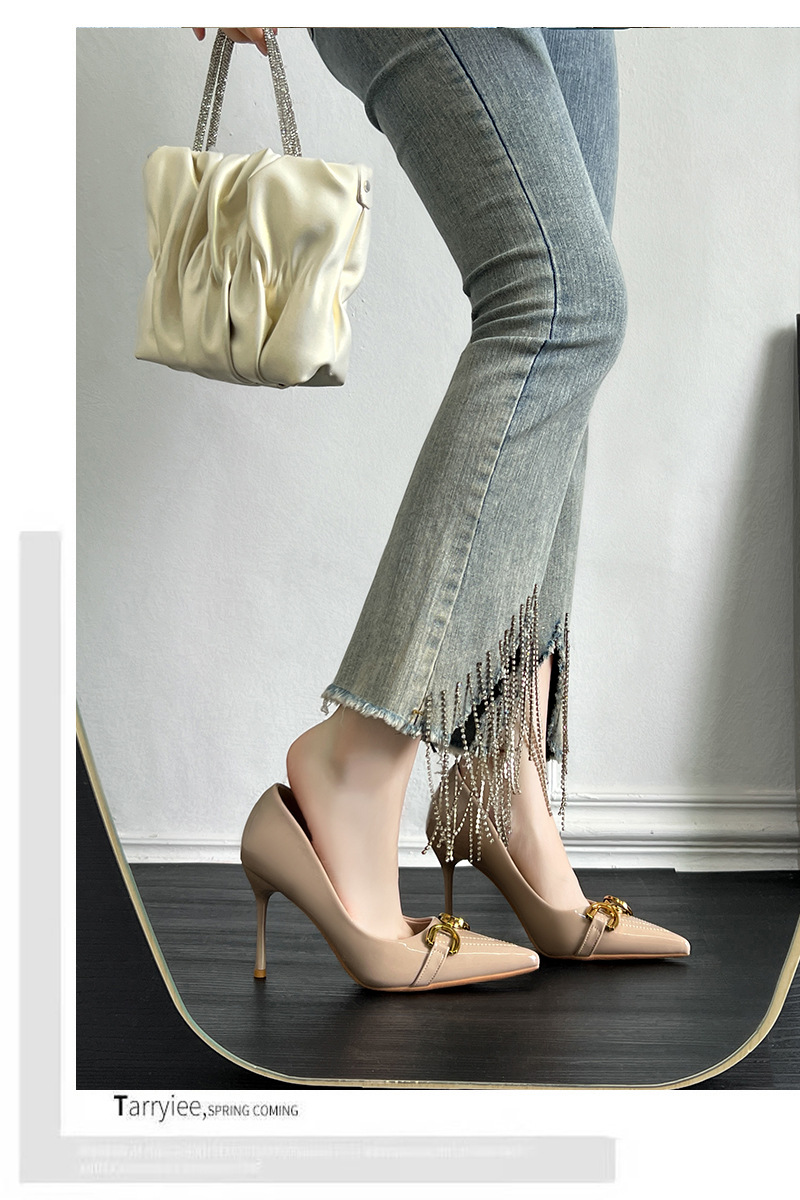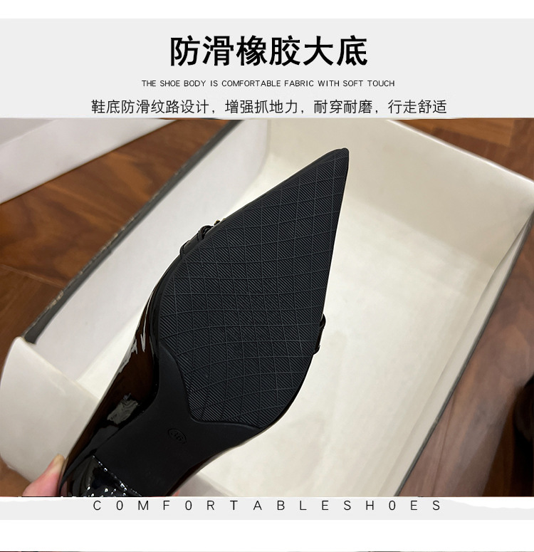 프랑스 하이힐 여성 2024 새로운 여름 포인팅 신발 다시 빈 얇은 발 뒤꿈치 패션 유럽과 미국 스타일의 섹시한 신발스토어 가기