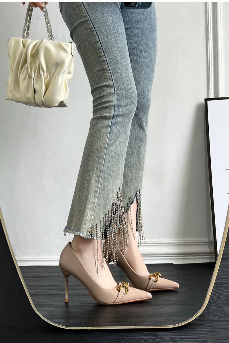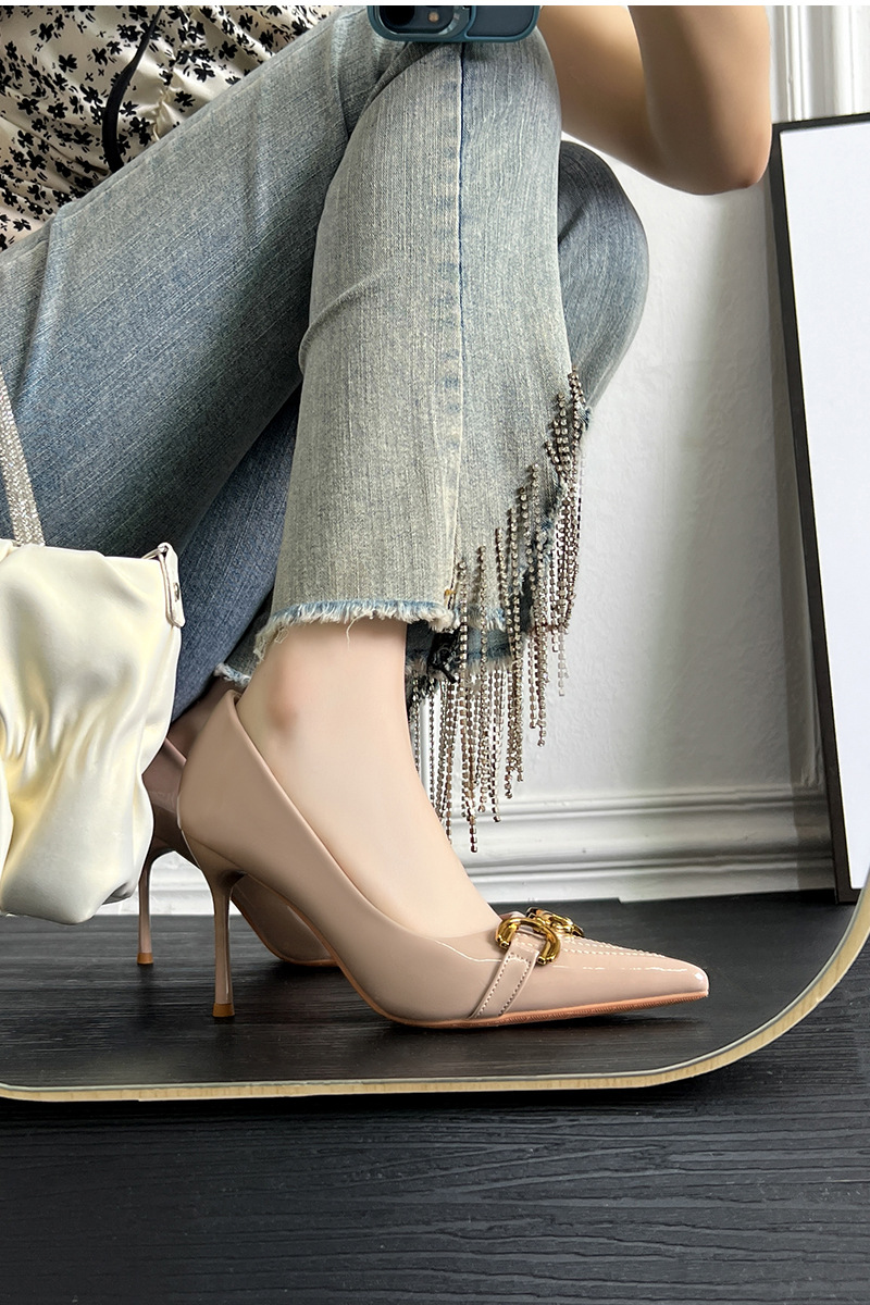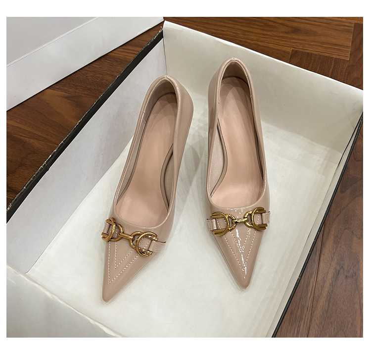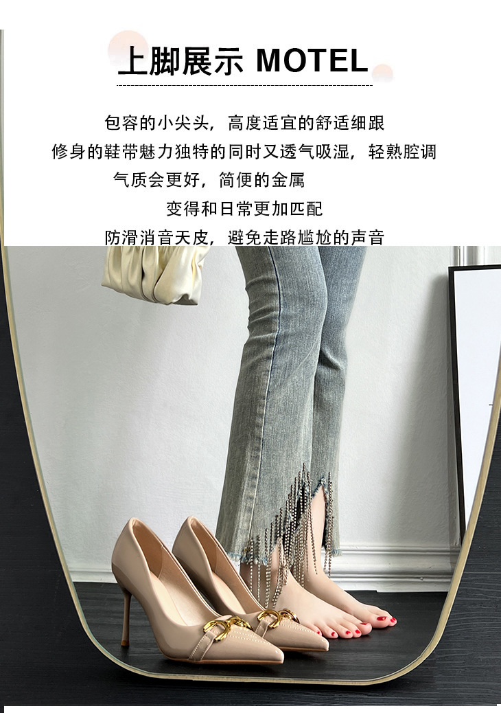 프랑스 하이힐 여성 2024 새로운 여름 포인팅 신발 다시 빈 얇은 발 뒤꿈치 패션 유럽과 미국 스타일의 섹시한 신발스토어 가기