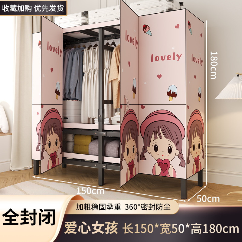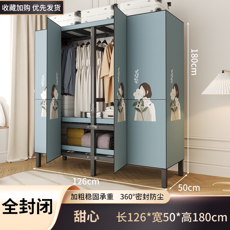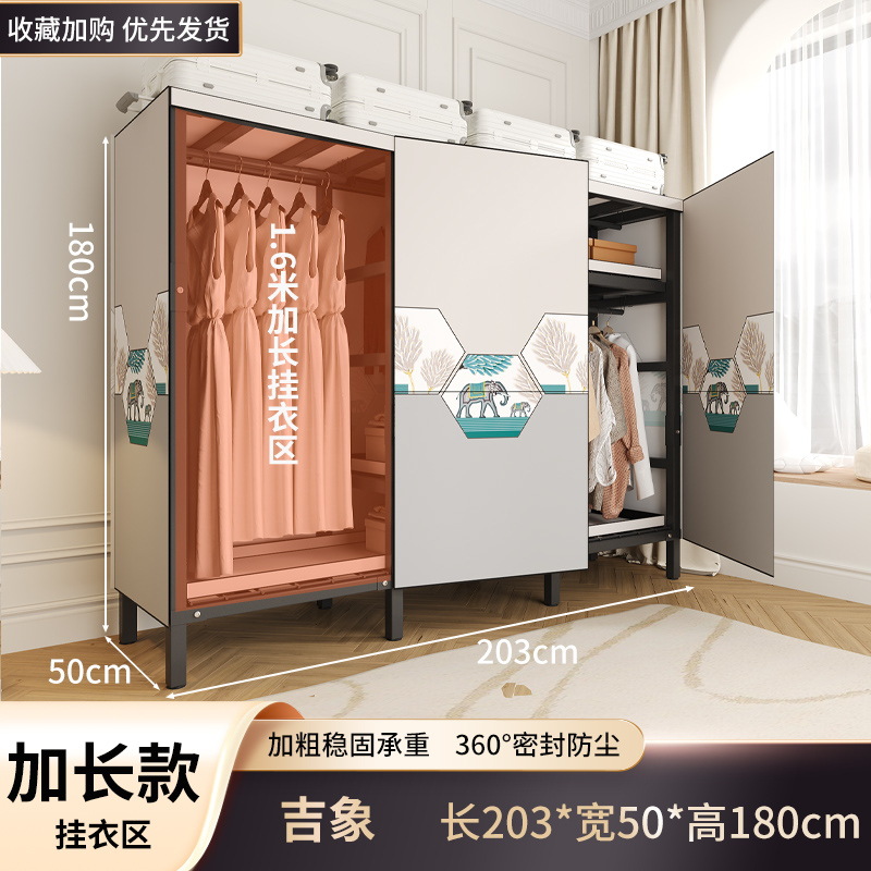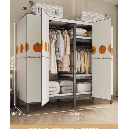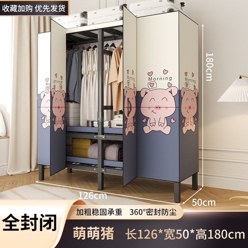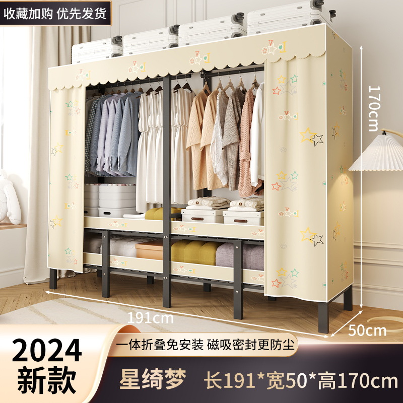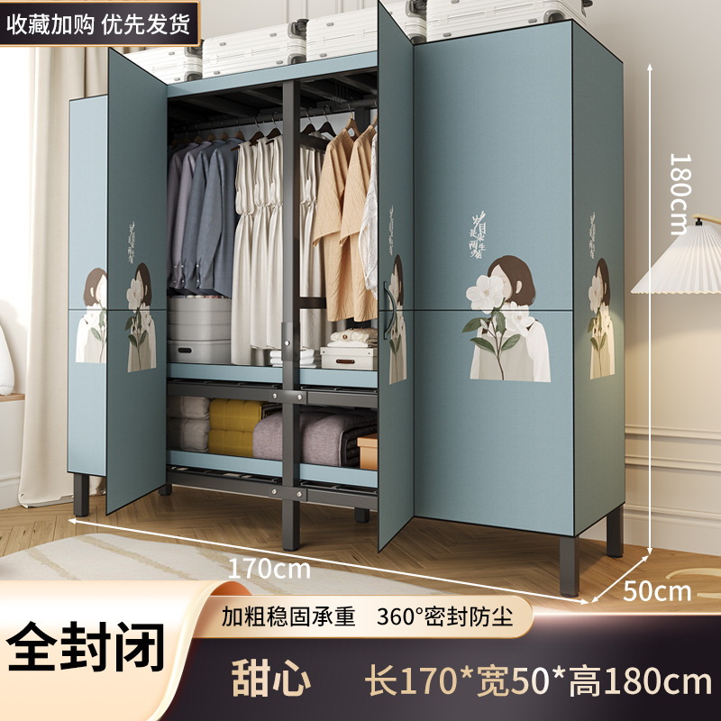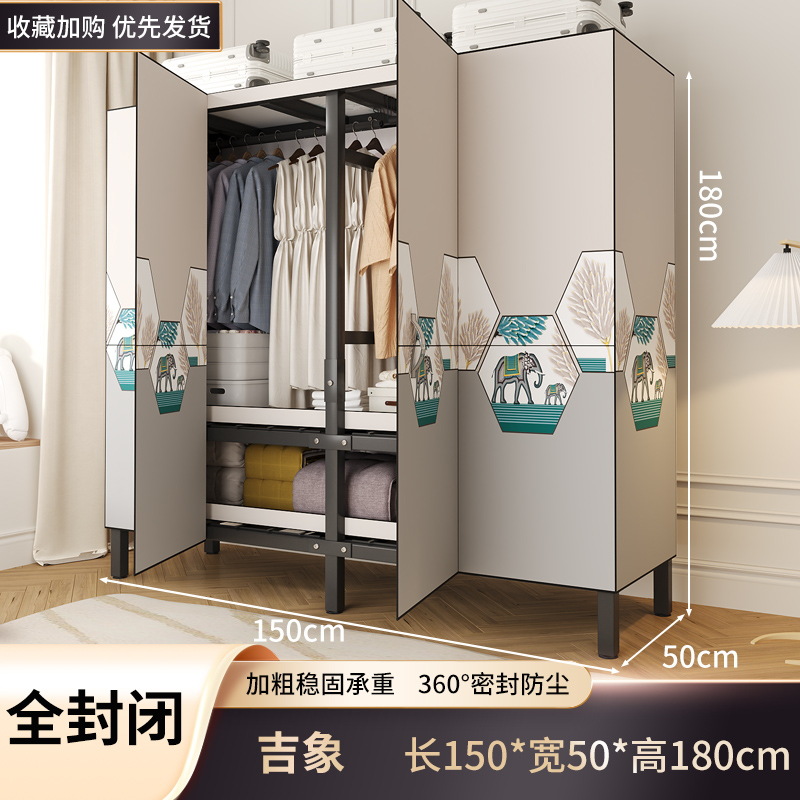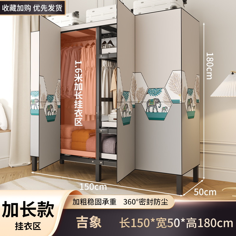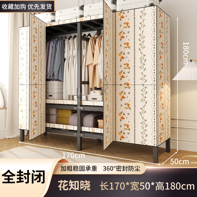 설치 무료 옷장 홈 침실 간단한 조립 천 옷장 접이식 전체 강철 프레임 임대 룸 옷장 견고하고 내구성