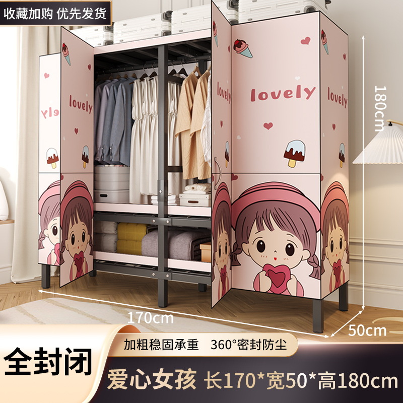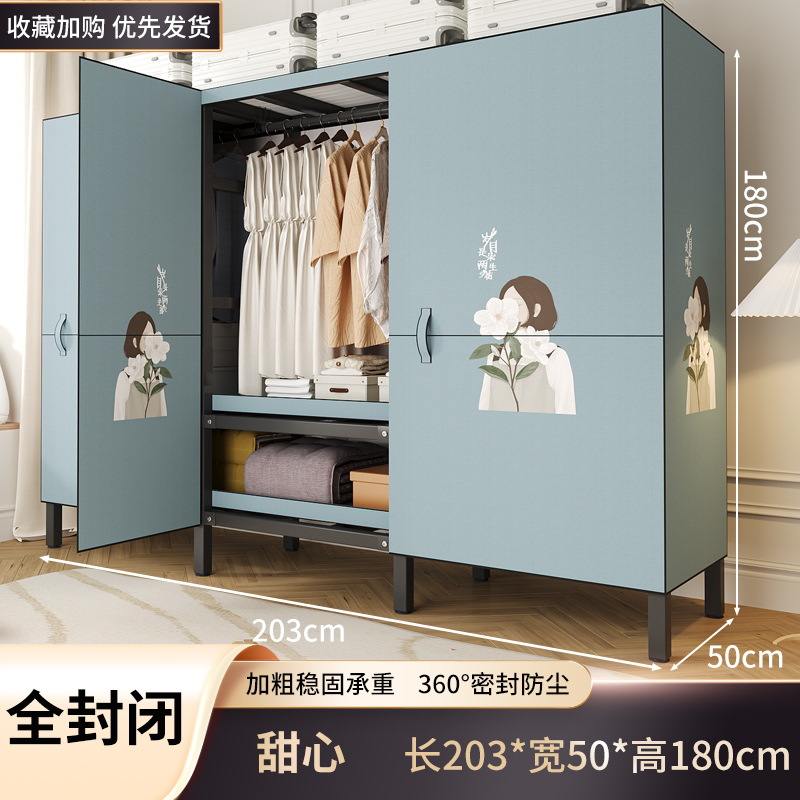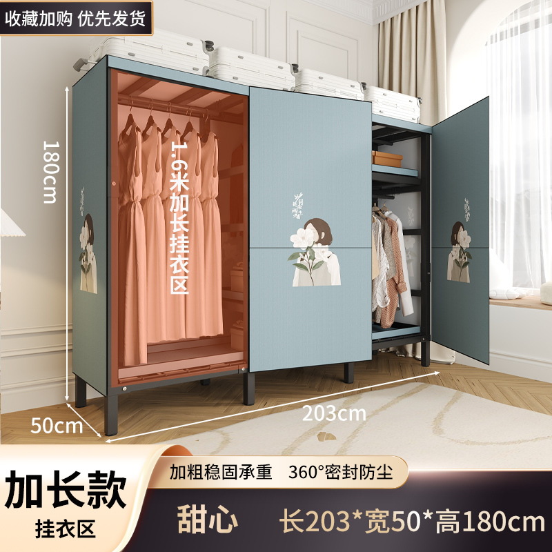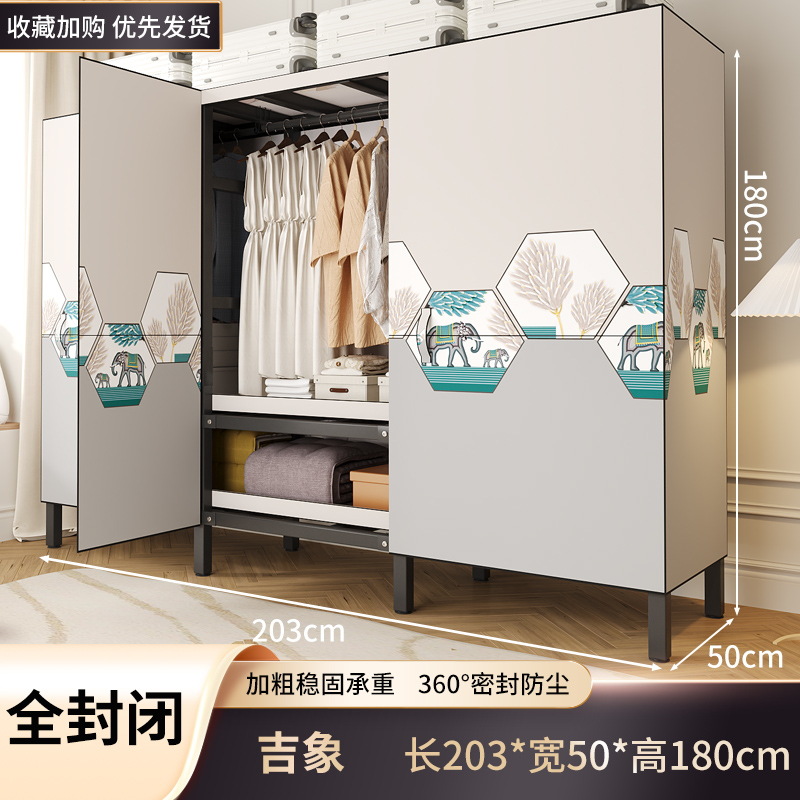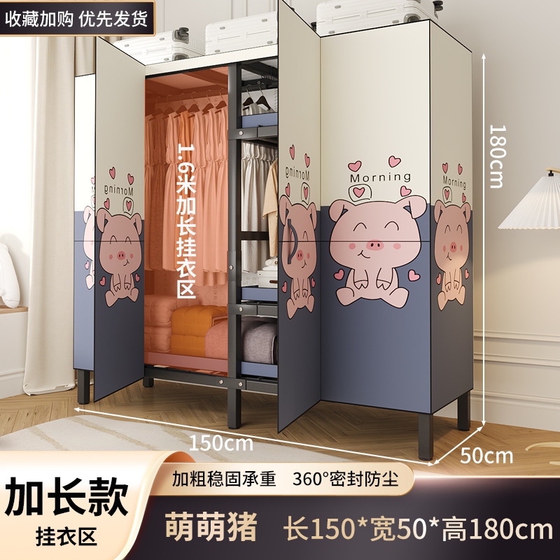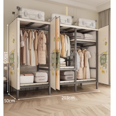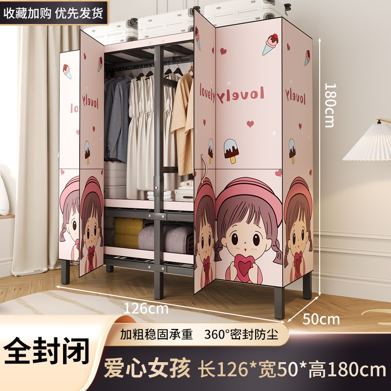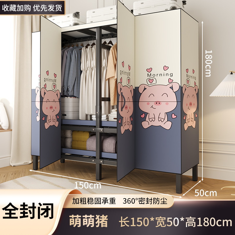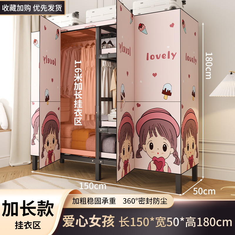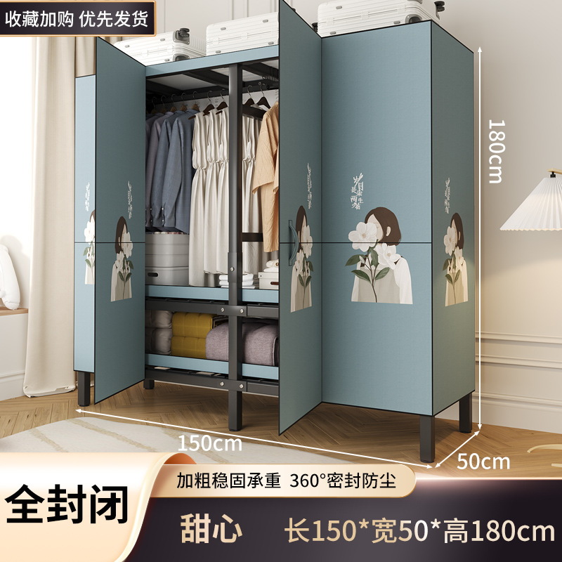 설치 무료 옷장 홈 침실 간단한 조립 천 옷장 접이식 전체 강철 프레임 임대 룸 옷장 견고하고 내구성